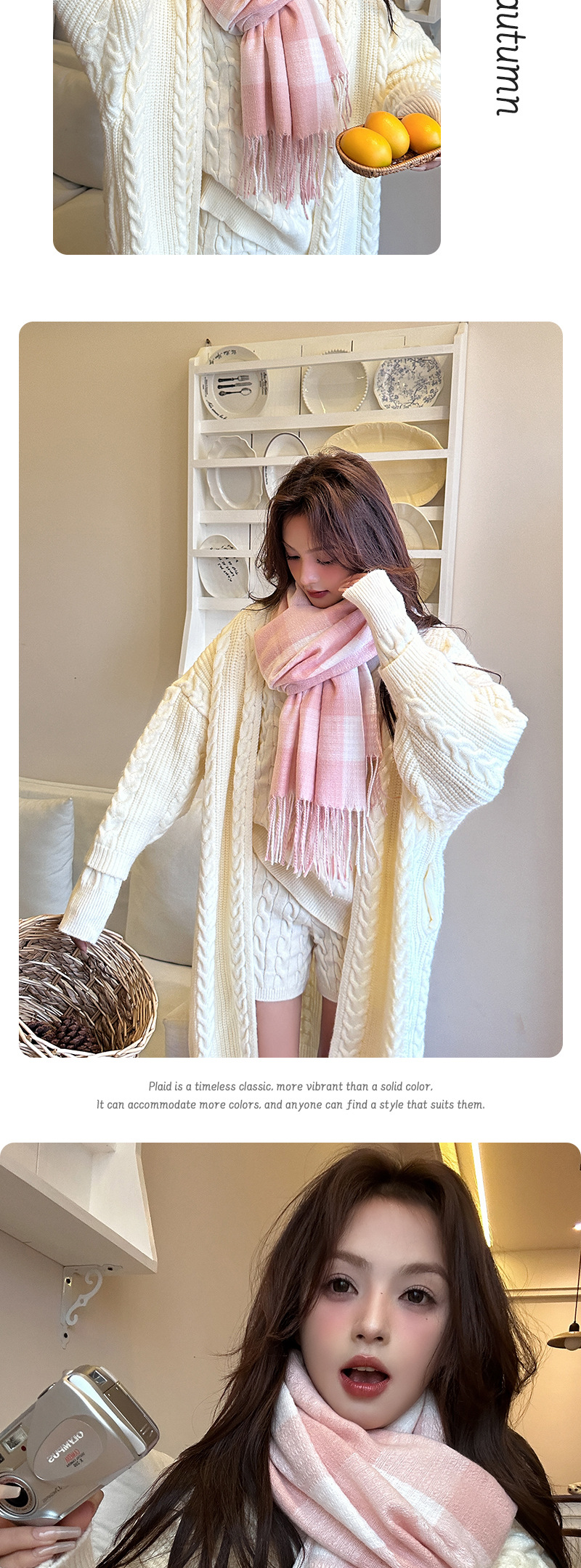새로운 한국식 캐시미어 체크 무늬 스카프 가을과 겨울 기모 두꺼운 따뜻한 스카프 여행 분위기 부드러운 목도리스토어 가기