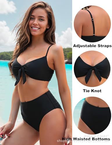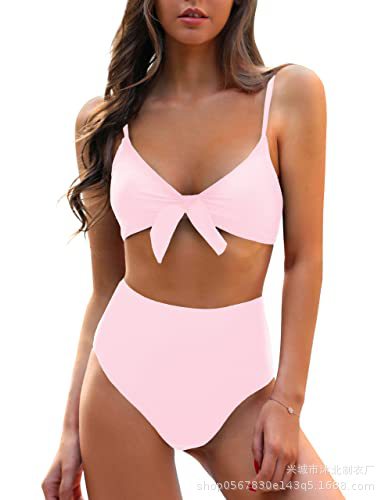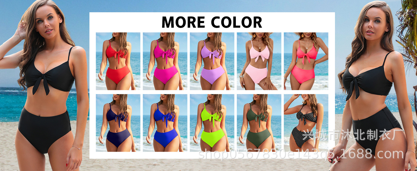 여성용 신상품 아마존 유럽 및 미국 스타일 리본 장식 하이웨이스트 비키니 세트 2024스토어 가기