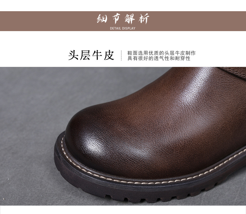 Delphiniums 24 가을과 겨울 새로운 스타일 높은 수준의 Cowhide 빈티지 캐주얼 미드 배럴 마틴 부츠 금속 버클 장식 스퀘어 힐 여성 신발스토어 가기
