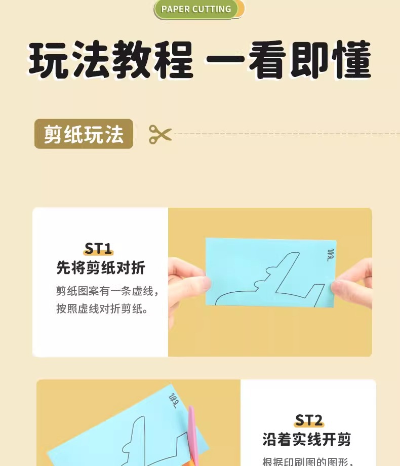 어린이 종이접기 수공예 유치원 입문용 가위 2세 아기 집중력 훈련 DIY 장난감 세트 3개 창의적