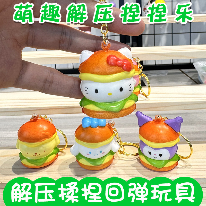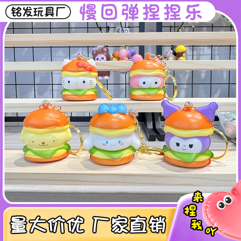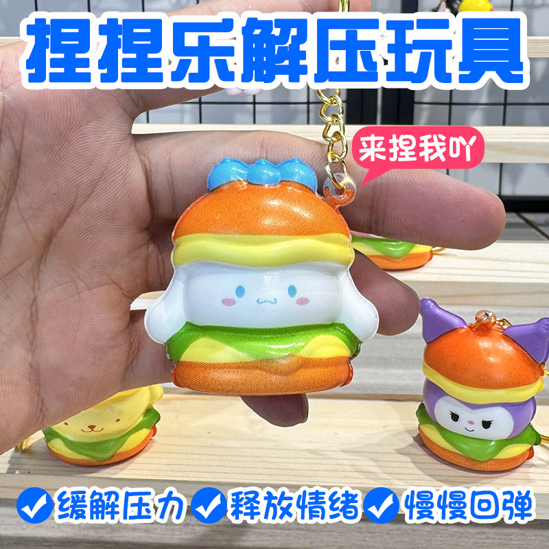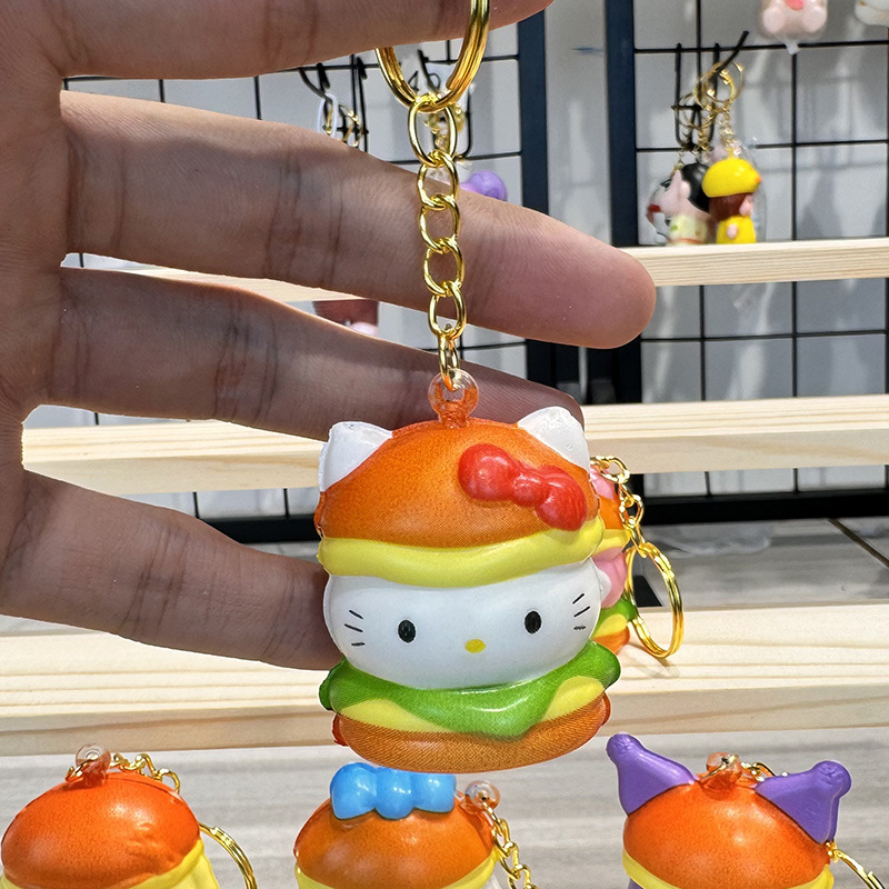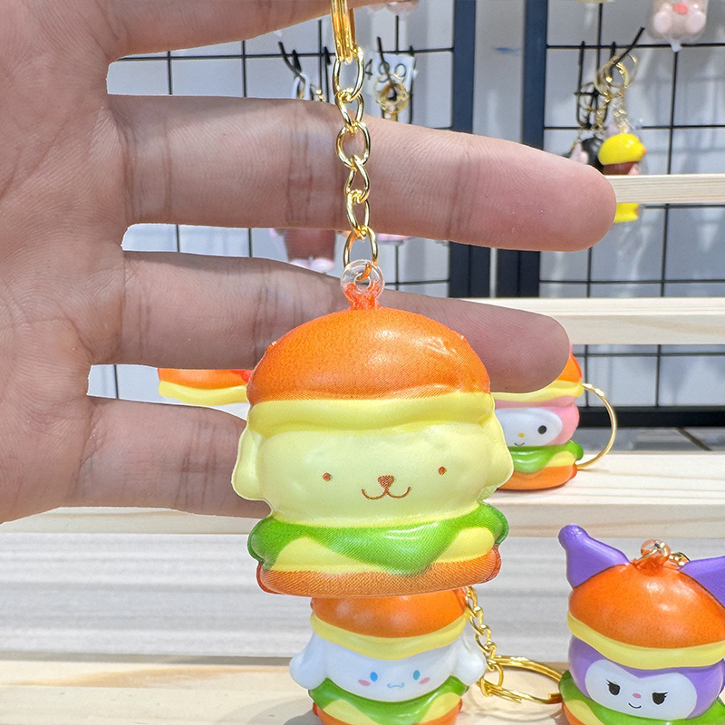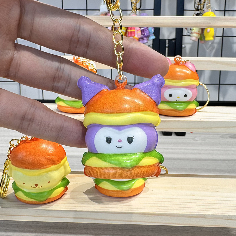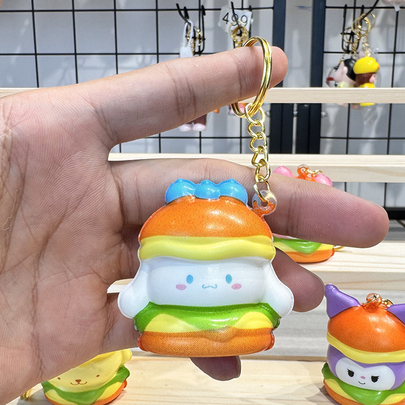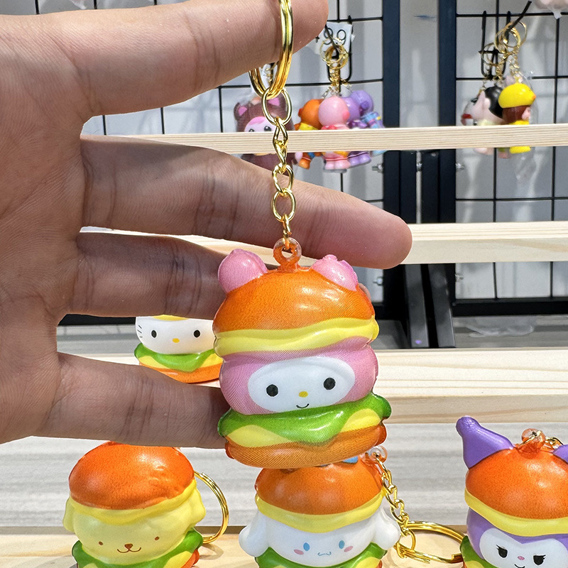 공장 도매 핀치 버거 스타일 블라인드 박스 도매 만화 펜던트 장난감 장식품 열쇠 고리가있는 인형스토어 가기