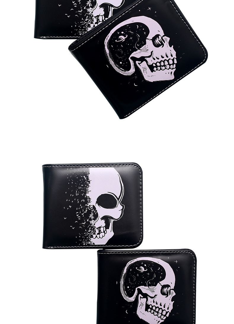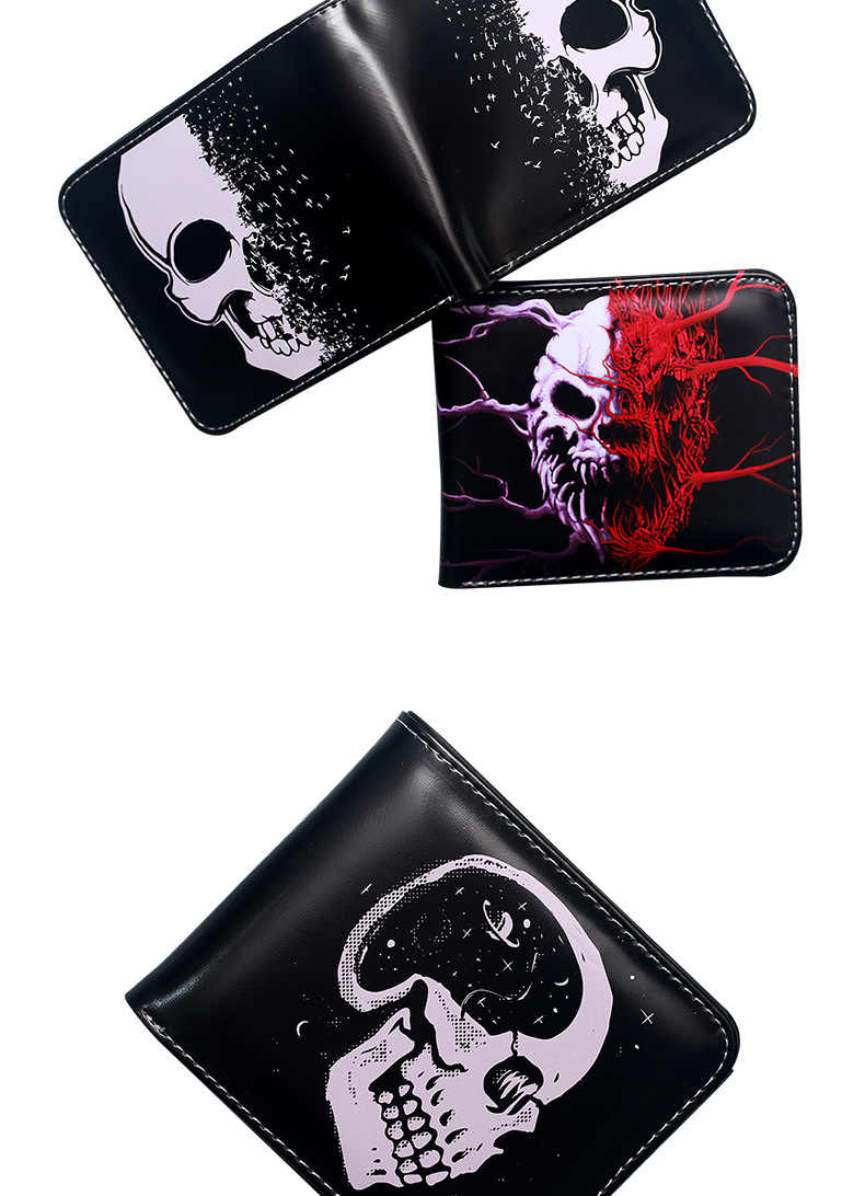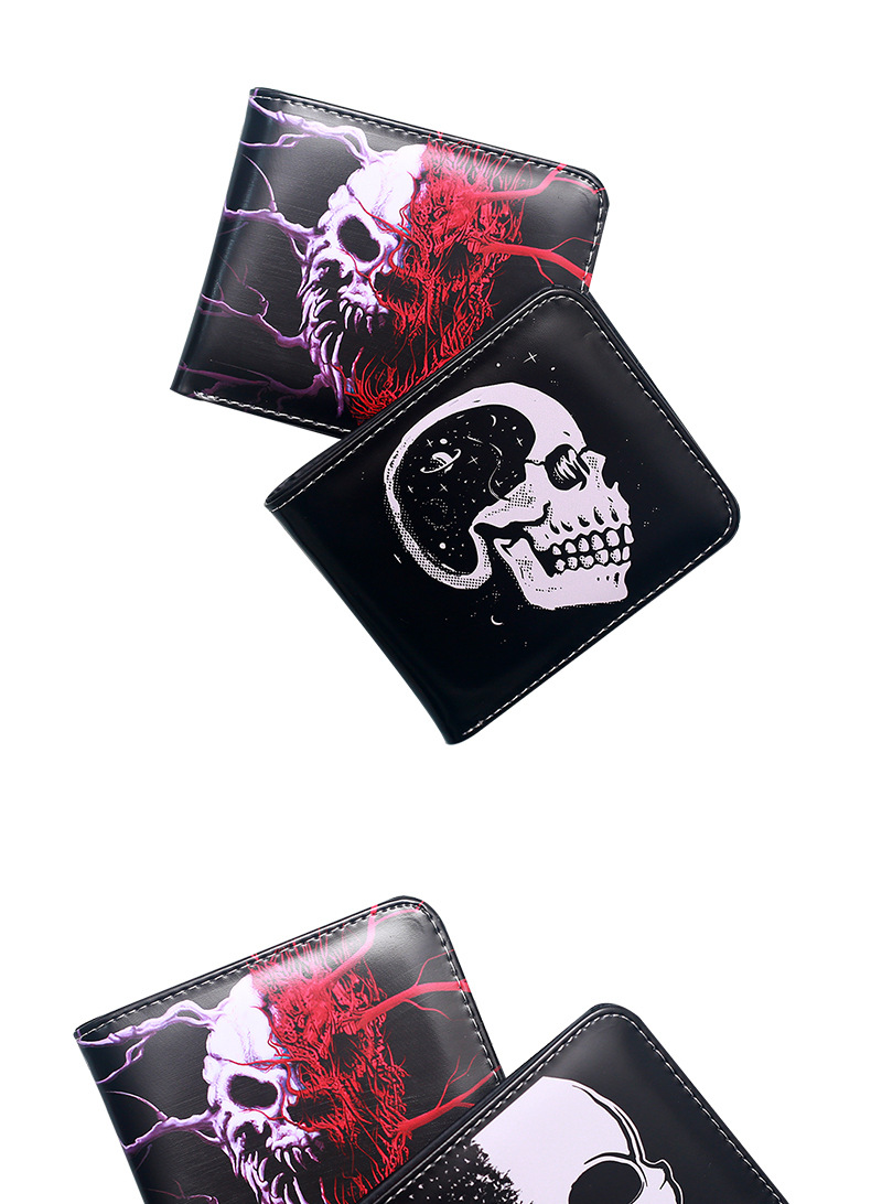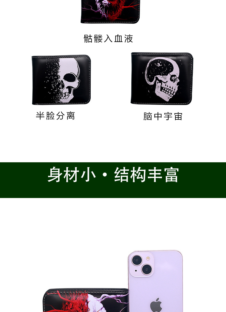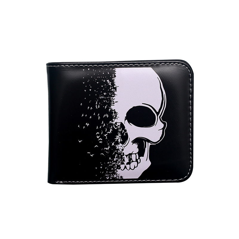 대외 무역 새로운 지갑 두개골 컬러 인쇄 짧은 작은 지갑 휴대용 패션 휴대용 남성 지퍼 동전 지갑