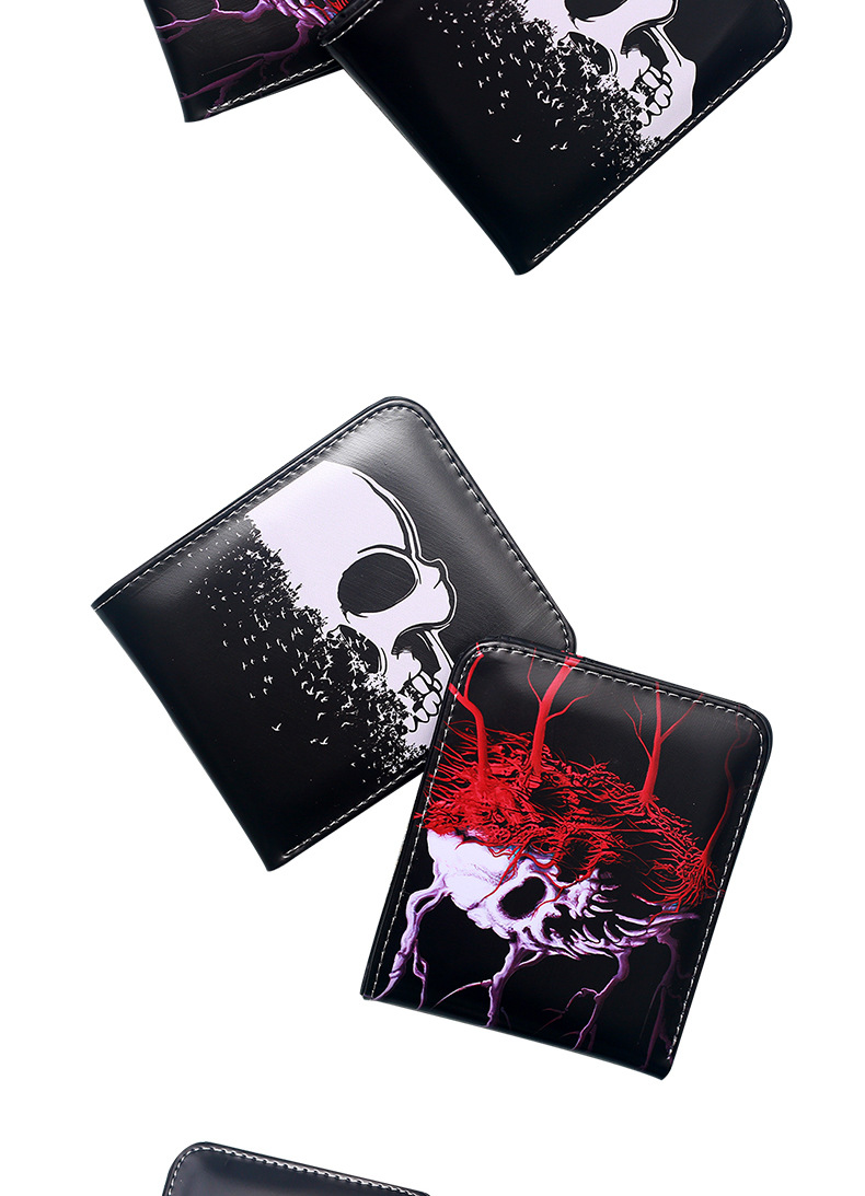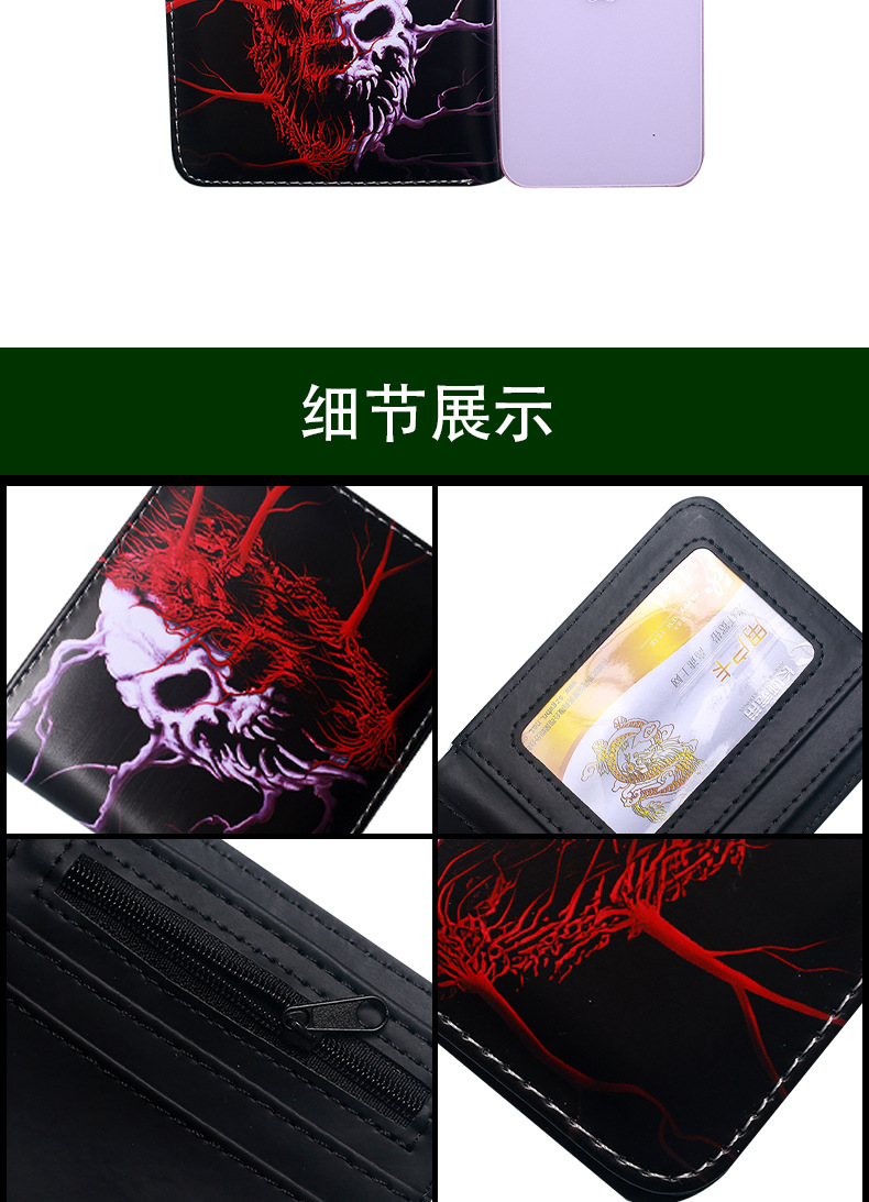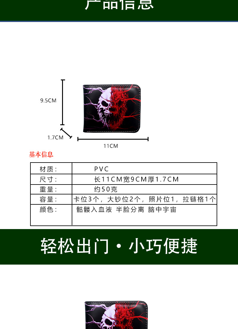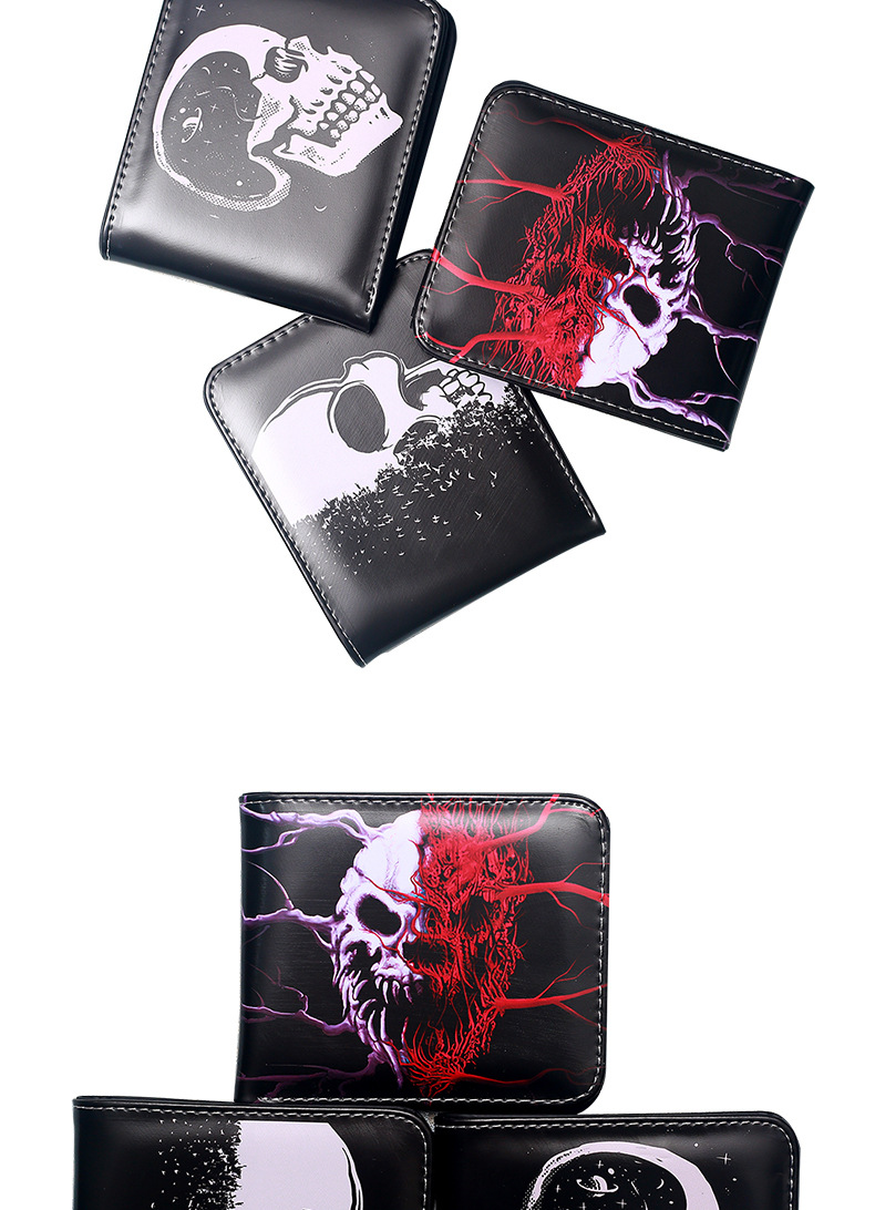 대외 무역 새로운 지갑 두개골 컬러 인쇄 짧은 작은 지갑 휴대용 패션 휴대용 남성 지퍼 동전 지갑