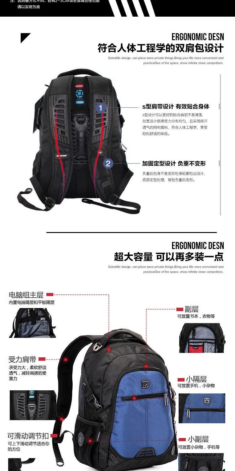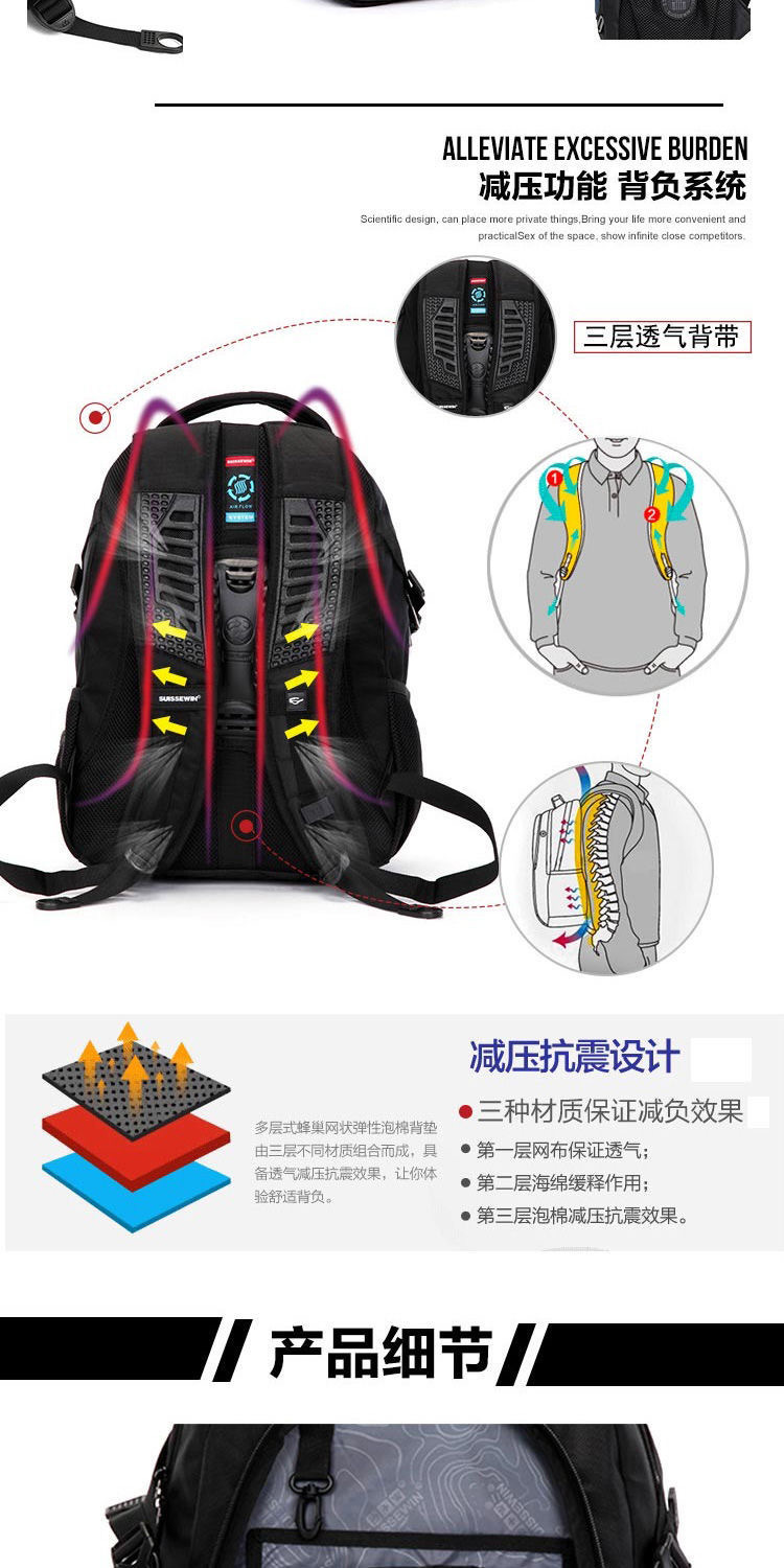 샹싱 백팩 SUISSEWIN 방수 내마모성 다중 수납 남성용 백팩 대용량 푸젠 백팩스토어 가기