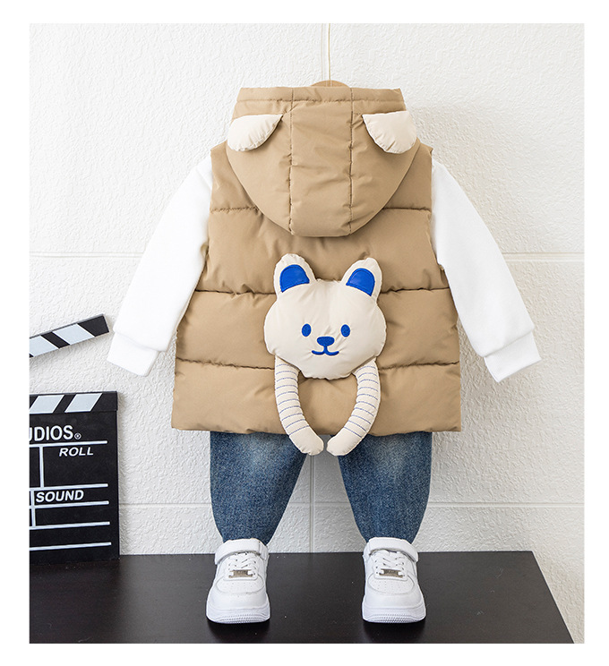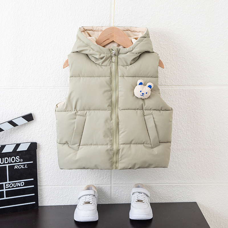 어린이 코트 2024 가을과 겨울 외부 남성 아기의 따뜻한 조끼 소년 서양 스타일 두꺼운 허리 코트 외부 조끼 착용 조끼
