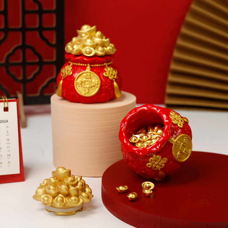 새해 장식품, 행운과 재물을 불러오는 백자운 금봉투, 돈주머니, 책상 장식품, 차량 장식품, 레진 공예품