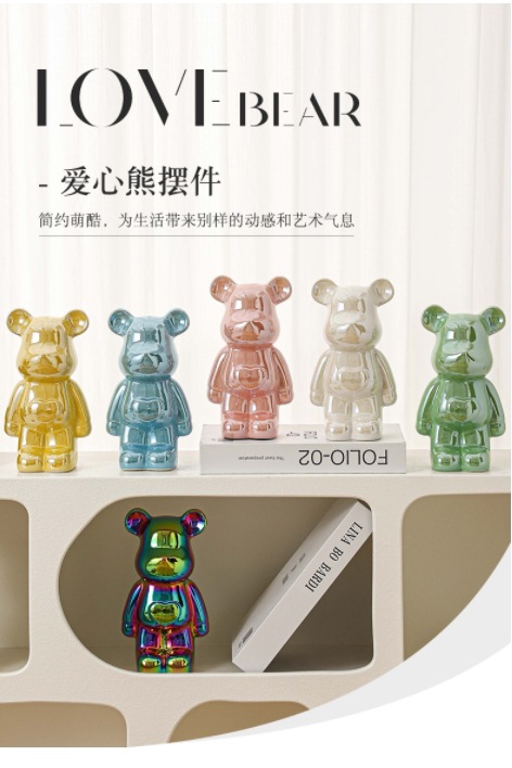 고급 폭력적인 곰 21cm 인터넷 연예인 가벼운 고급 장식품 거실 입구 세라믹 장식품 TV 캐비닛 사랑 곰 홈 장식