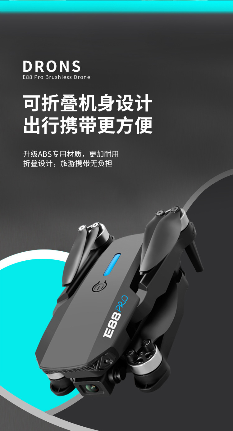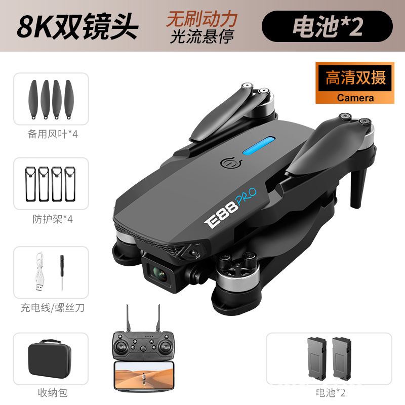 국경 간 E88PRO 브러시리스 광학 흐름 호버링 드론 항공 사진 긴 내구성 쿼드 콥터 원격 제어 항공기 지능형