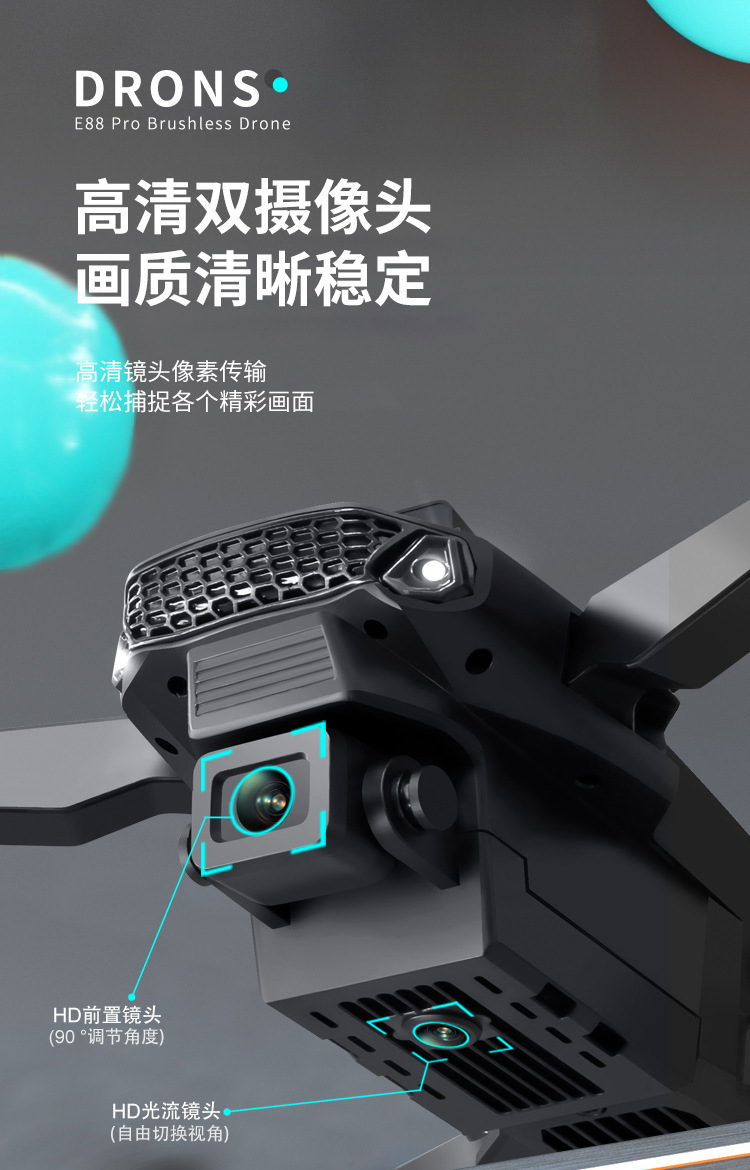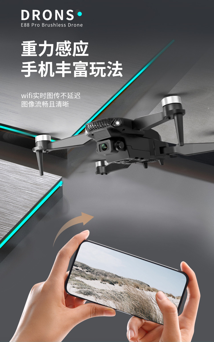 국경 간 E88PRO 브러시리스 광학 흐름 호버링 드론 항공 사진 긴 내구성 쿼드 콥터 원격 제어 항공기 지능형스토어 가기