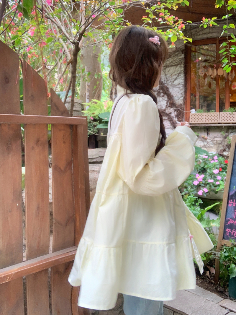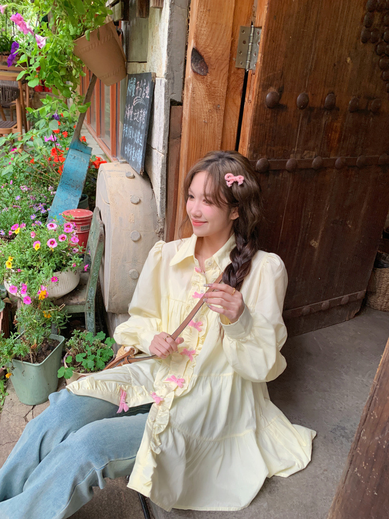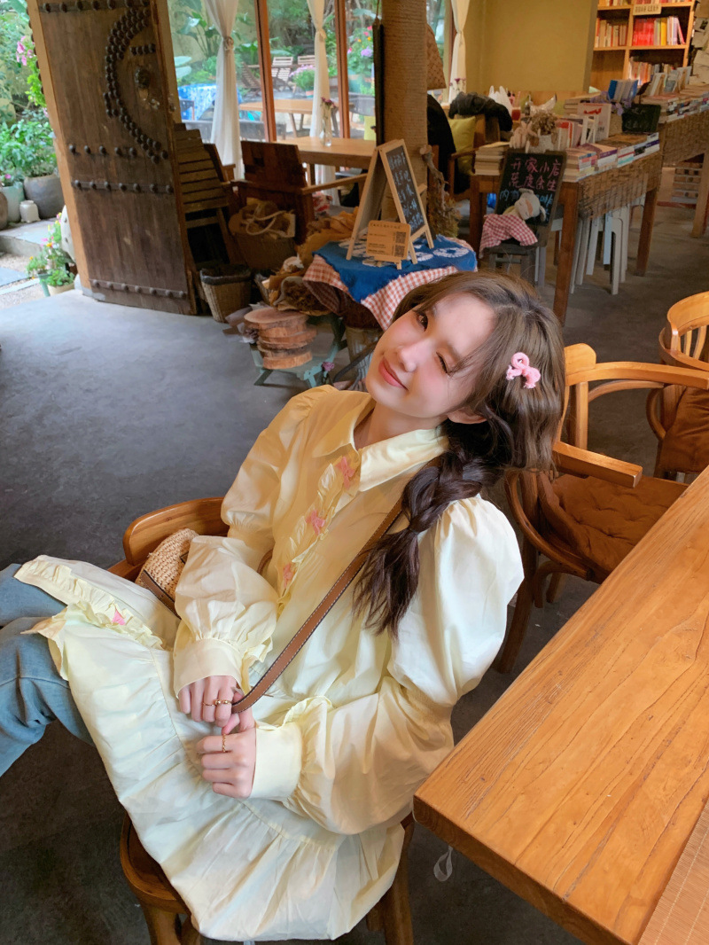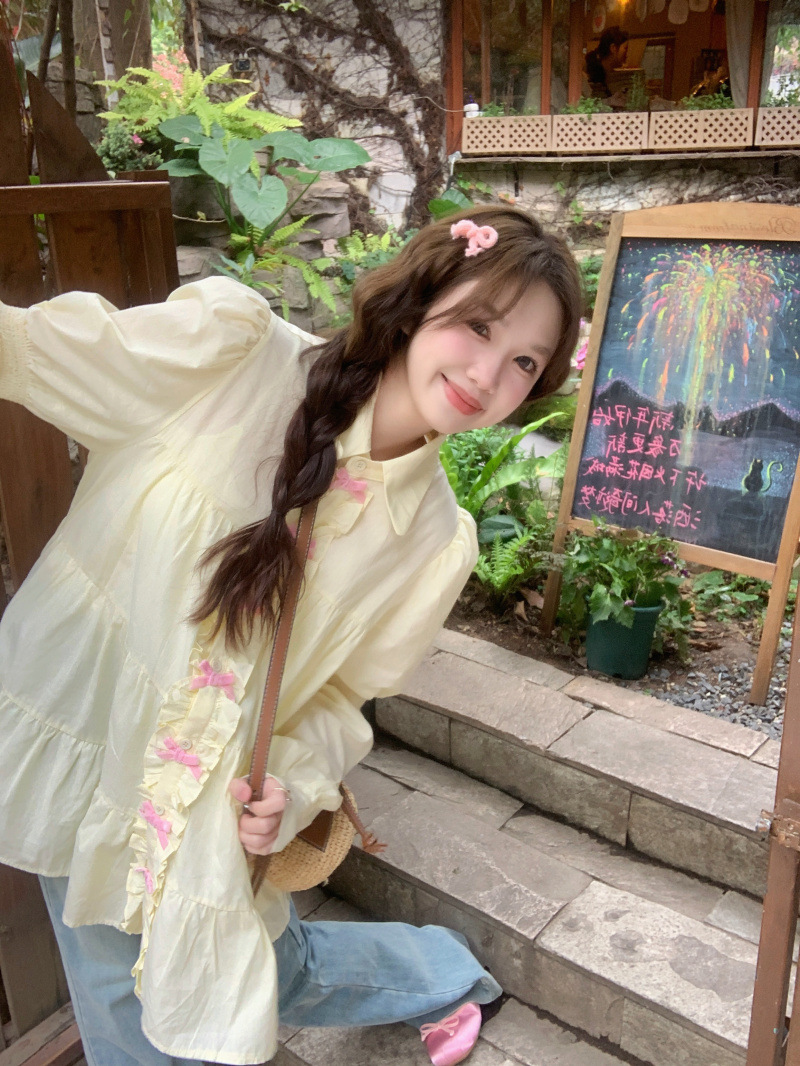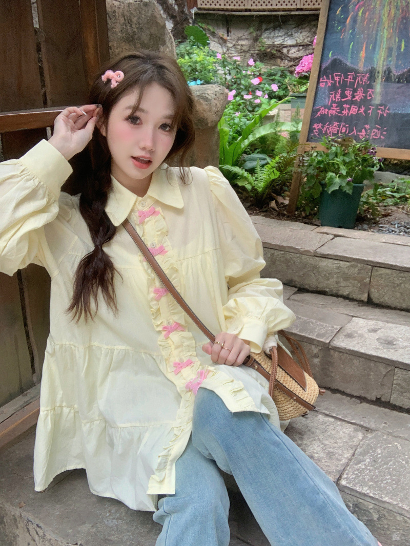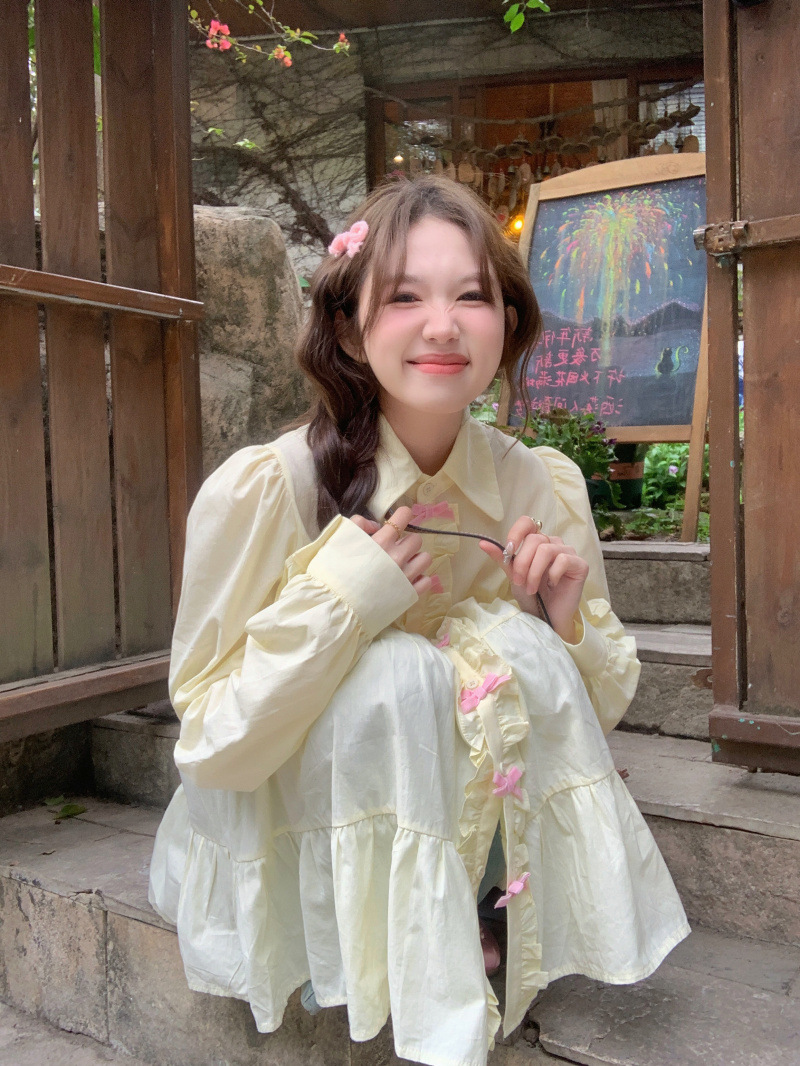 한국 스타일 부드러운 달콤한 활 셔츠 원피스 여성의 가을 2024 새로운 느슨한 슬리밍 폴로 칼라 스커트스토어 가기