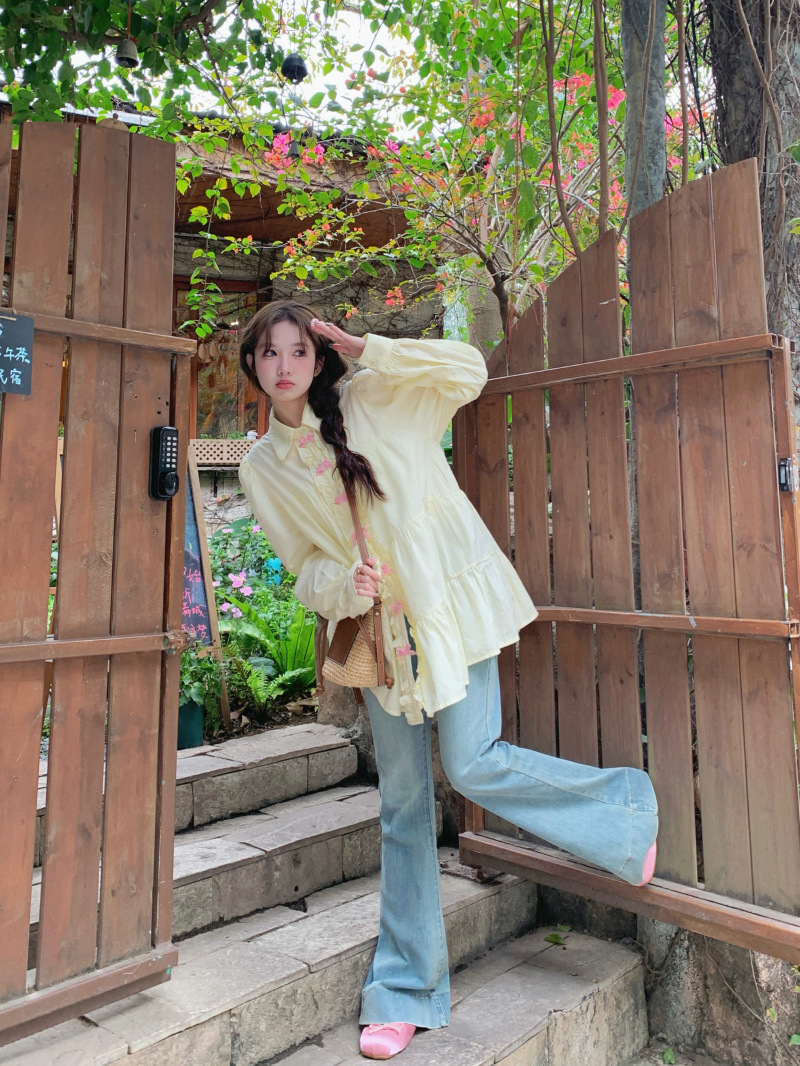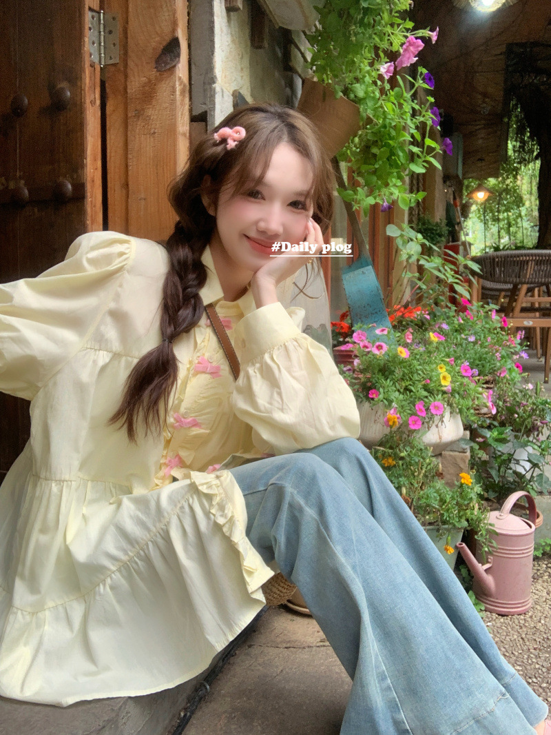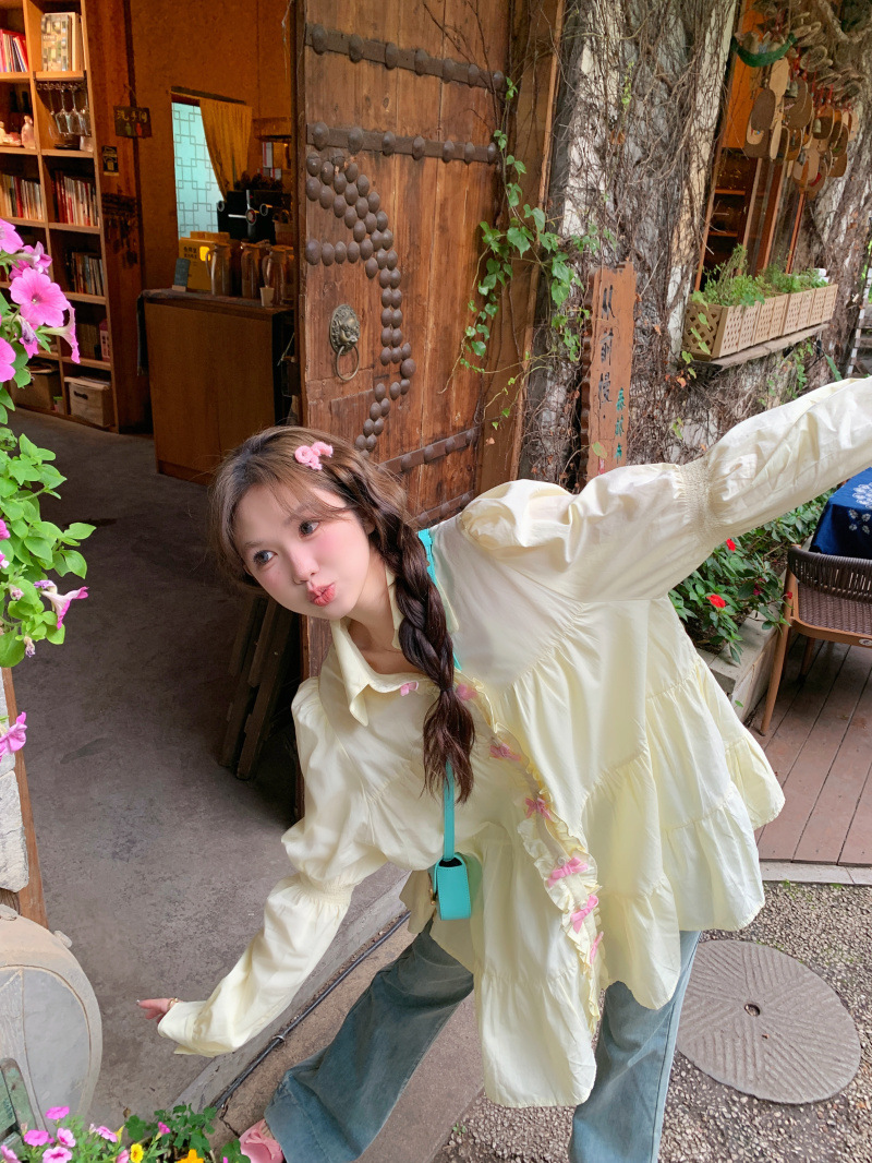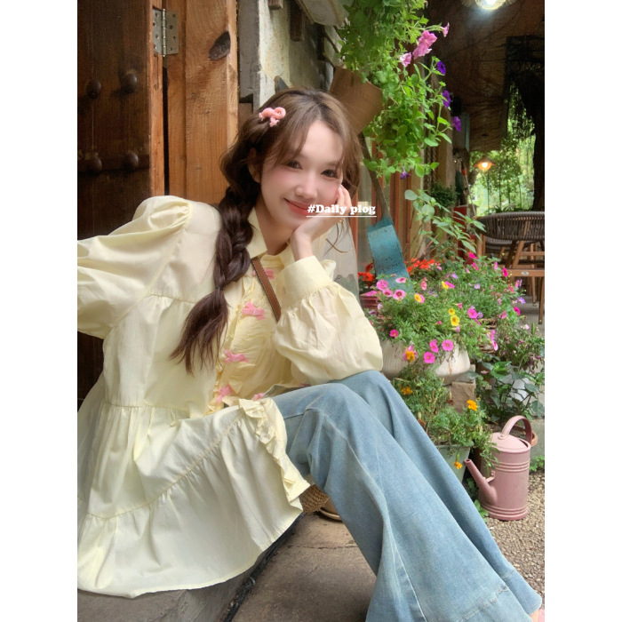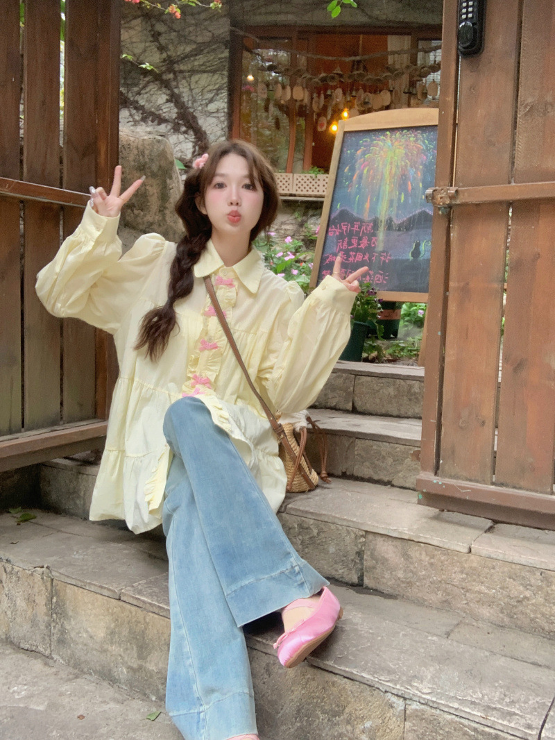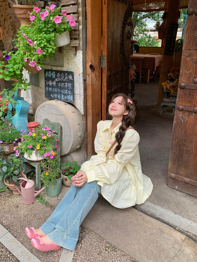 한국 스타일 부드러운 달콤한 활 셔츠 원피스 여성의 가을 2024 새로운 느슨한 슬리밍 폴로 칼라 스커트스토어 가기
