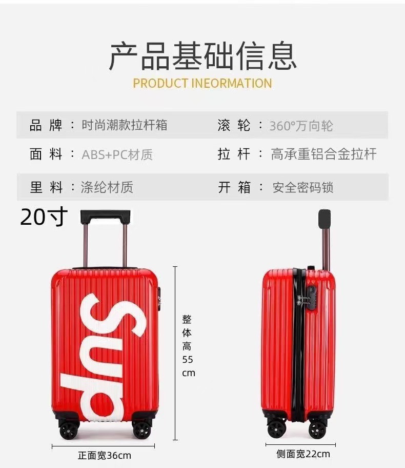 세로 줄무늬 SUP 학생용 트롤리 캐리어, 회전 바퀴, 어린이용 여행 가방, 비밀번호 잠금, 여행용 캐리어, 배색 기내용 캐리어스토어 가기