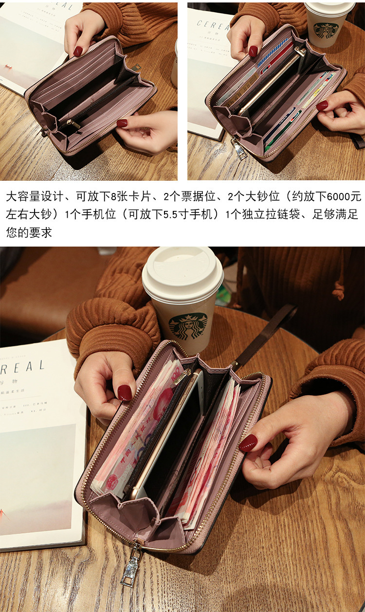 여성용 지갑, 롱 클러치, 한국식 핸드백, 다기능 카드 홀더, 휴대폰 가방, 동전 지갑, 여성용 지갑 수납