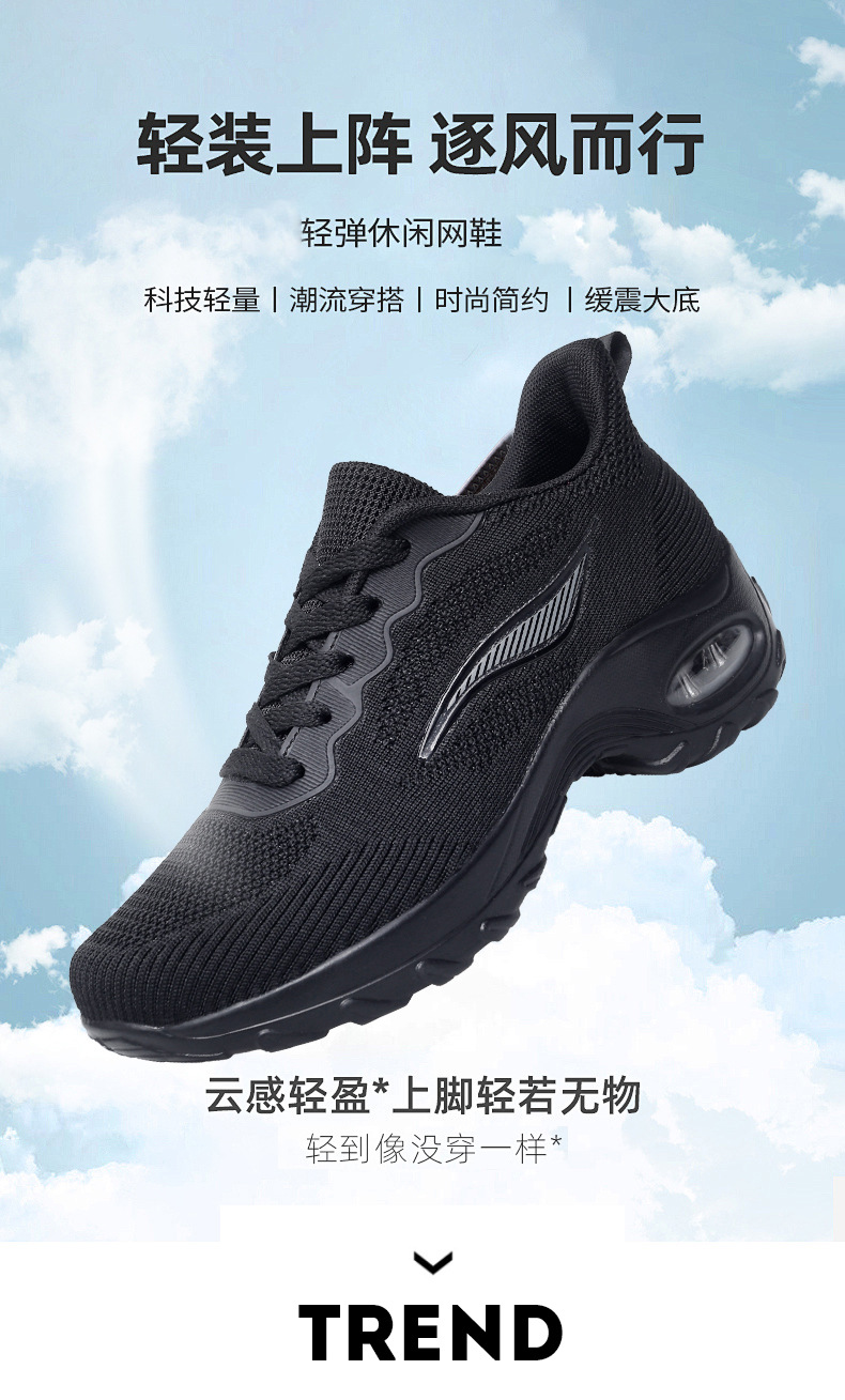 2024 새로운 비행 그물 신발 캐주얼 운동화 에어 쿠션 야외 여행 하이킹 플러스 사이즈 국경 간 여성 신발스토어 가기