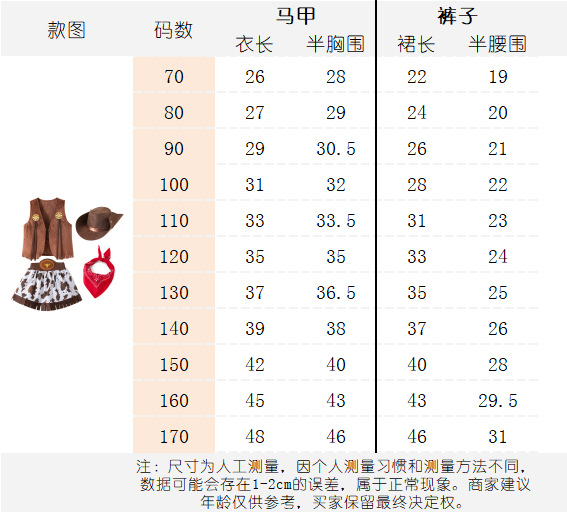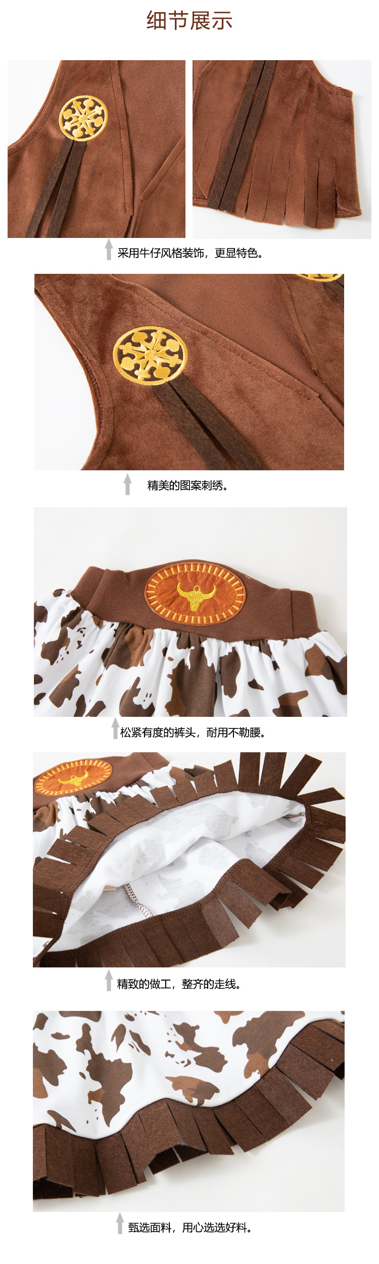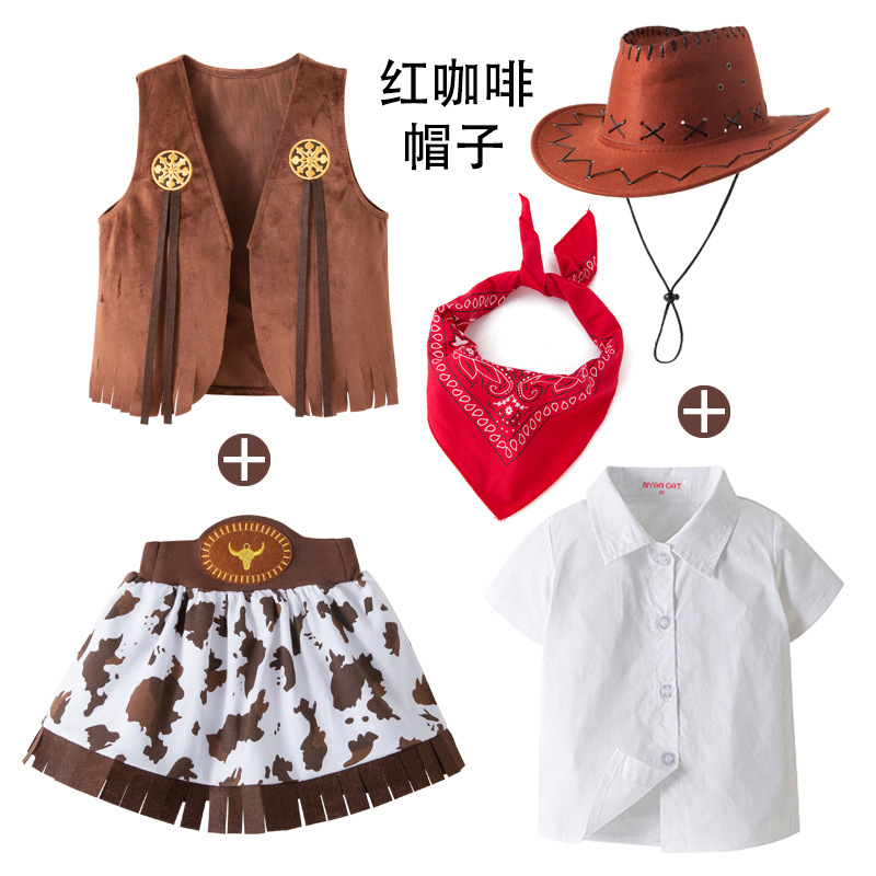 서양 카우보이 스커트 정장 소녀 축제 의류 캐릭터 의상 코스프레 양복 조끼 정장 캡이있는 4 피스 의상