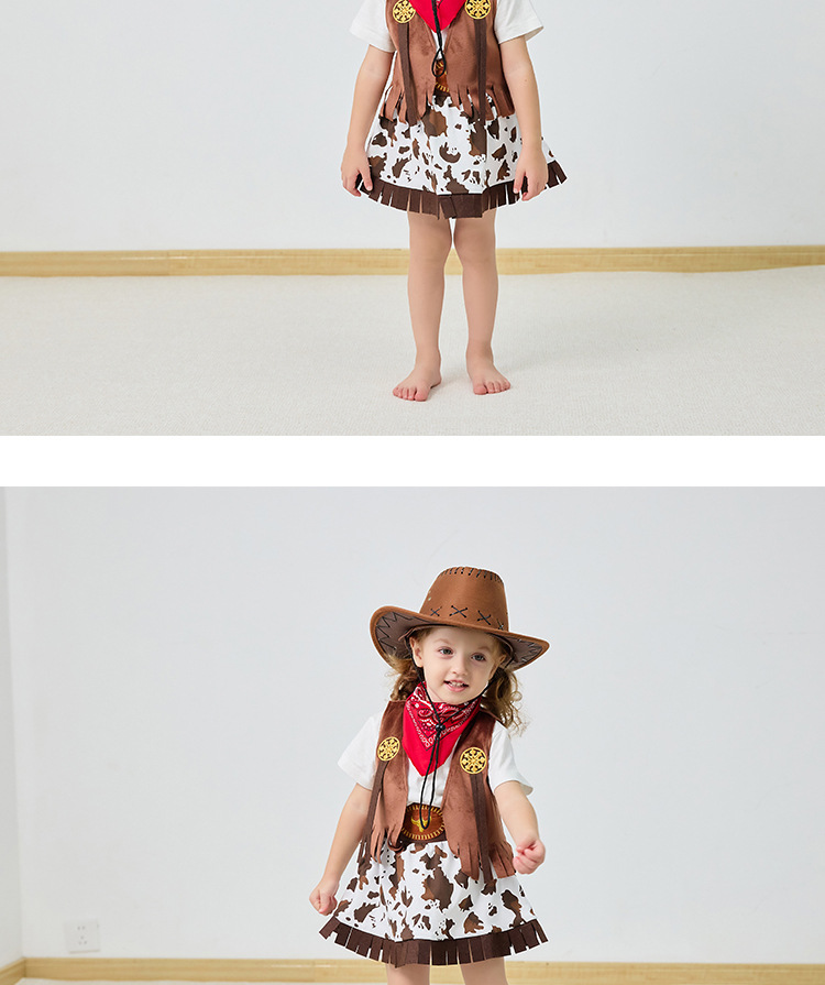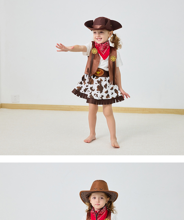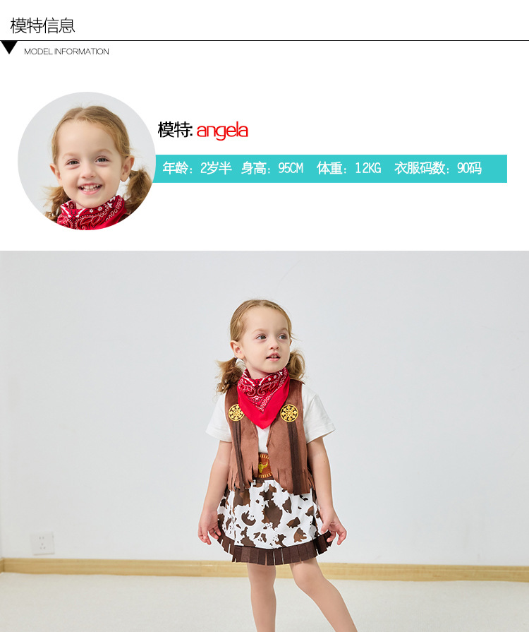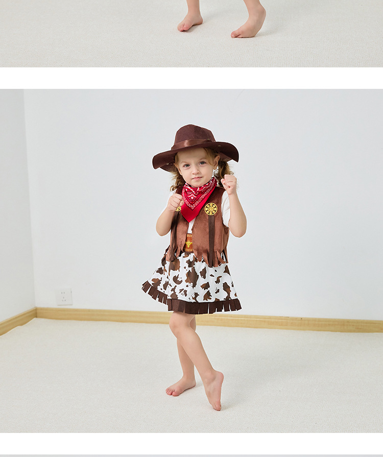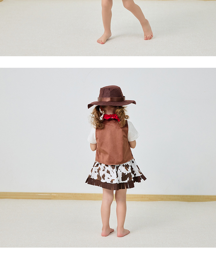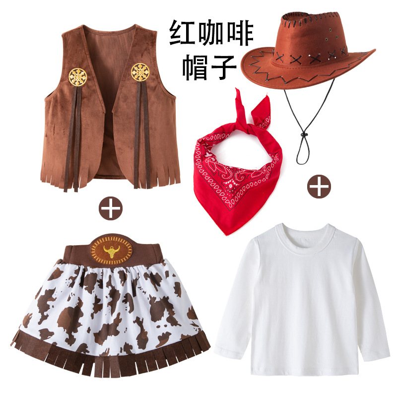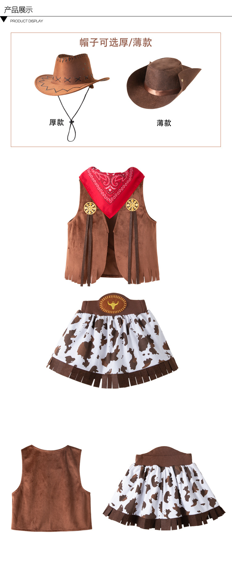 서양 카우보이 스커트 정장 소녀 축제 의류 캐릭터 의상 코스프레 양복 조끼 정장 캡이있는 4 피스 의상스토어 가기