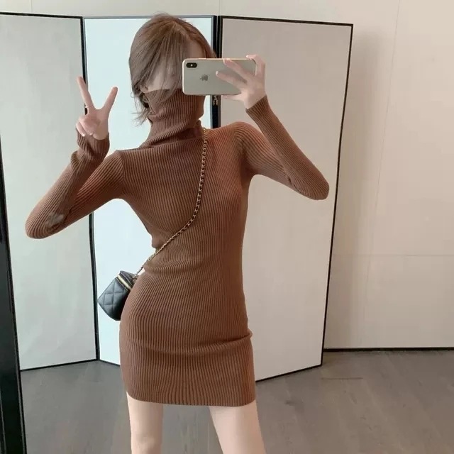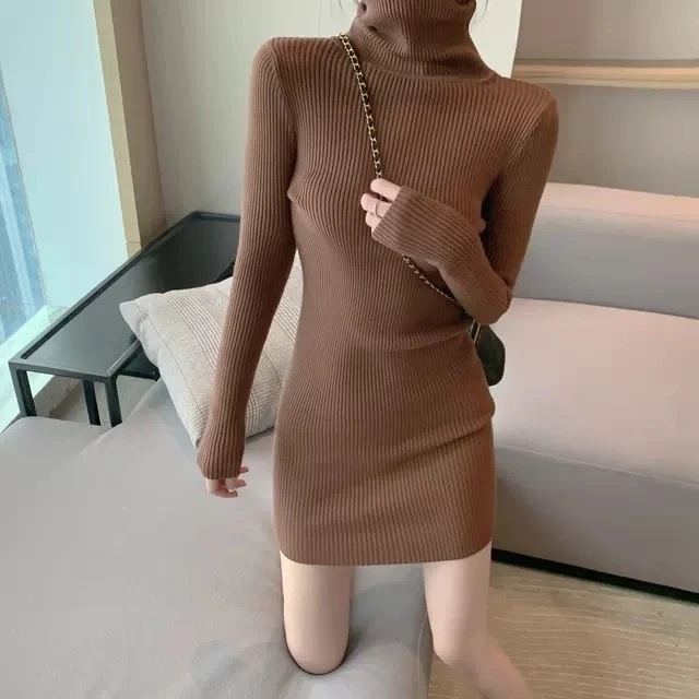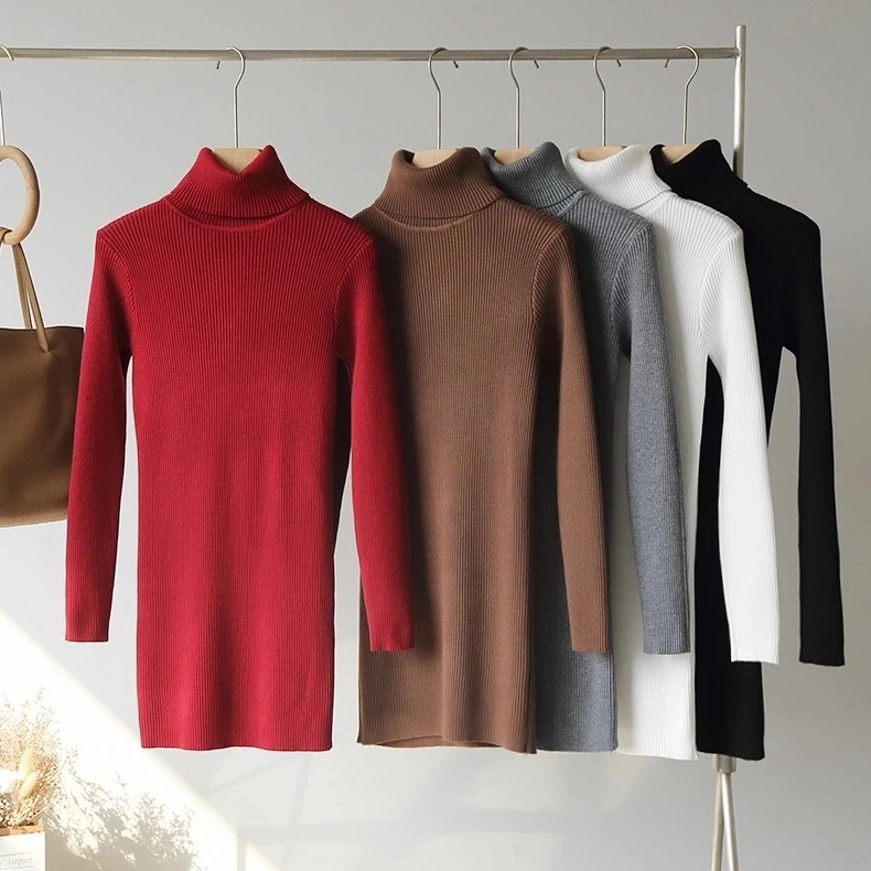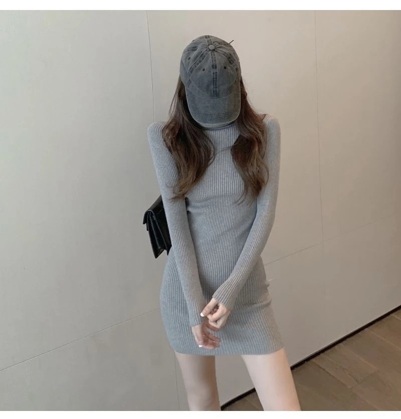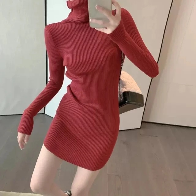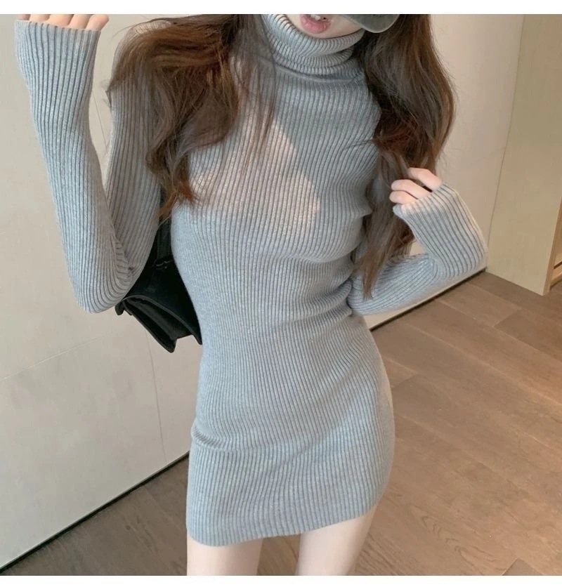 중간 길이의 스웨터와 니트 원피스를 겸비한 여성용 가을 겨울 스타일로, 몸에 꼭 맞는 힙라인을 강조하는 이너웨어 스커트와 코트를 함께 입는 것이 좋습니다.스토어 가기