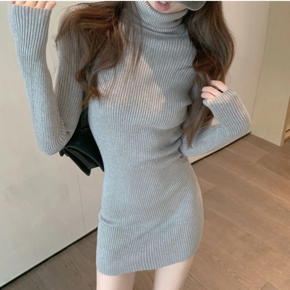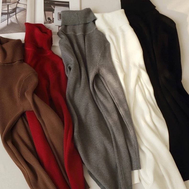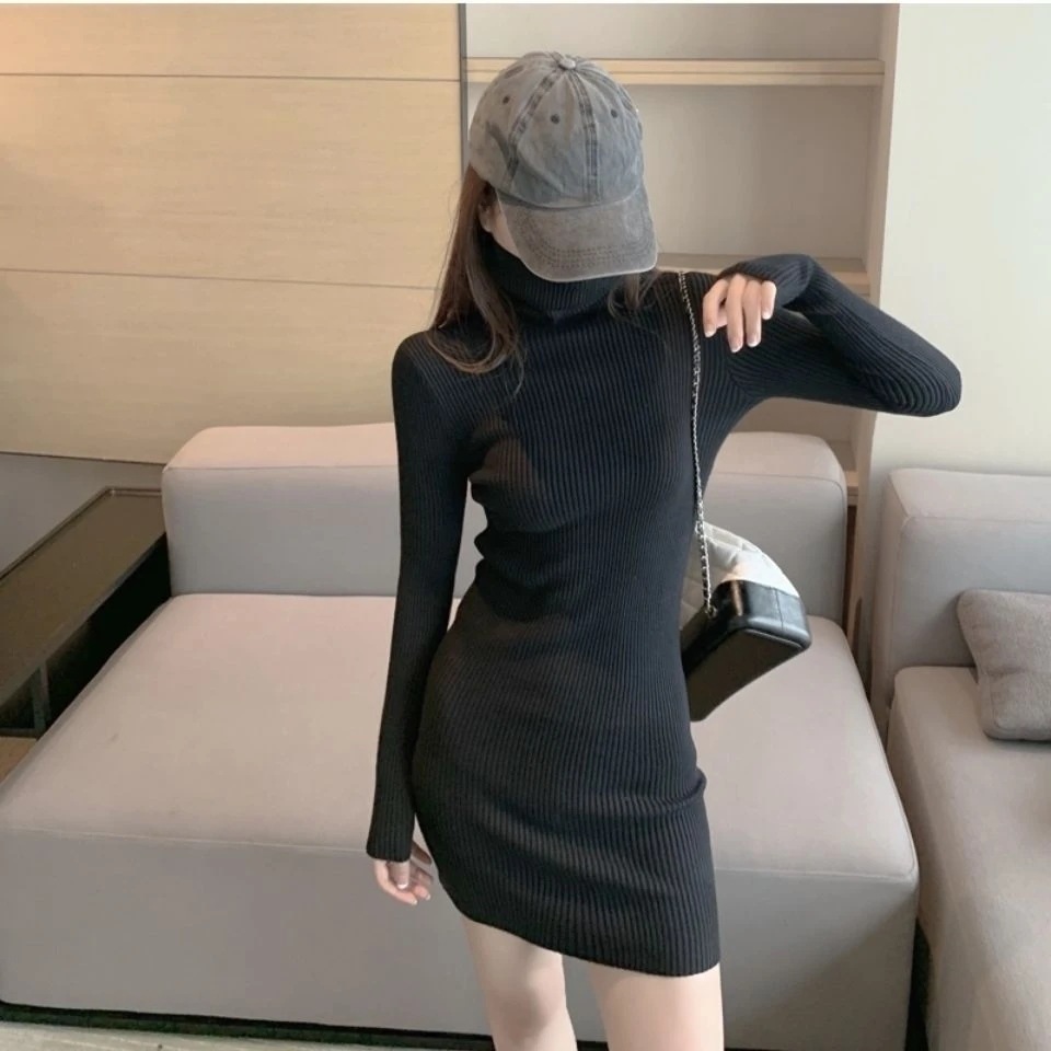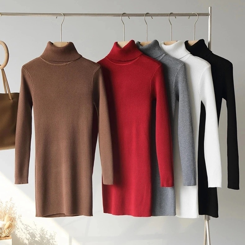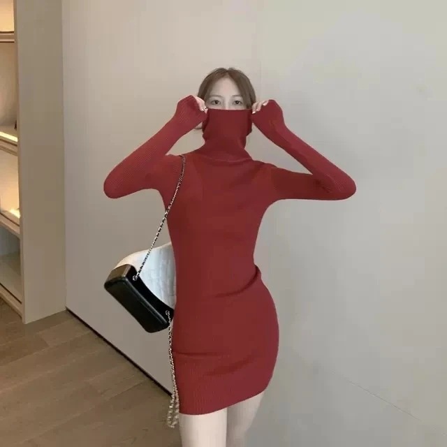 중간 길이의 스웨터와 니트 원피스를 겸비한 여성용 가을 겨울 스타일로, 몸에 꼭 맞는 힙라인을 강조하는 이너웨어 스커트와 코트를 함께 입는 것이 좋습니다.스토어 가기