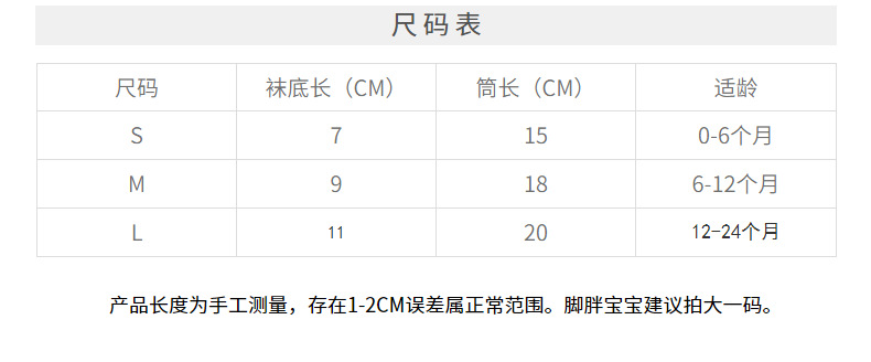• S 0-6개월 양말 밑창 길이 7CM 튜브 길이 15cm