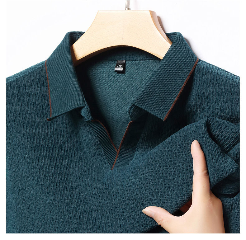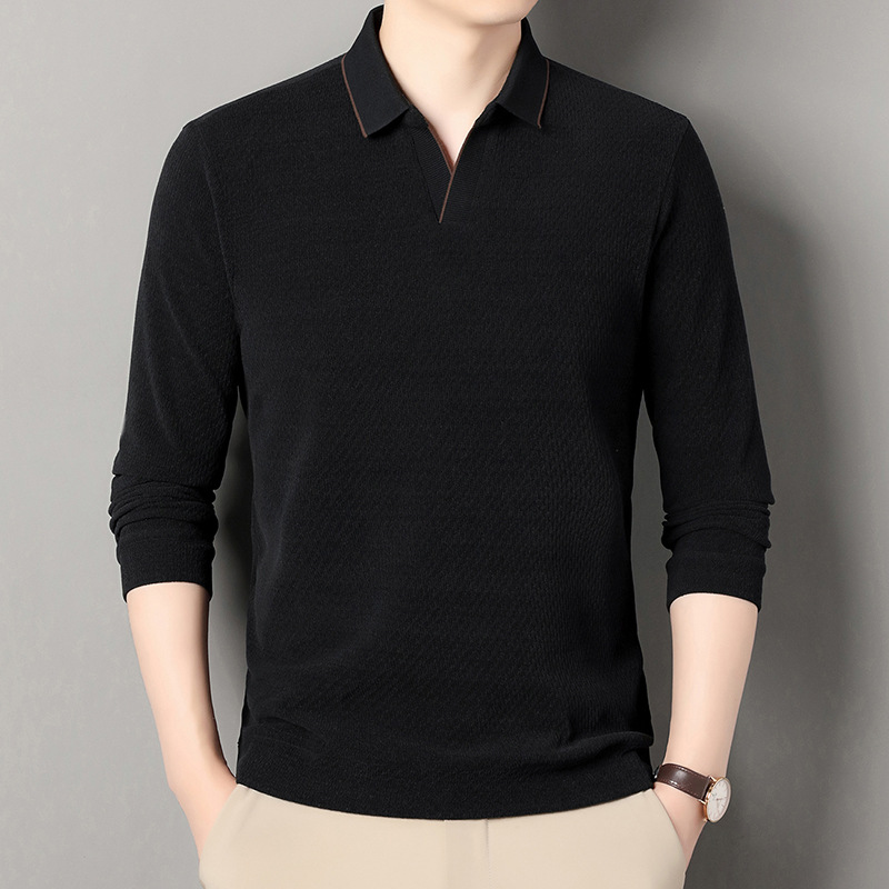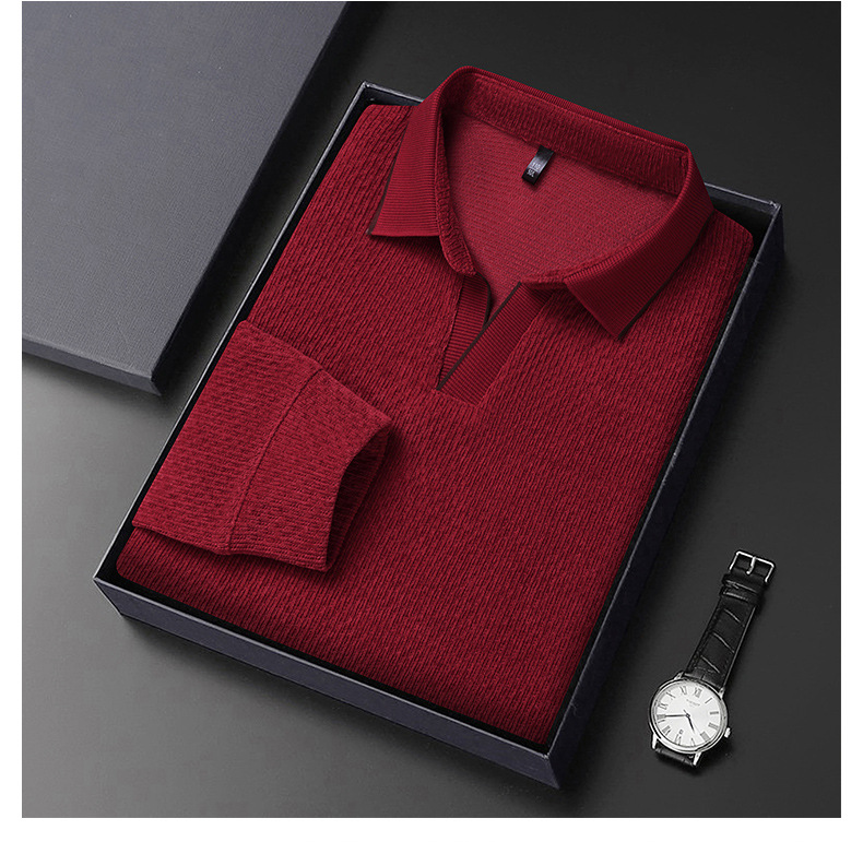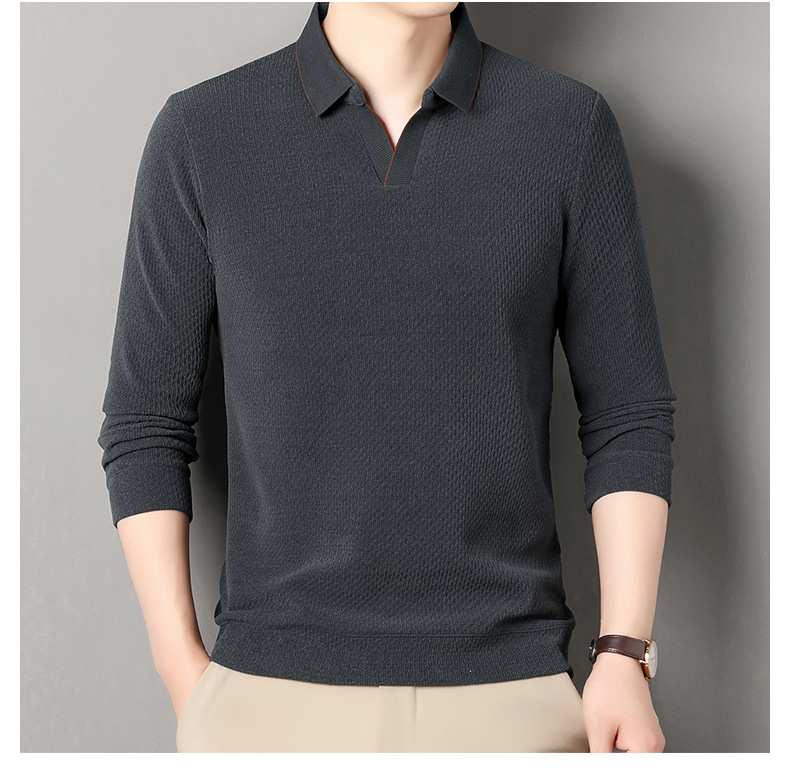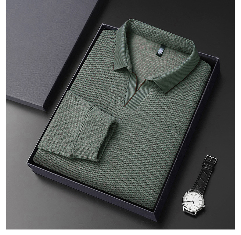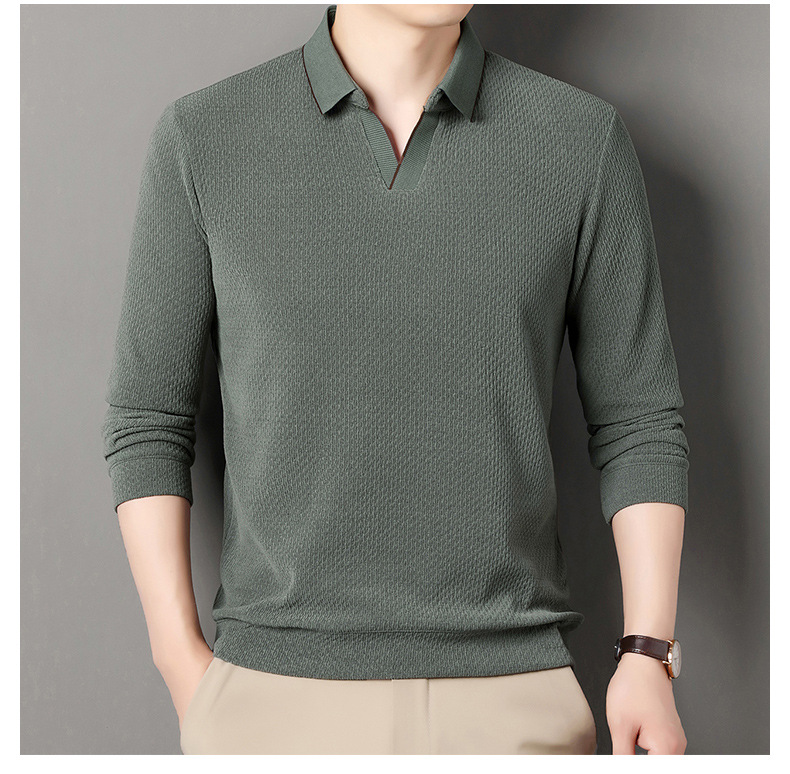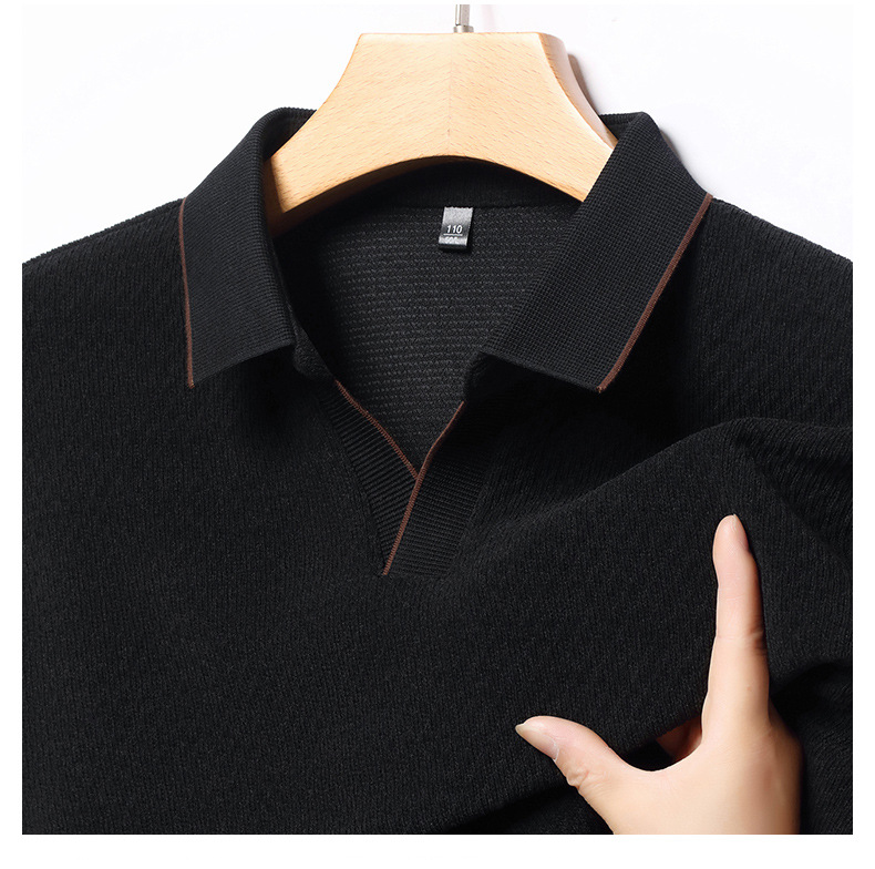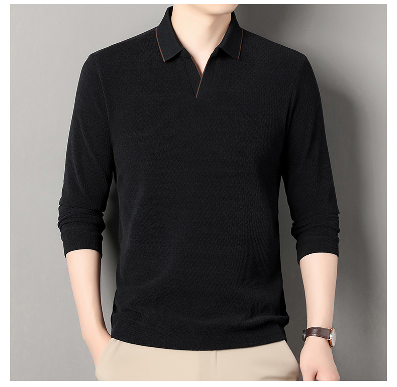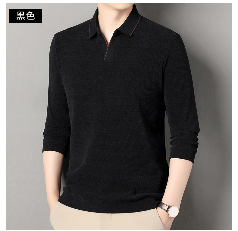 가을 2024 년 새로운 긴팔 가위 목걸이 티셔츠, 양모 남성 단색 비즈니스 캐주얼 국경 폴로 셔츠