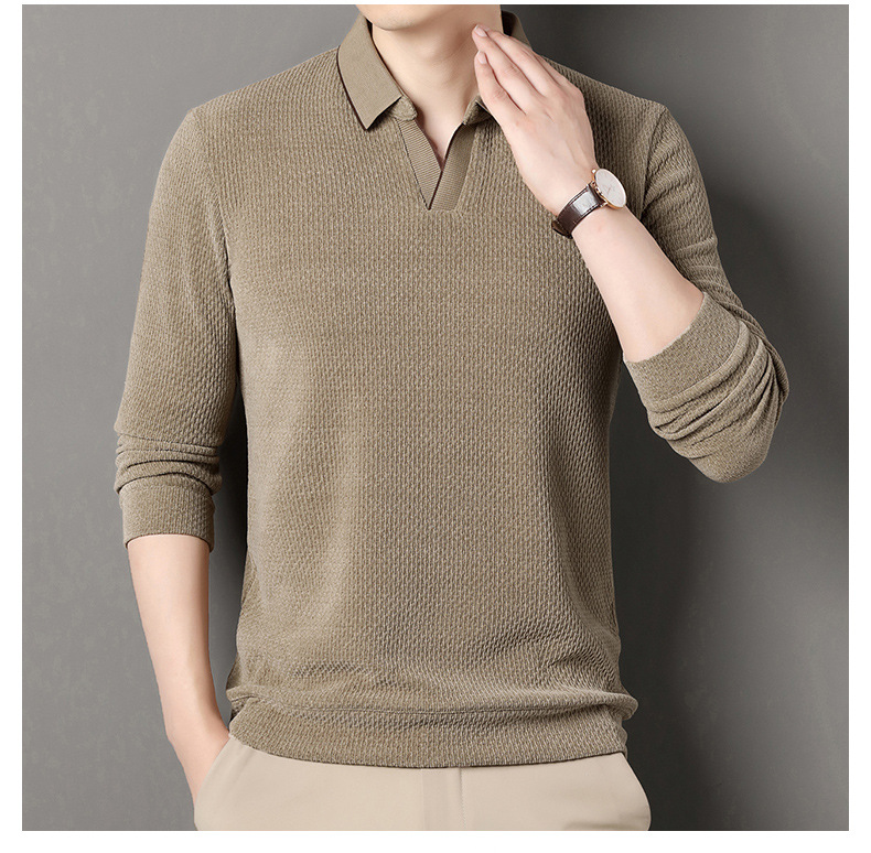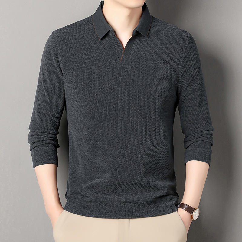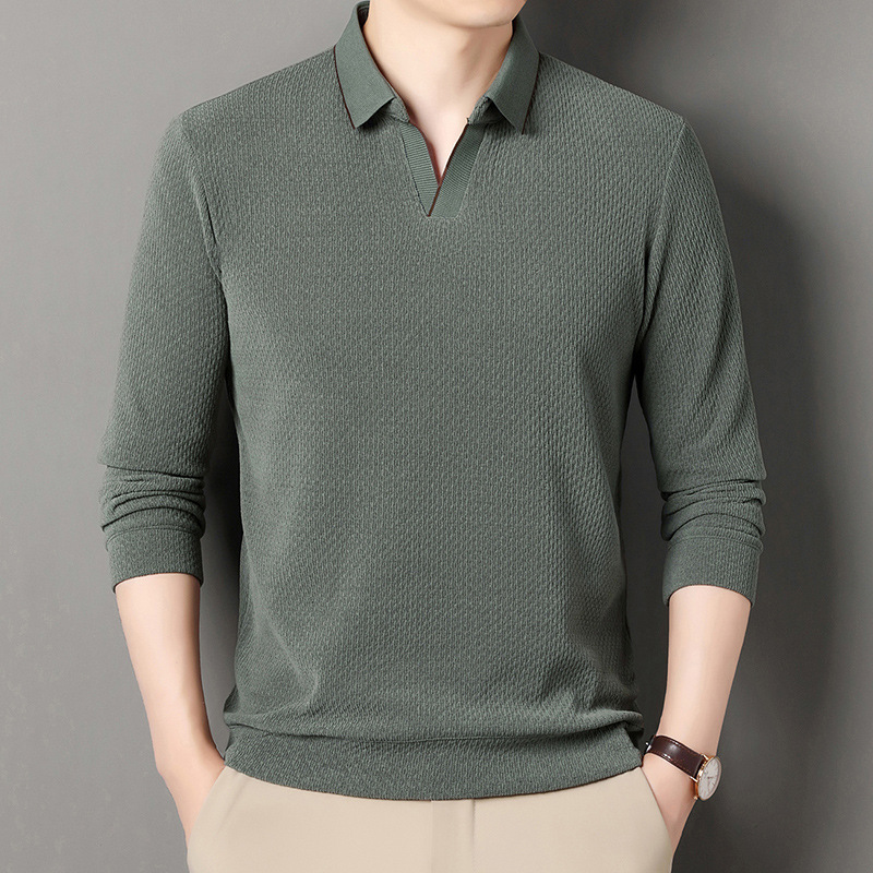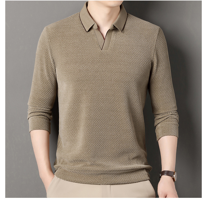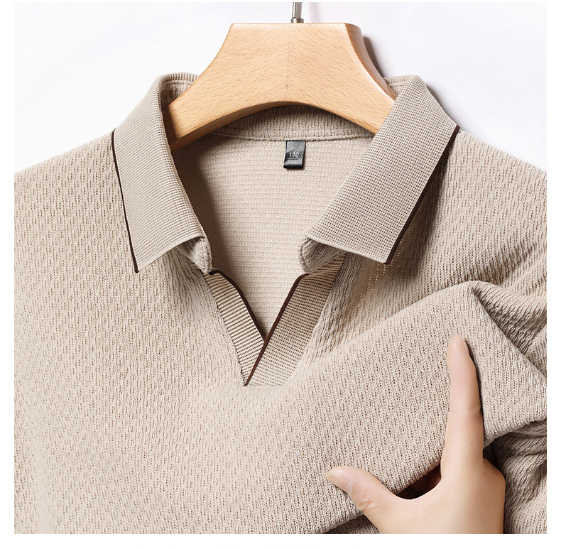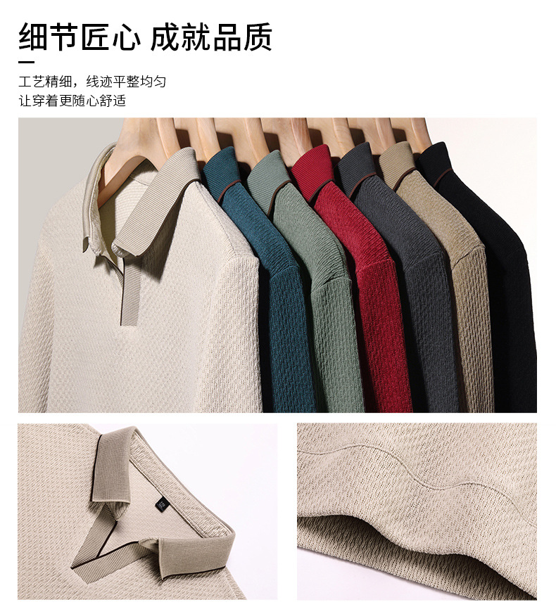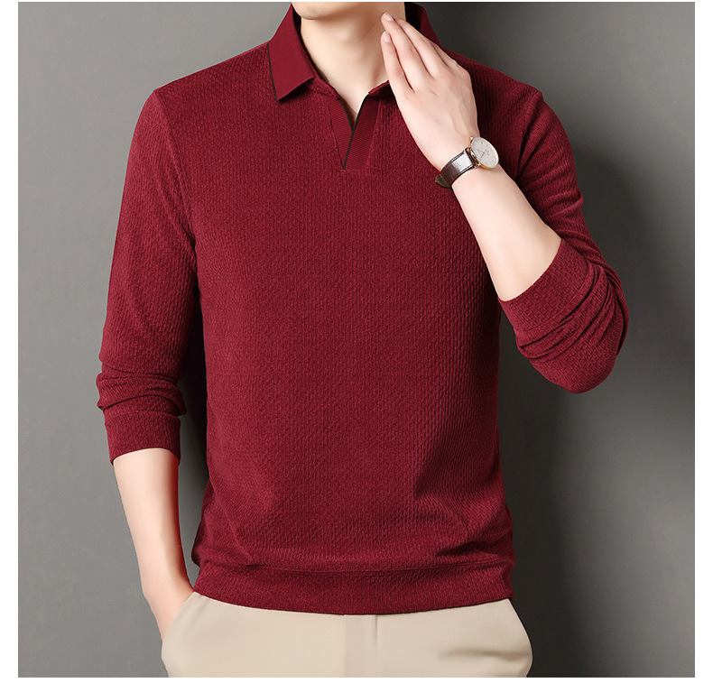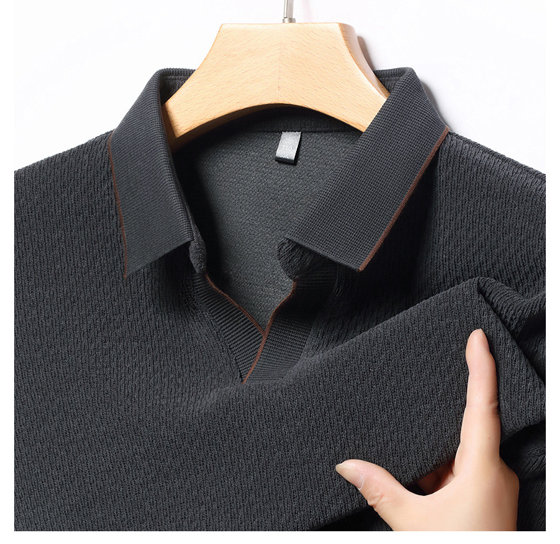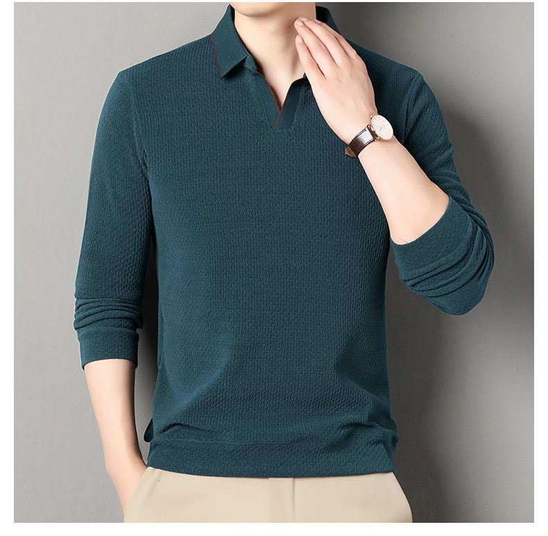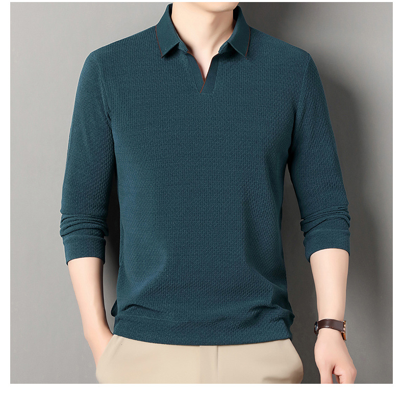 가을 2024 년 새로운 긴팔 가위 목걸이 티셔츠, 양모 남성 단색 비즈니스 캐주얼 국경 폴로 셔츠