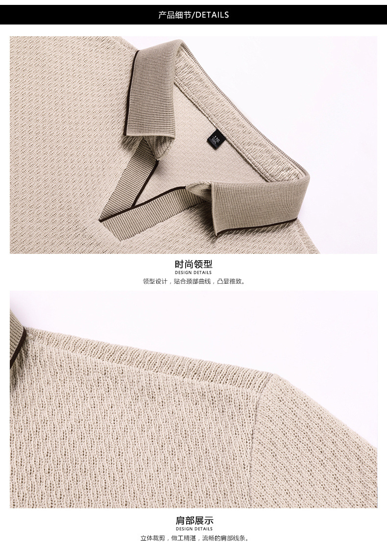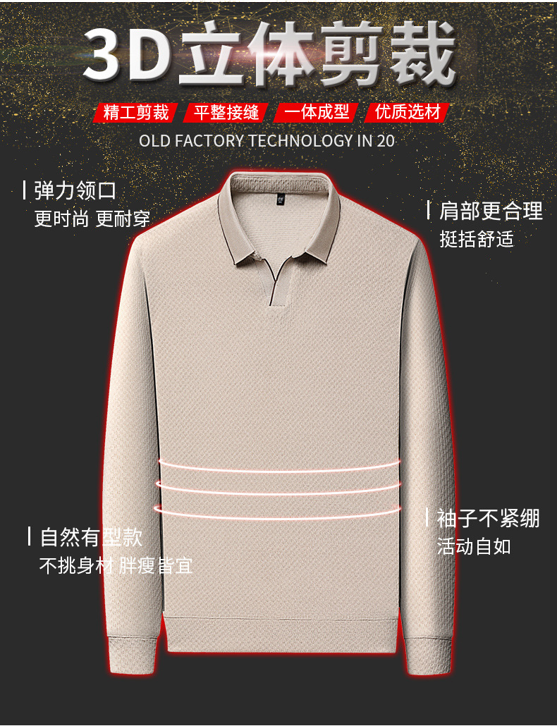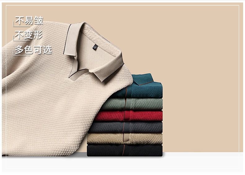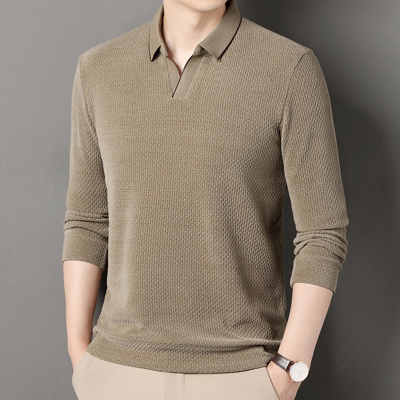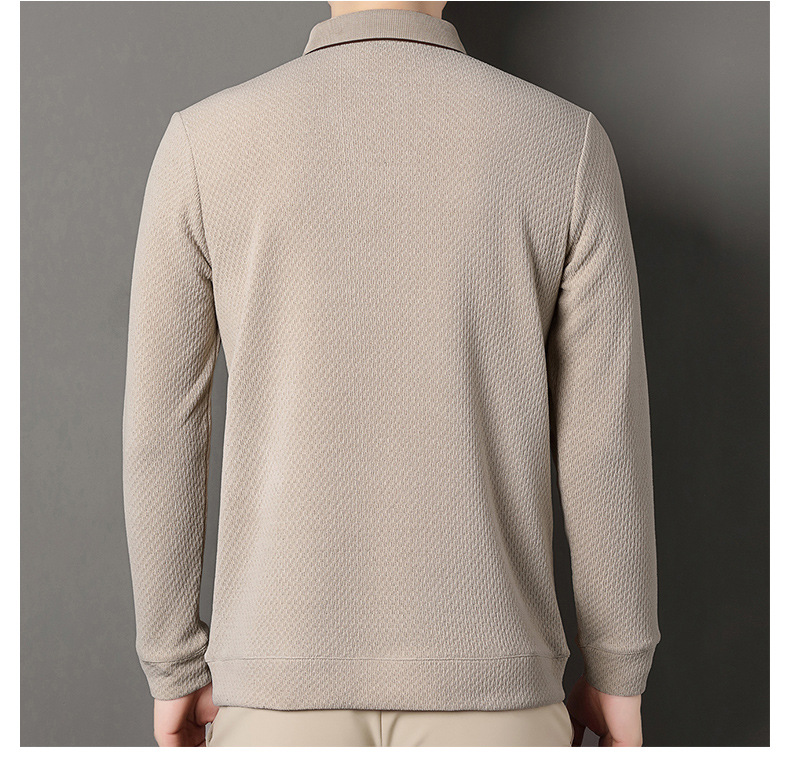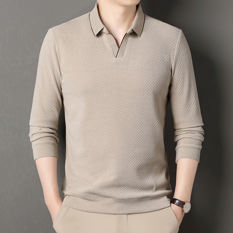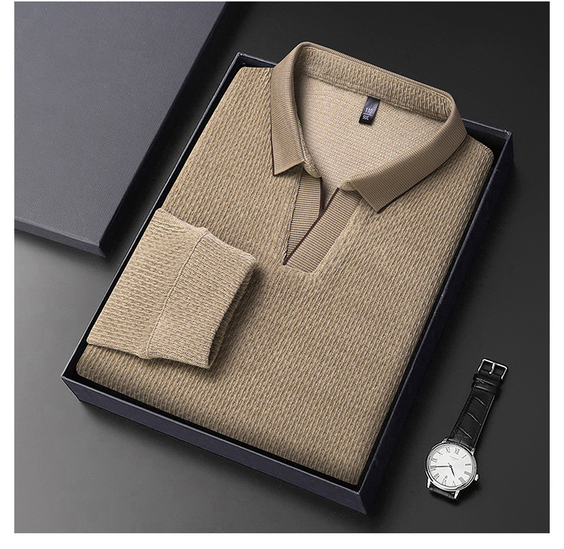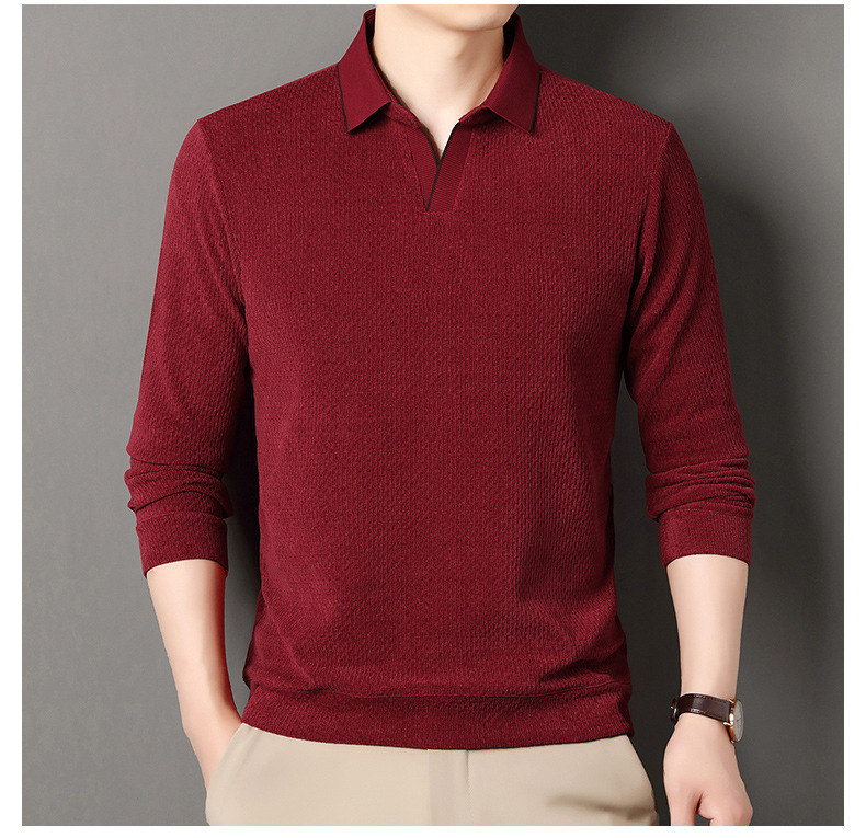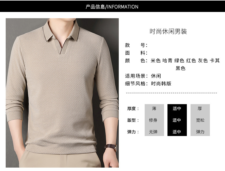 가을 2024 년 새로운 긴팔 가위 목걸이 티셔츠, 양모 남성 단색 비즈니스 캐주얼 국경 폴로 셔츠