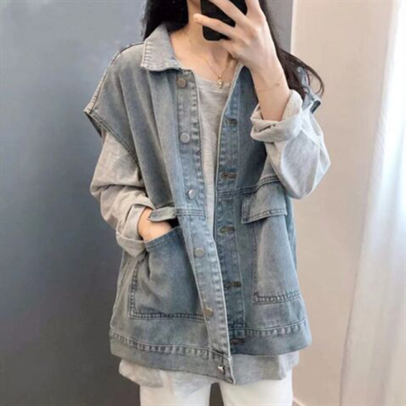 봄 2024 새로운 유행 V-목 세척 데님 조끼 재킷 여성 스트레이트 민소매 독특한 조끼스토어 가기