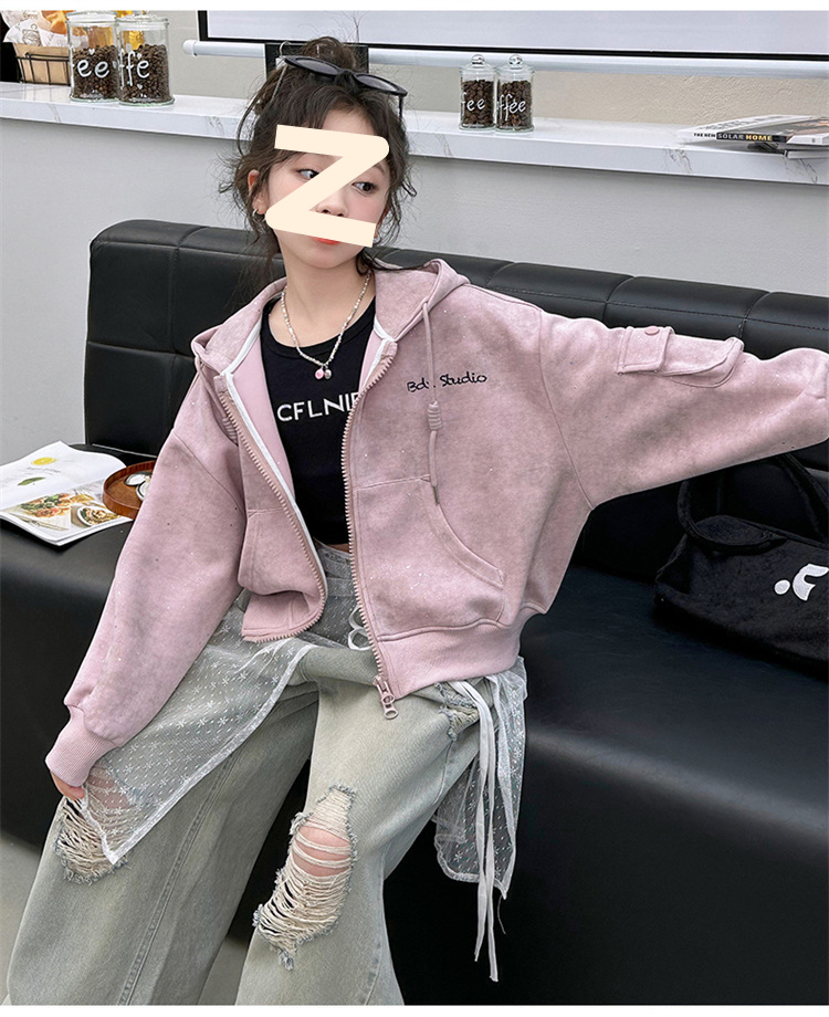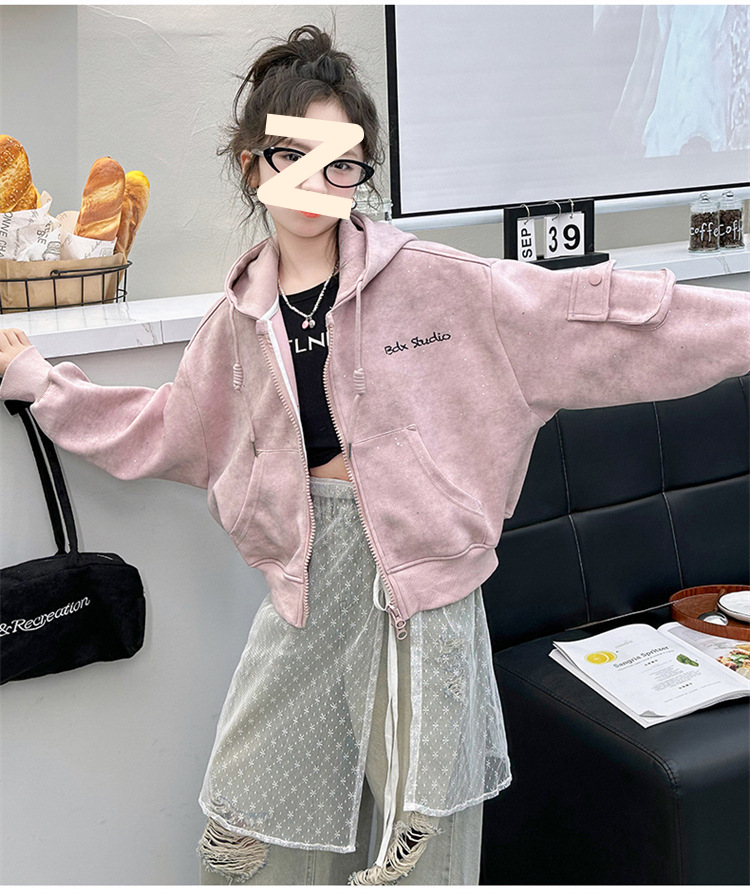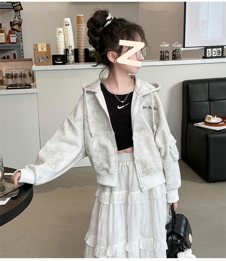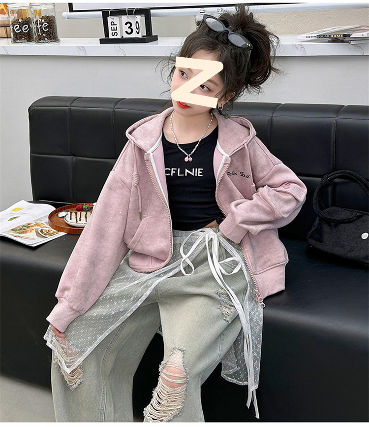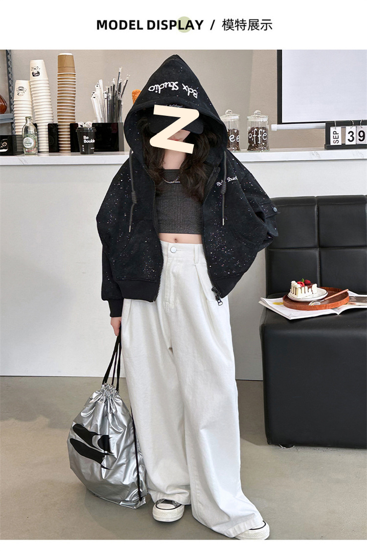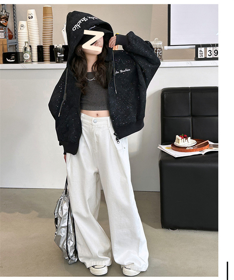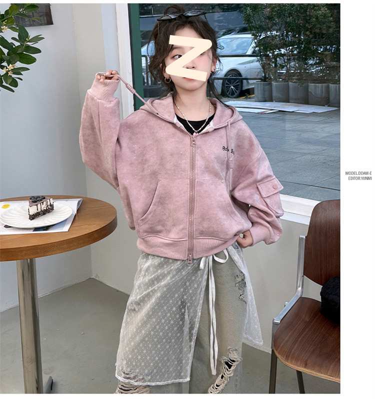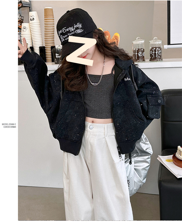 소녀 가을 밝은 스파클링 재킷 2024 새로운 중대형 키즈 세련된 유행 편지 후드 긴팔 지퍼 카디건스토어 가기