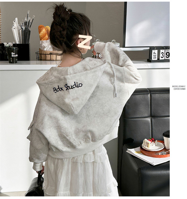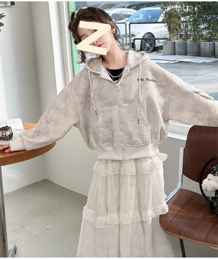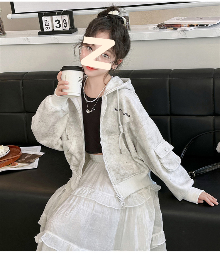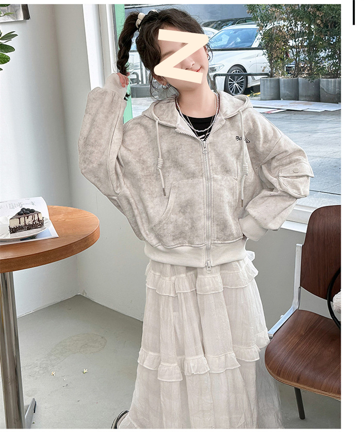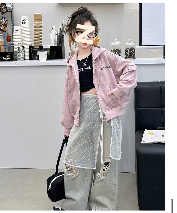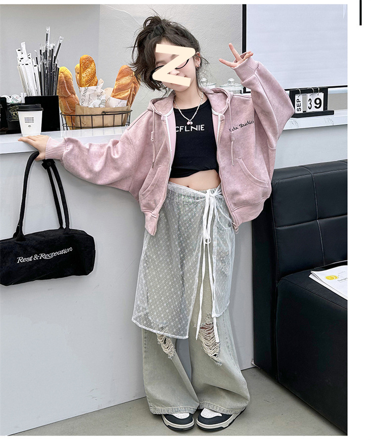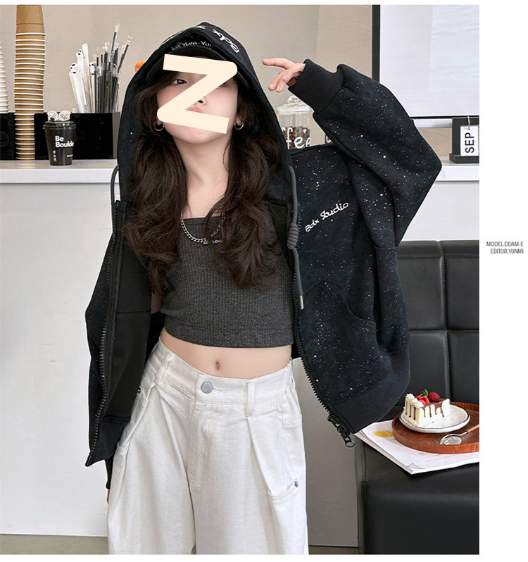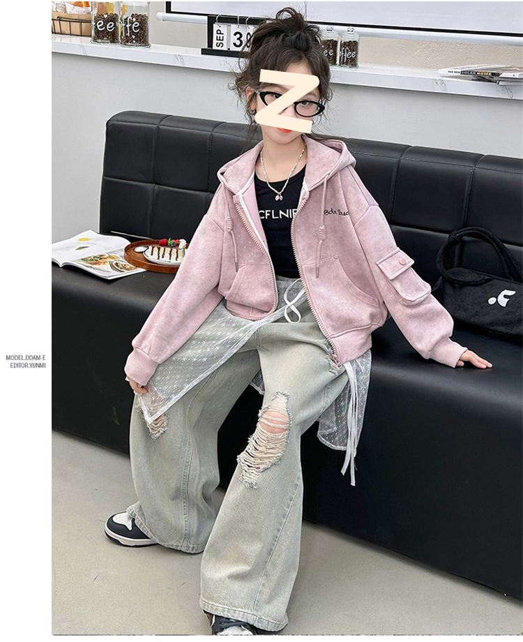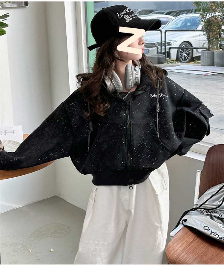 소녀 가을 밝은 스파클링 재킷 2024 새로운 중대형 키즈 세련된 유행 편지 후드 긴팔 지퍼 카디건스토어 가기