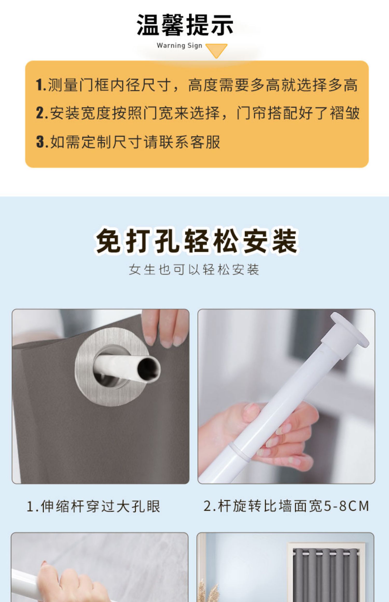 • [문 폭 75-95에 적합] 커튼 폭 120*높이 200 (스트랩 포함)