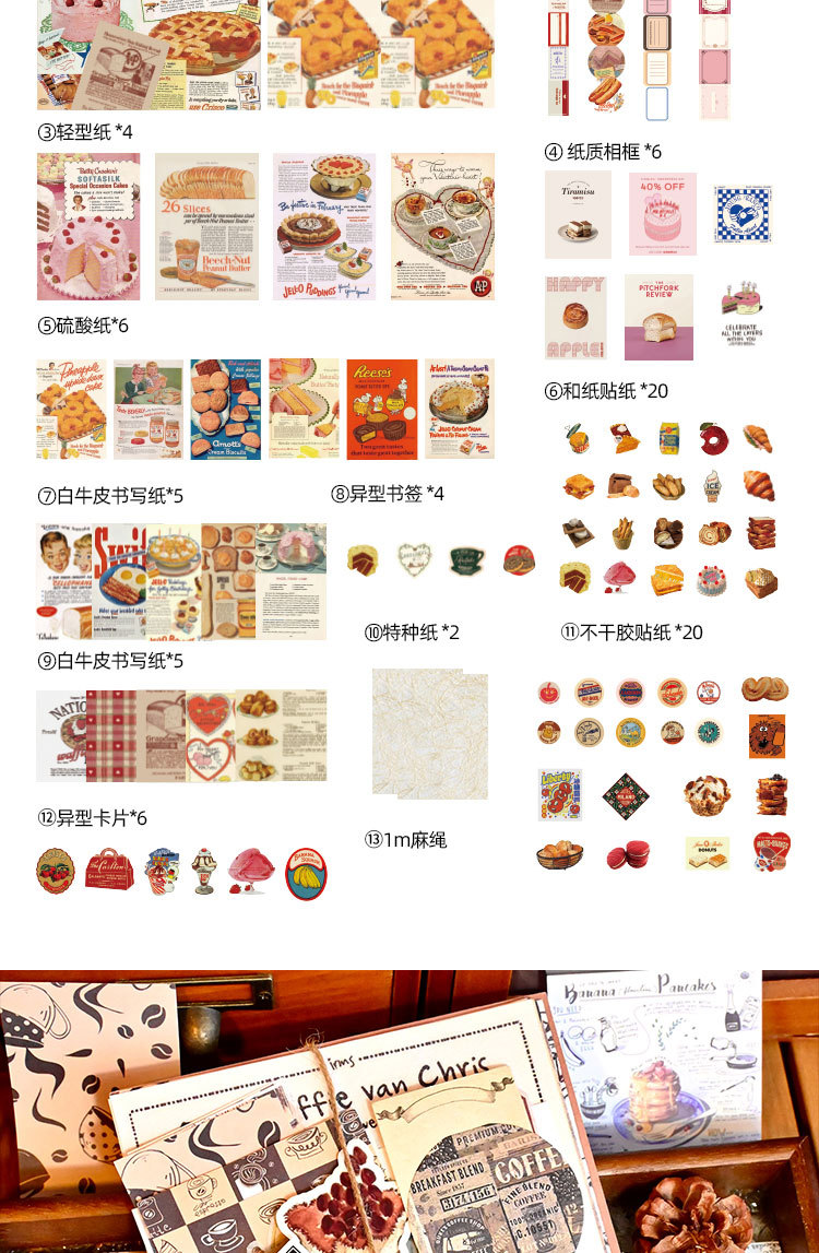 새로운 미국 복고풍 스타일 시리즈 스티커 Yuan Ye 손 계정 소재 수제 틈새 예술 장식 DIY 소재 종이스토어 가기