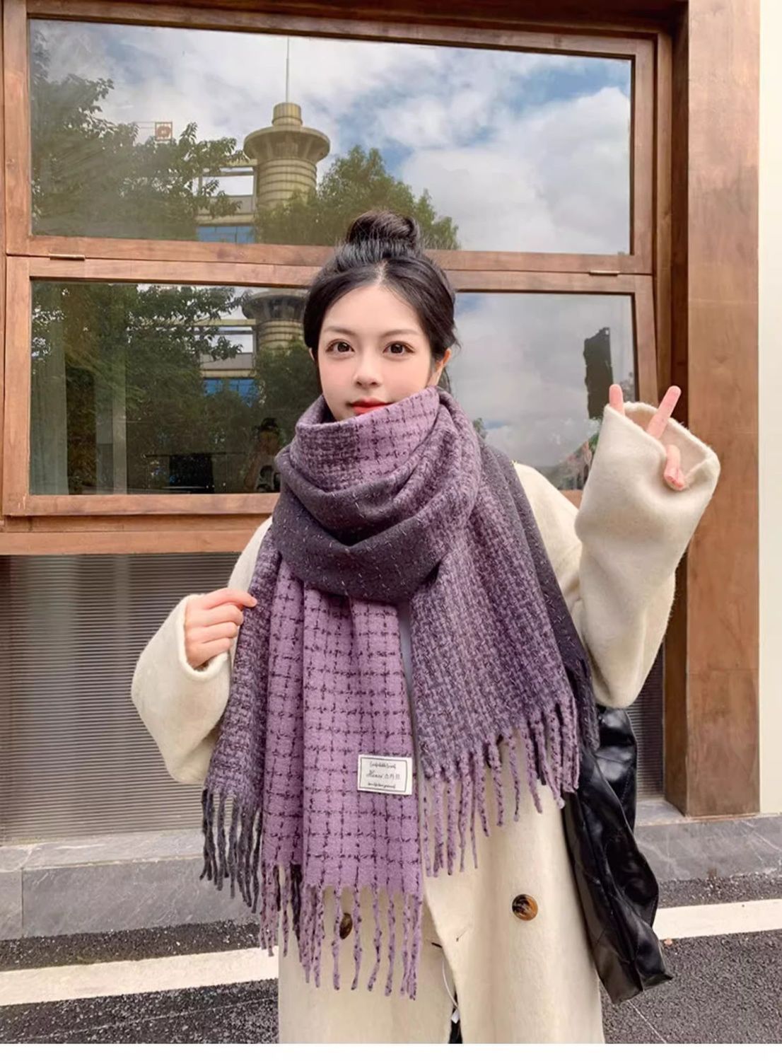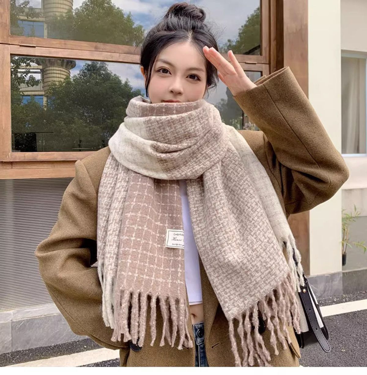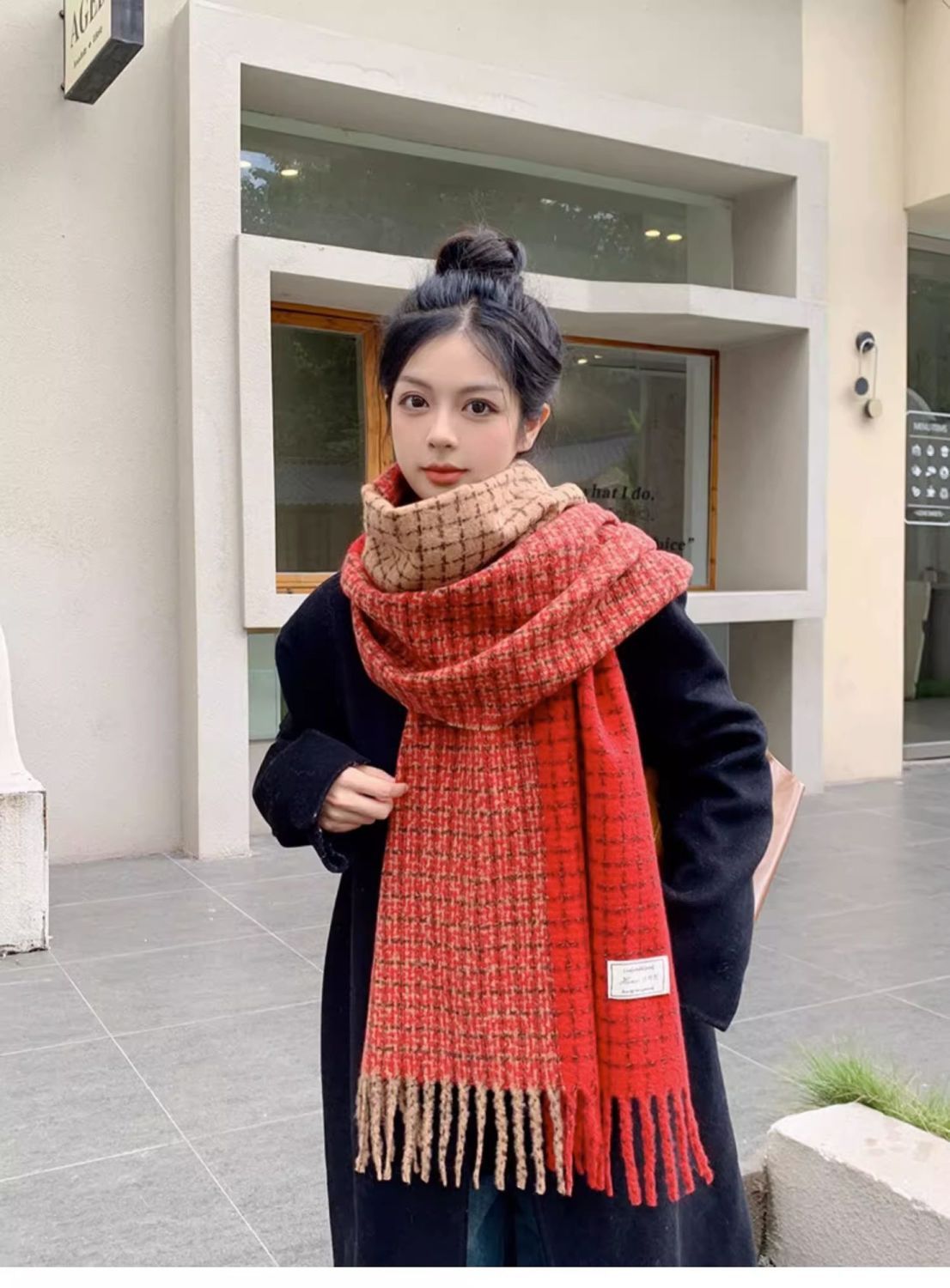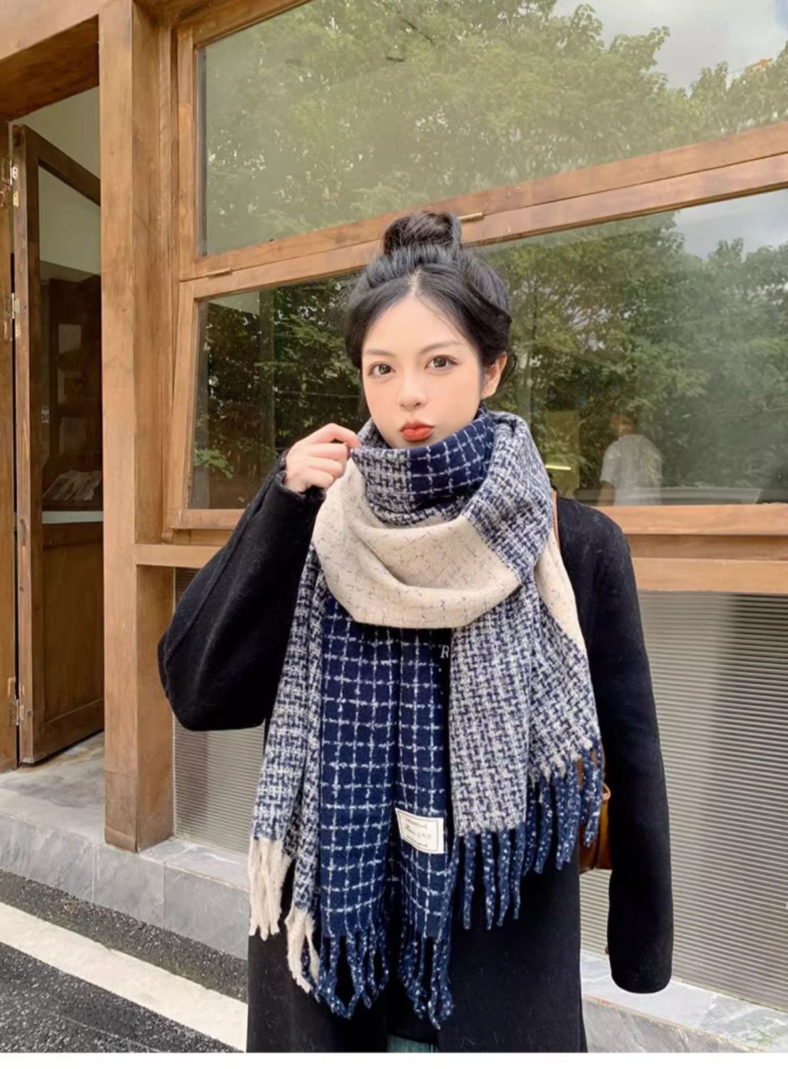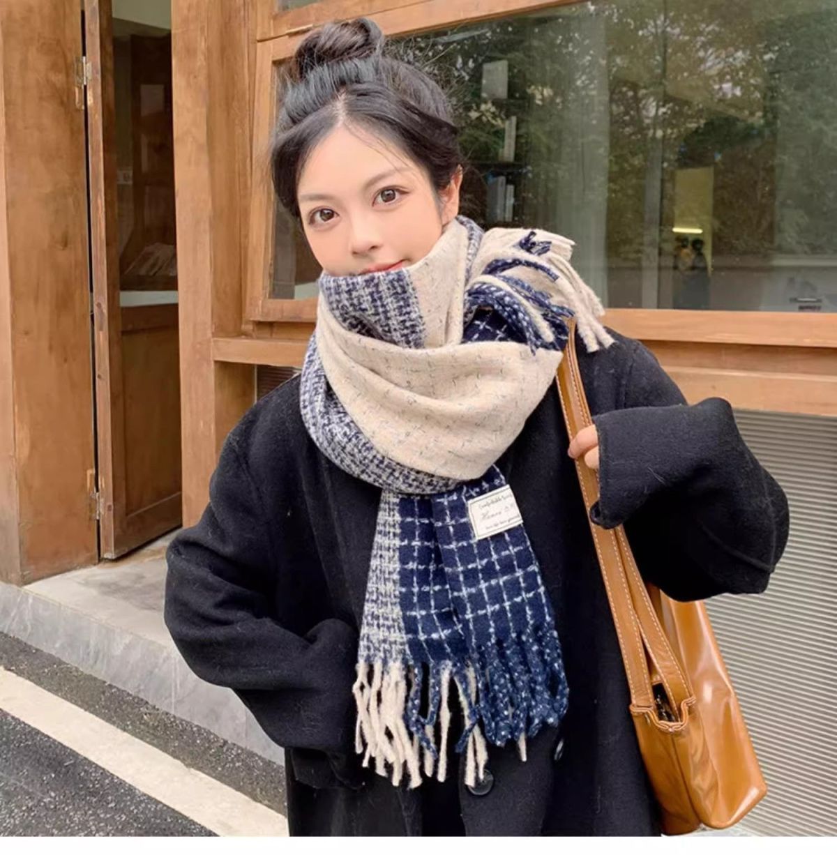 컬러블록 격자 무늬 스카프 여성 가을과 겨울 한국식 긴 두꺼운 따뜻한 모방 캐시미어 목도리 학생 커플 스카프