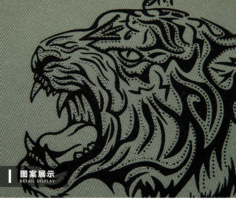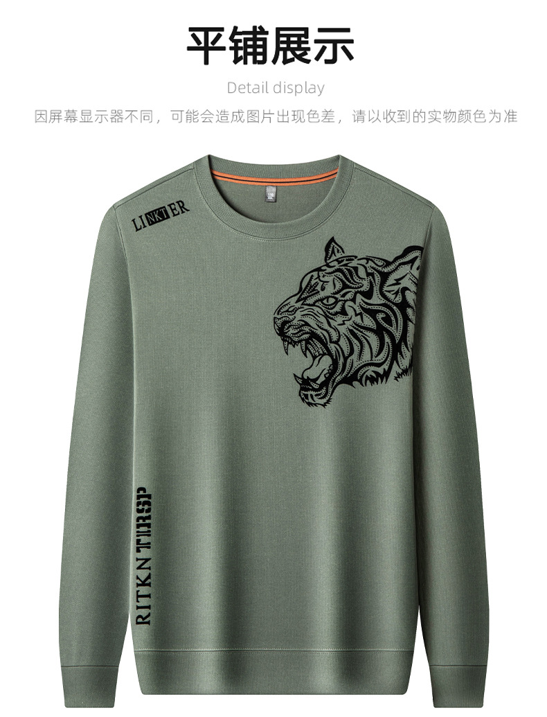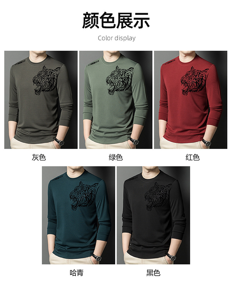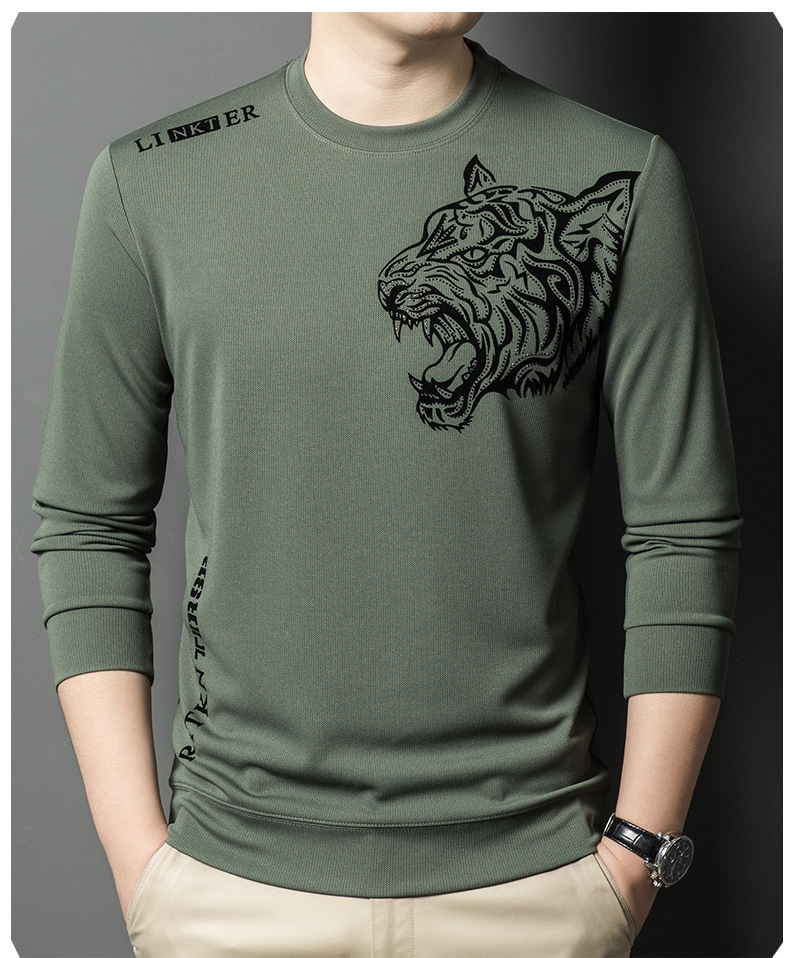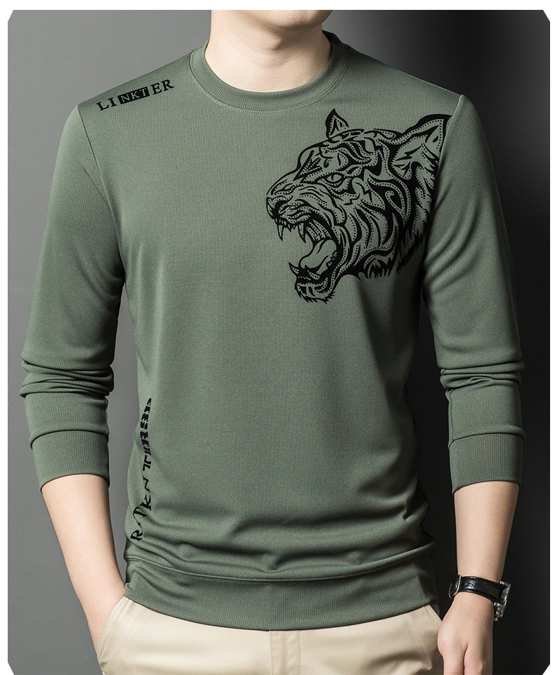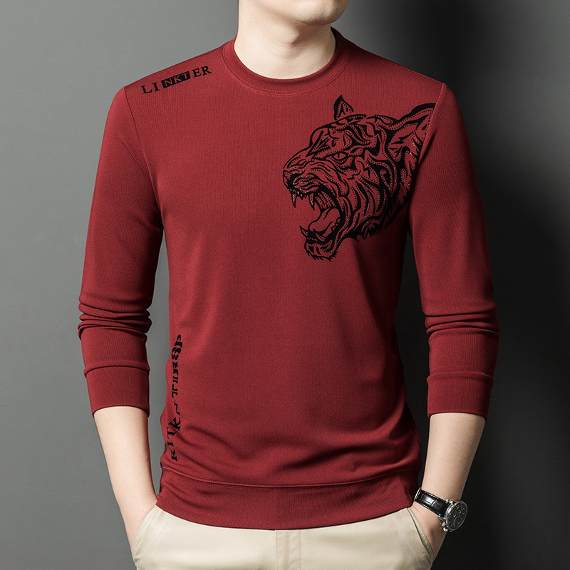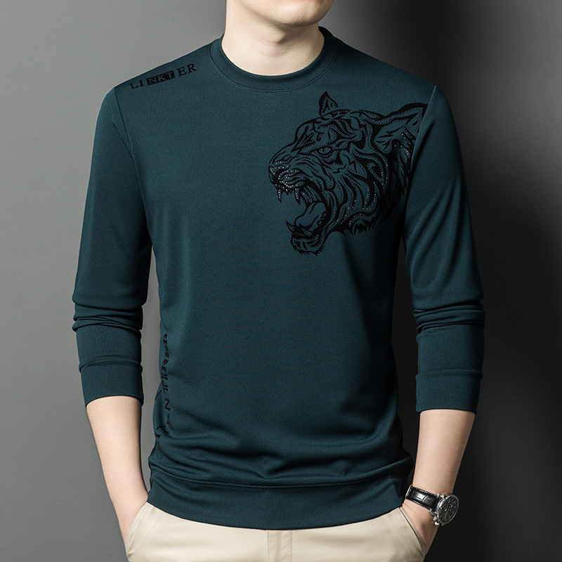 남성 봄과 가을 긴팔 젊은 중년 라운드 넥 라인스톤 인쇄 캐주얼 트렌디 드래곤 패턴 패션 티셔츠 스웨트 셔츠