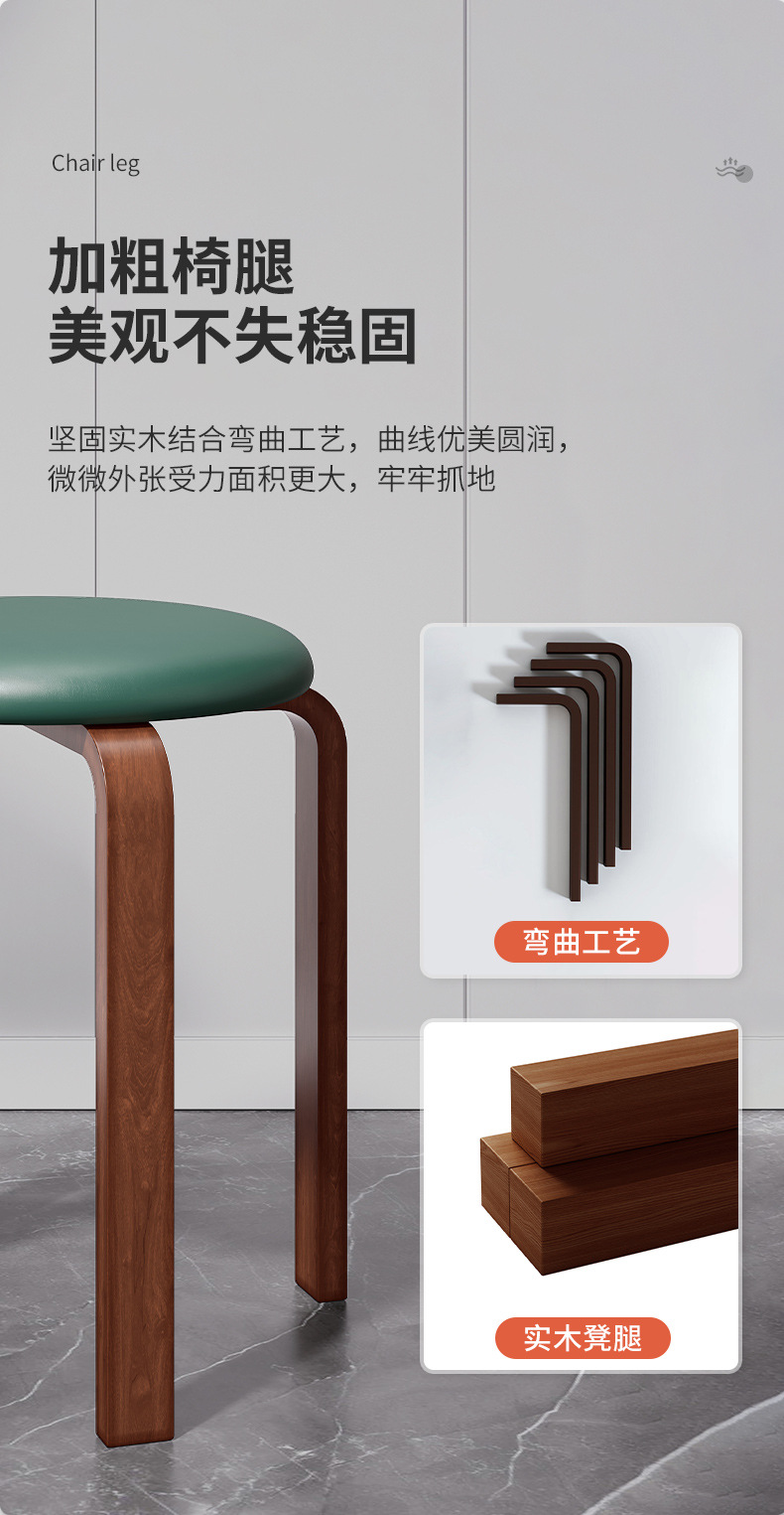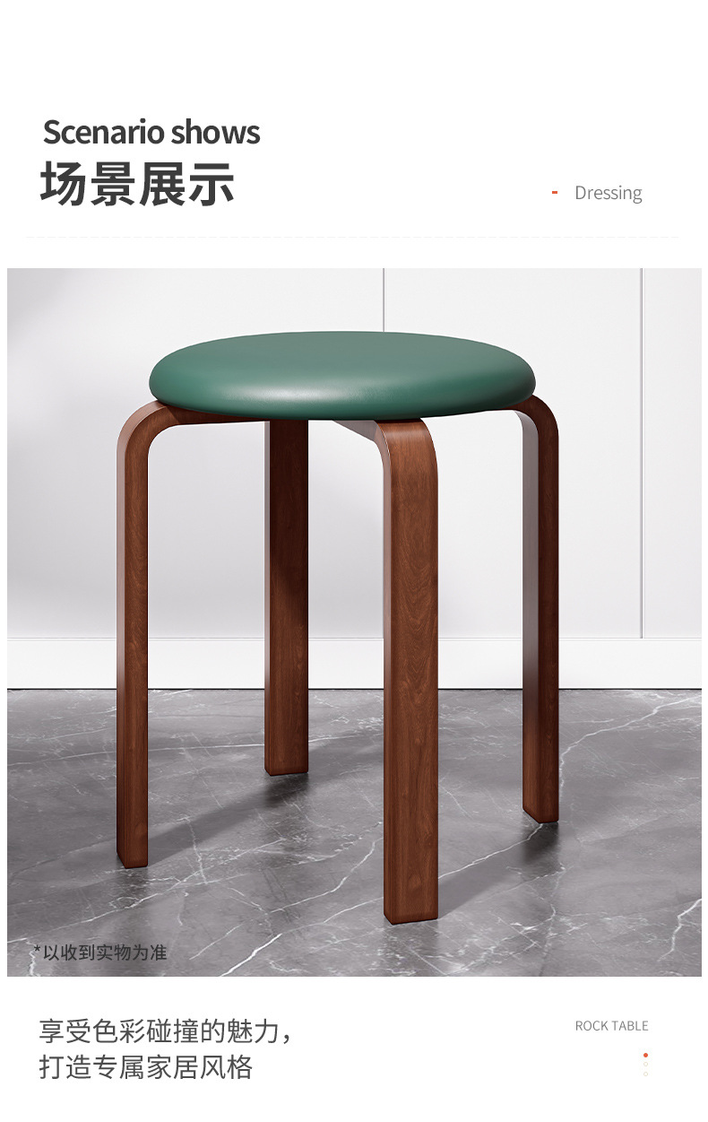 단단한 나무 의자 가구 쌓을 수 있는 부드러운 식사 의자 직물 벤치 간단한 현대 거실 둥근 의자 식당 작은 낮은 의자