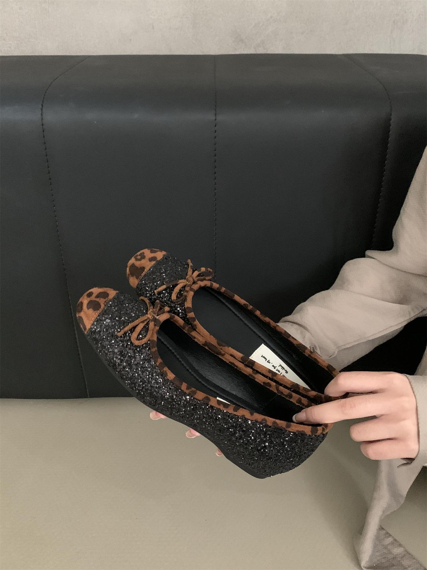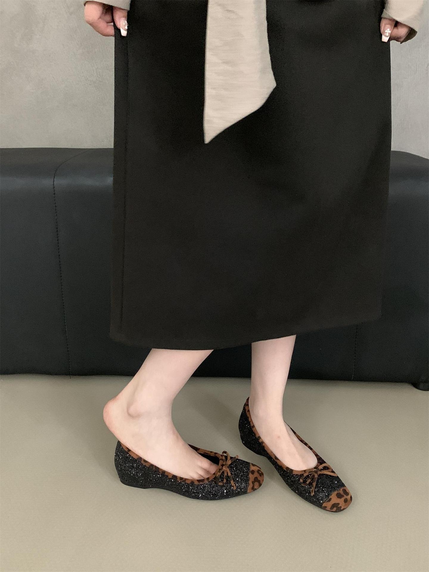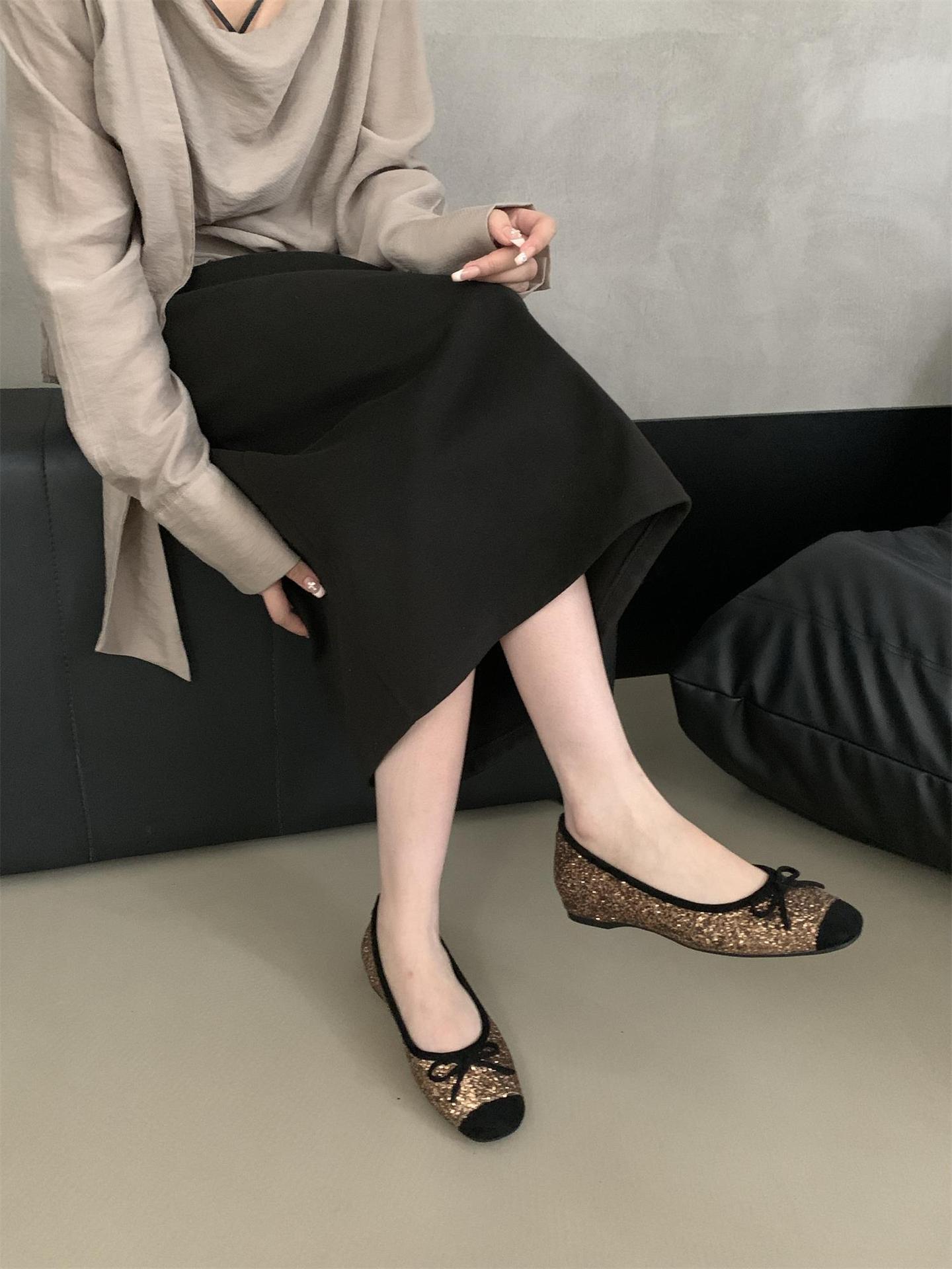프렌치 스타일 반짝이 색상 배색 여성용 신발 2025 신상 리본 키높이 발레 슈즈 이브닝 웨딩 슈즈