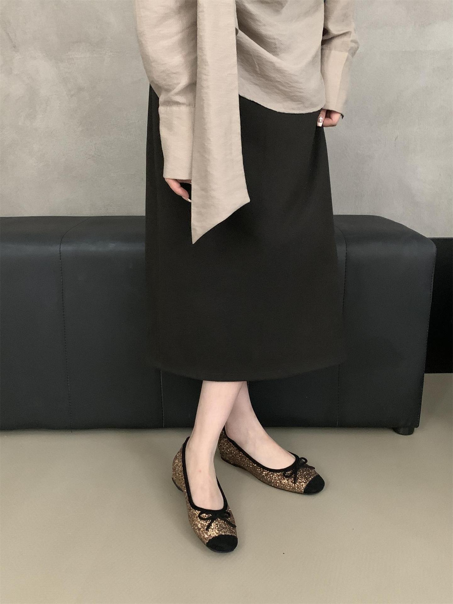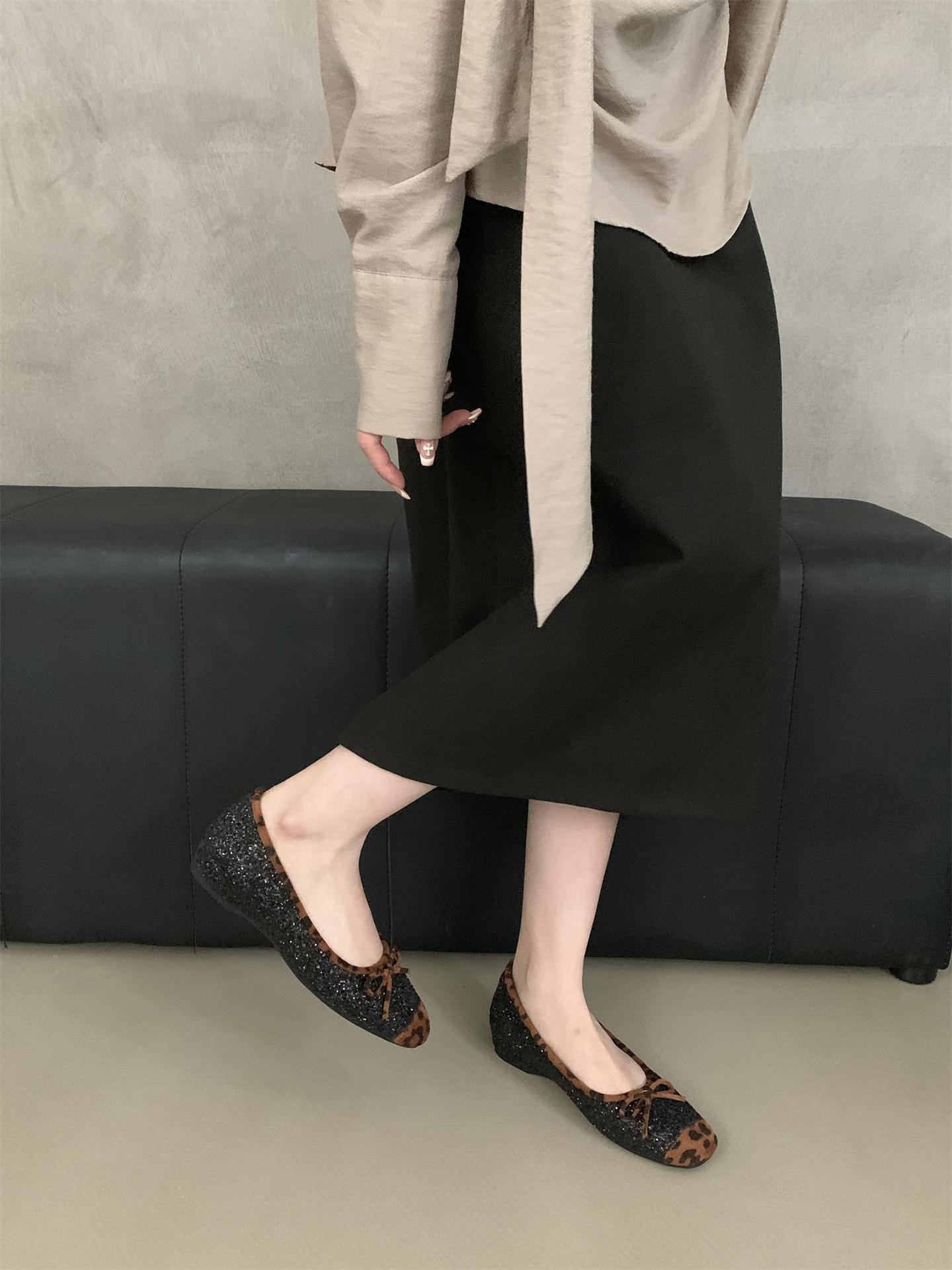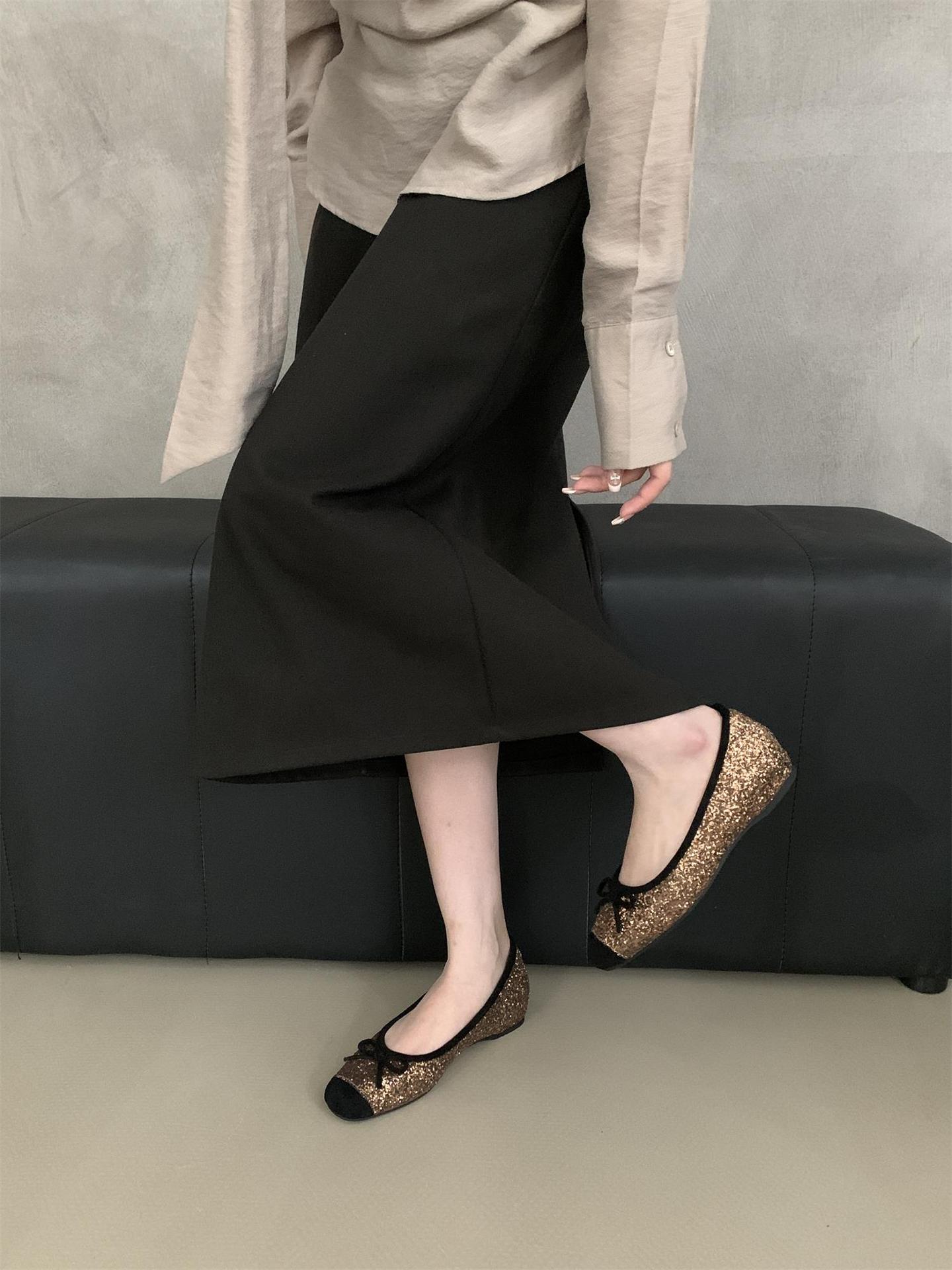 프렌치 스타일 반짝이 색상 배색 여성용 신발 2025 신상 리본 키높이 발레 슈즈 이브닝 웨딩 슈즈