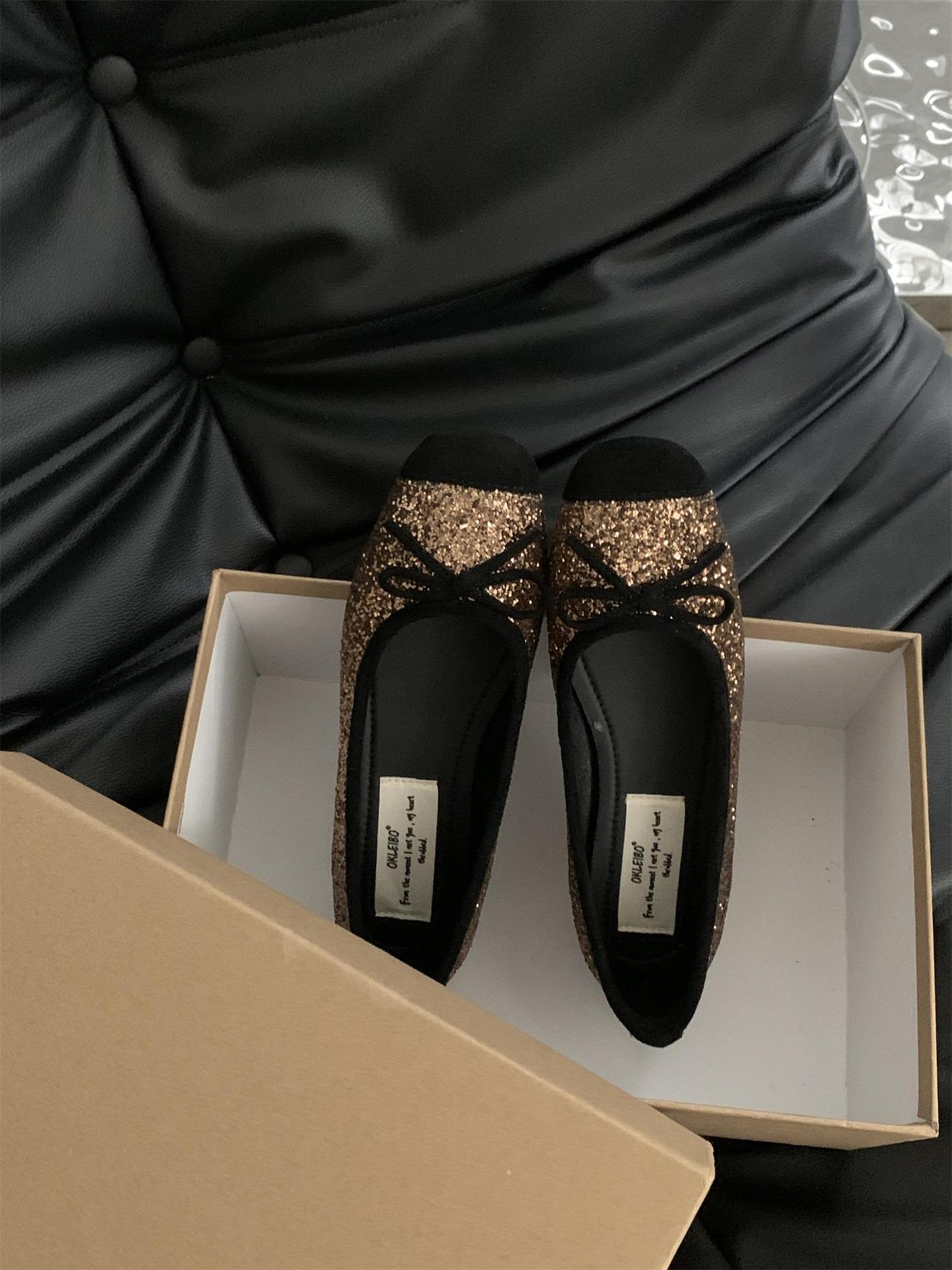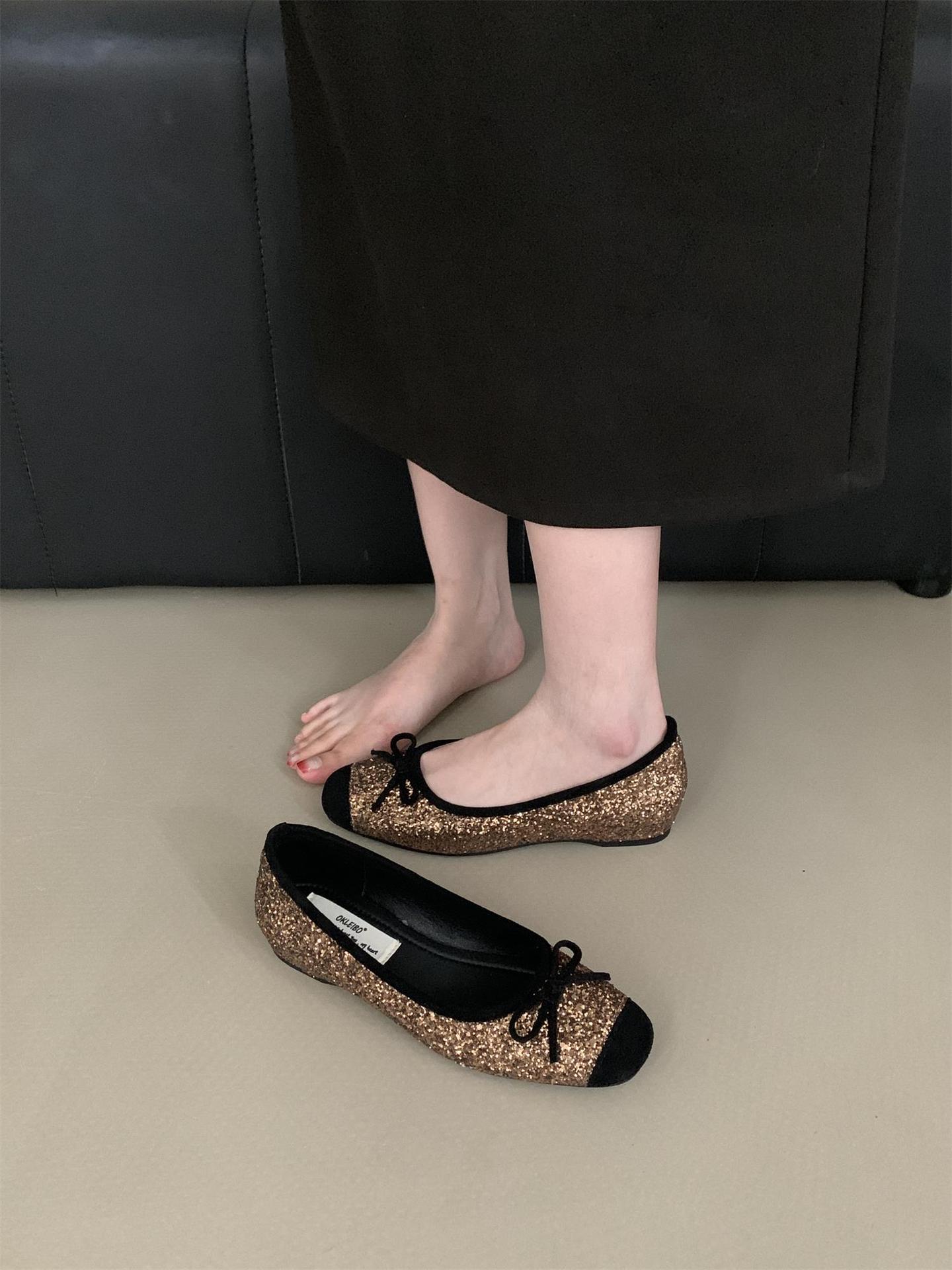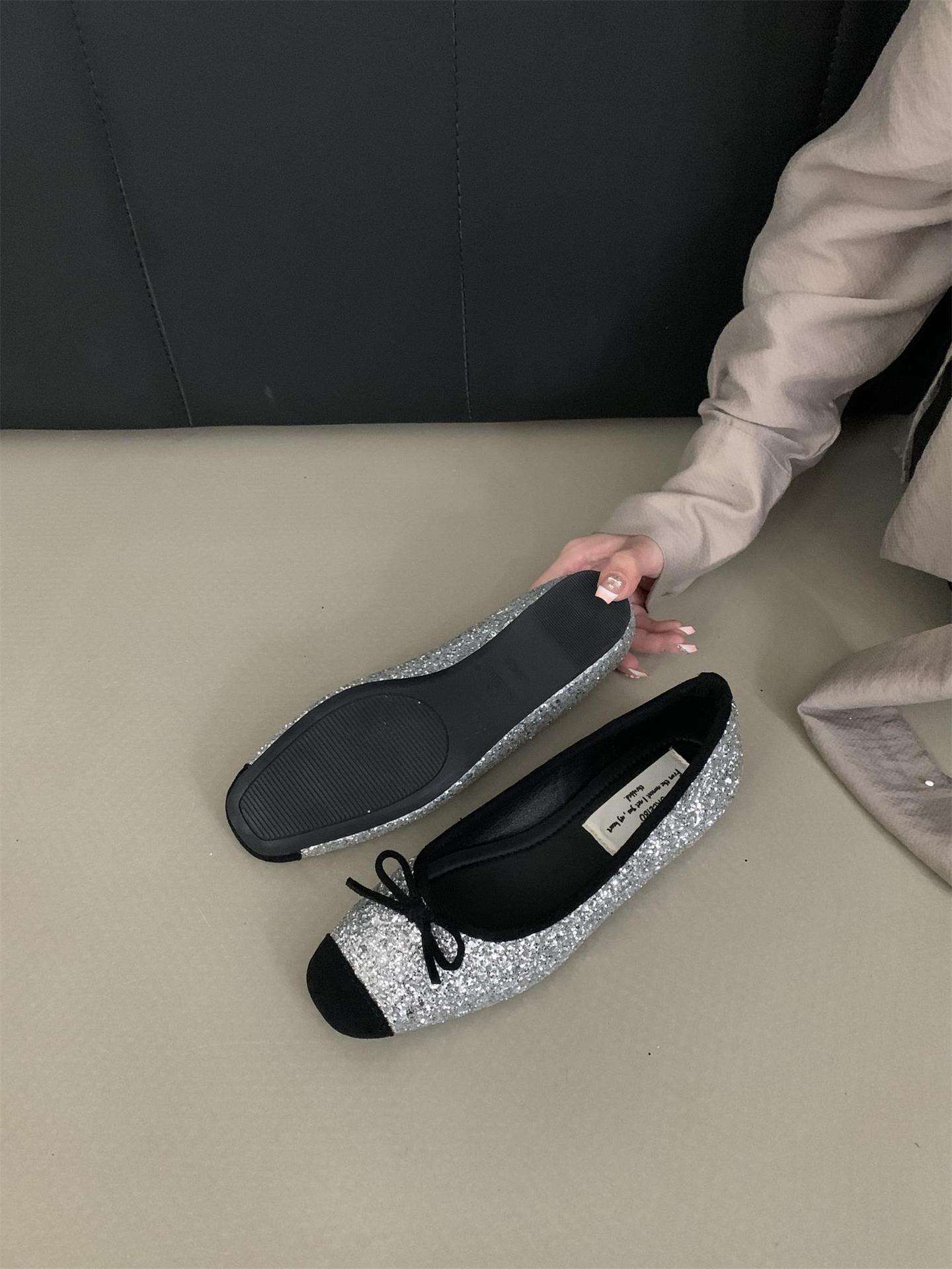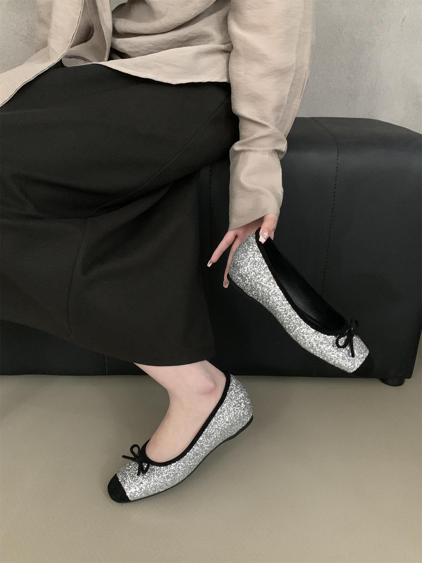 프렌치 스타일 반짝이 색상 배색 여성용 신발 2025 신상 리본 키높이 발레 슈즈 이브닝 웨딩 슈즈스토어 가기
