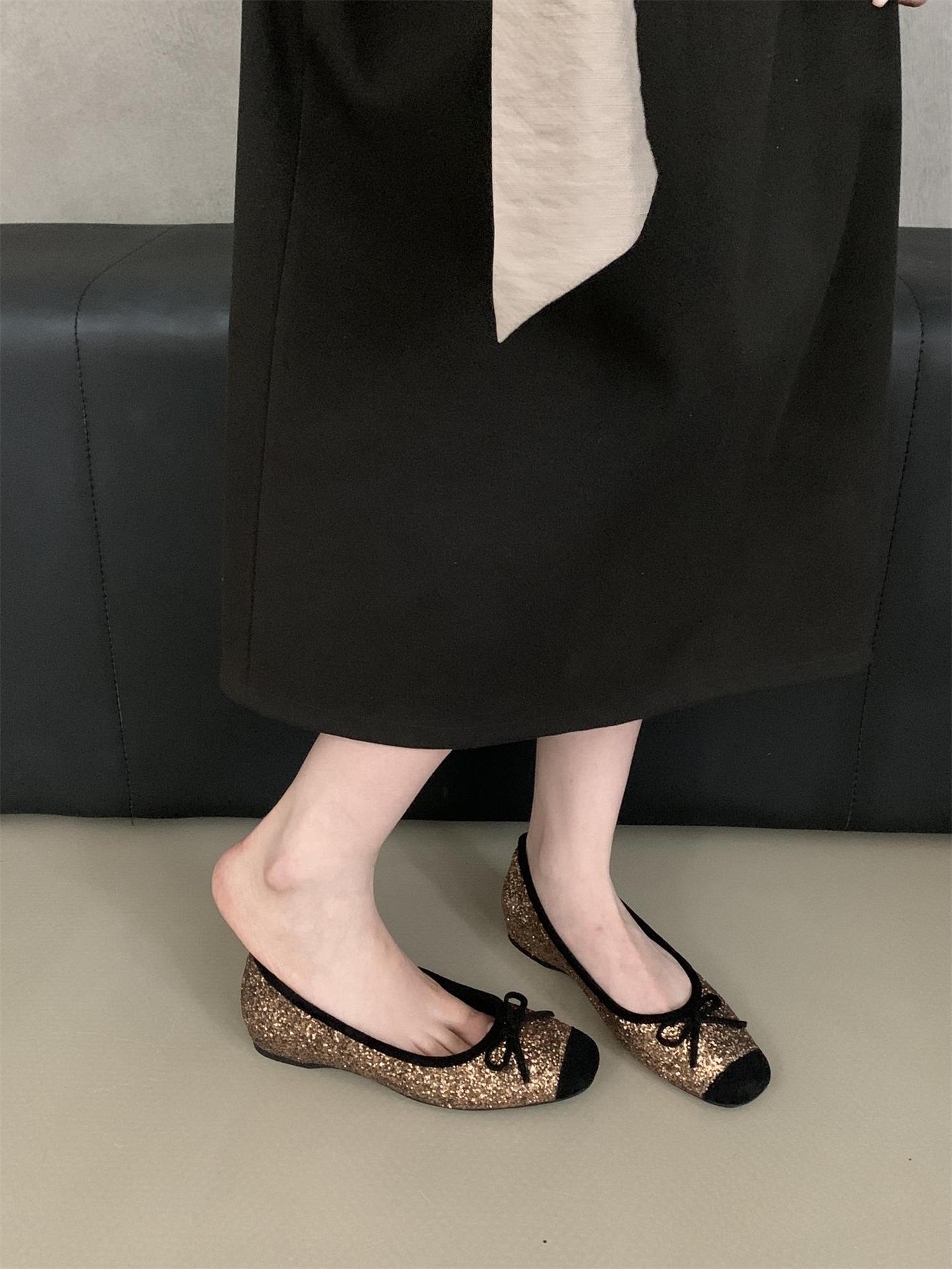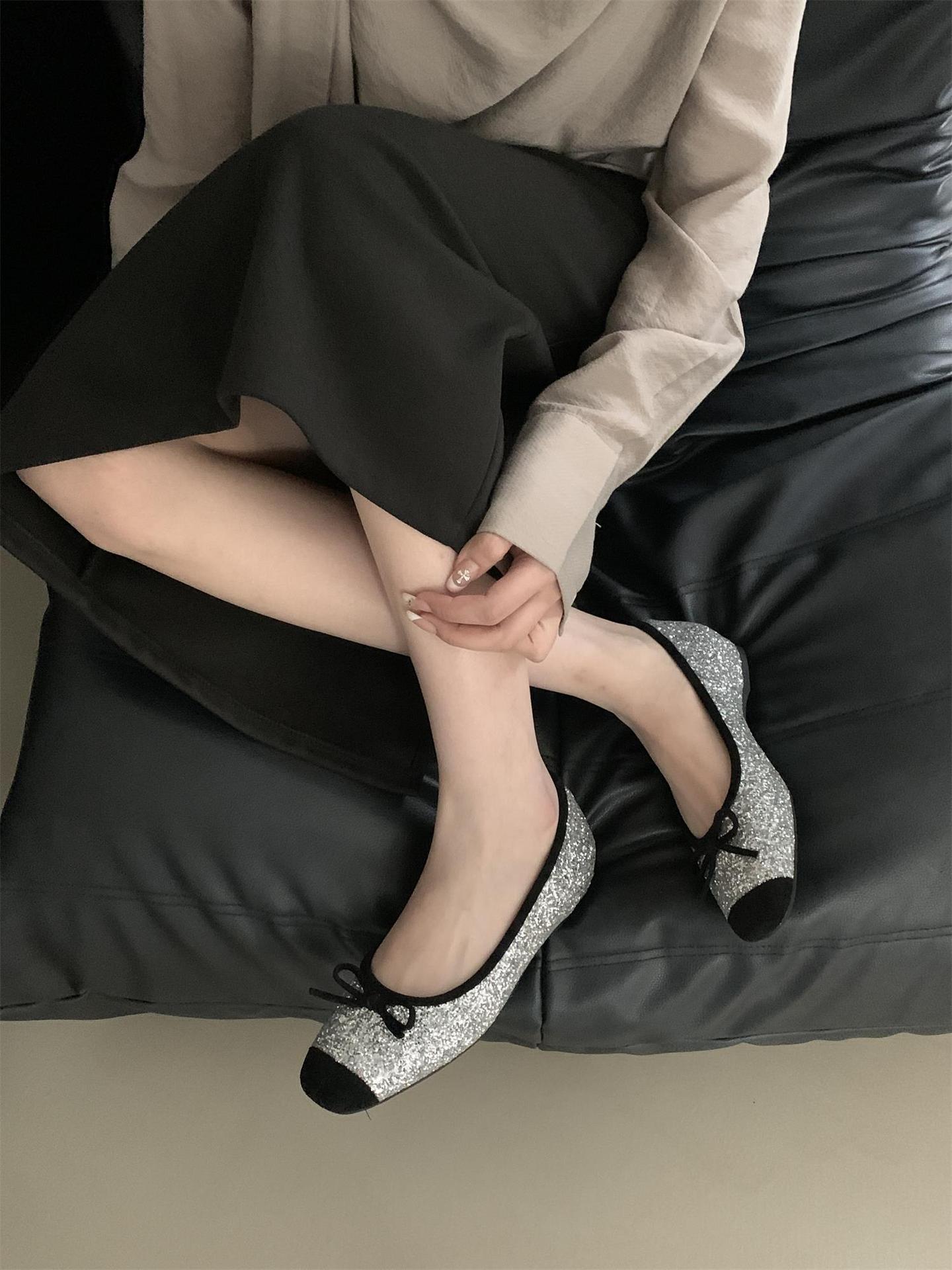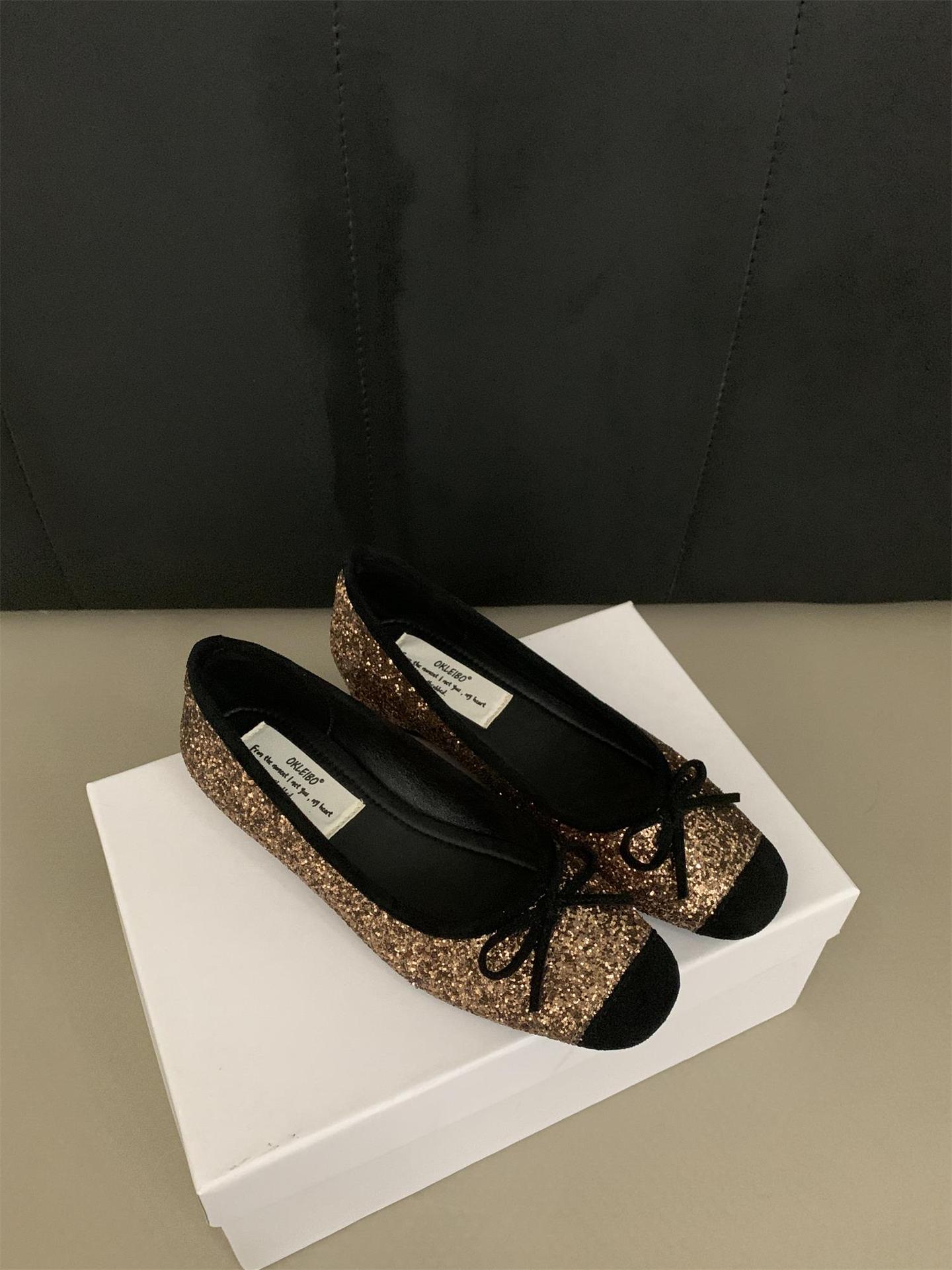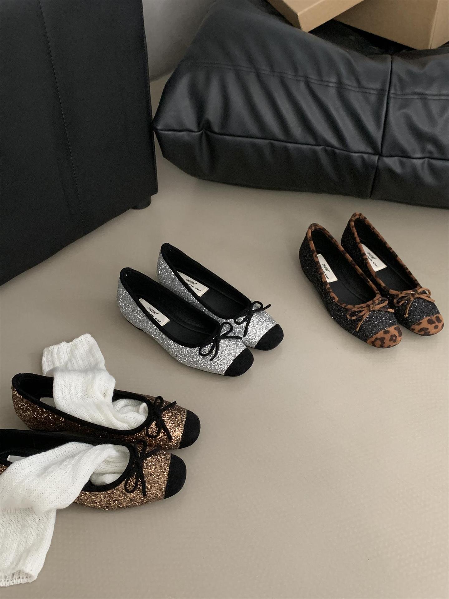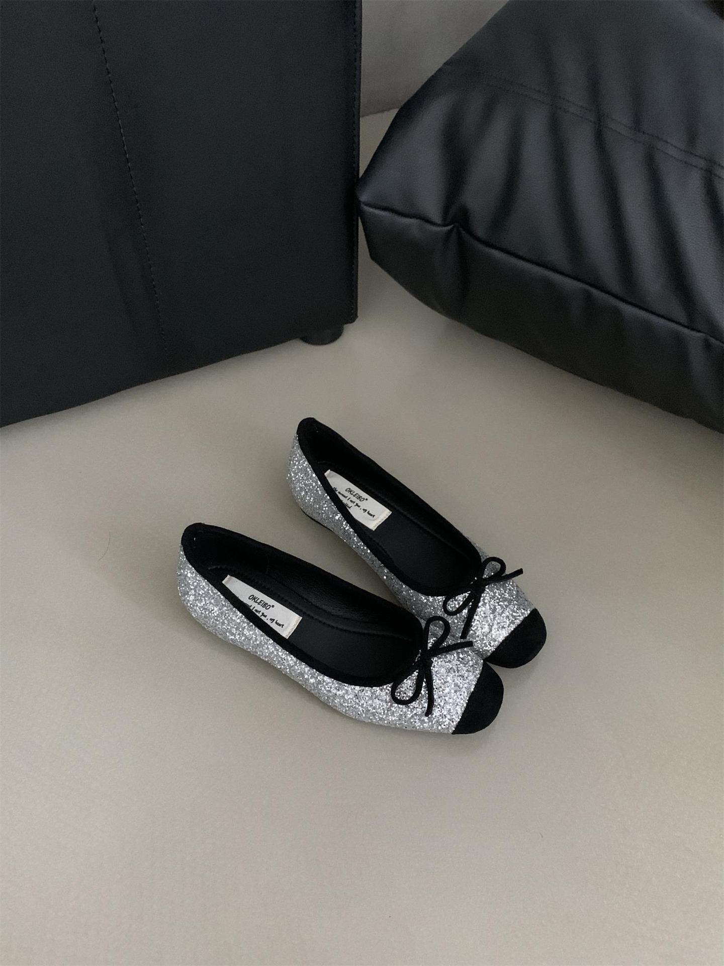 프렌치 스타일 반짝이 색상 배색 여성용 신발 2025 신상 리본 키높이 발레 슈즈 이브닝 웨딩 슈즈스토어 가기