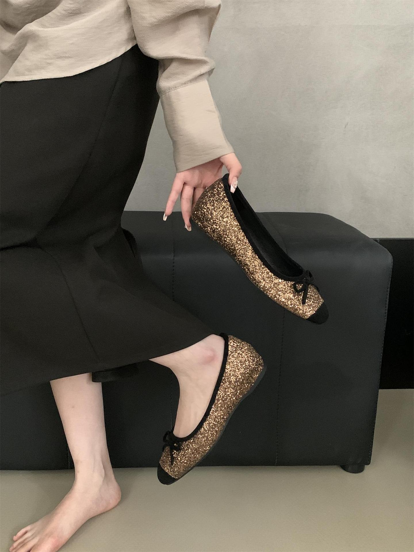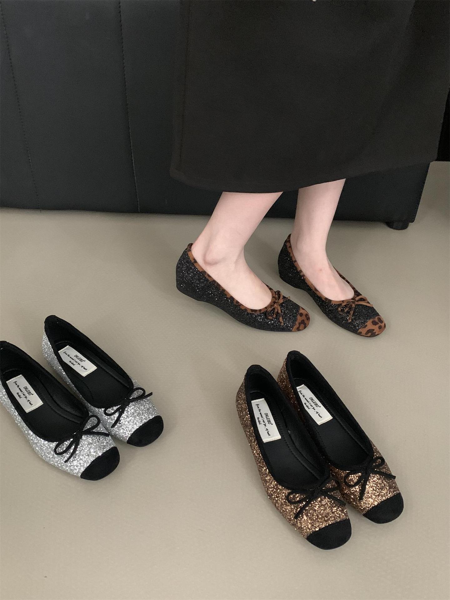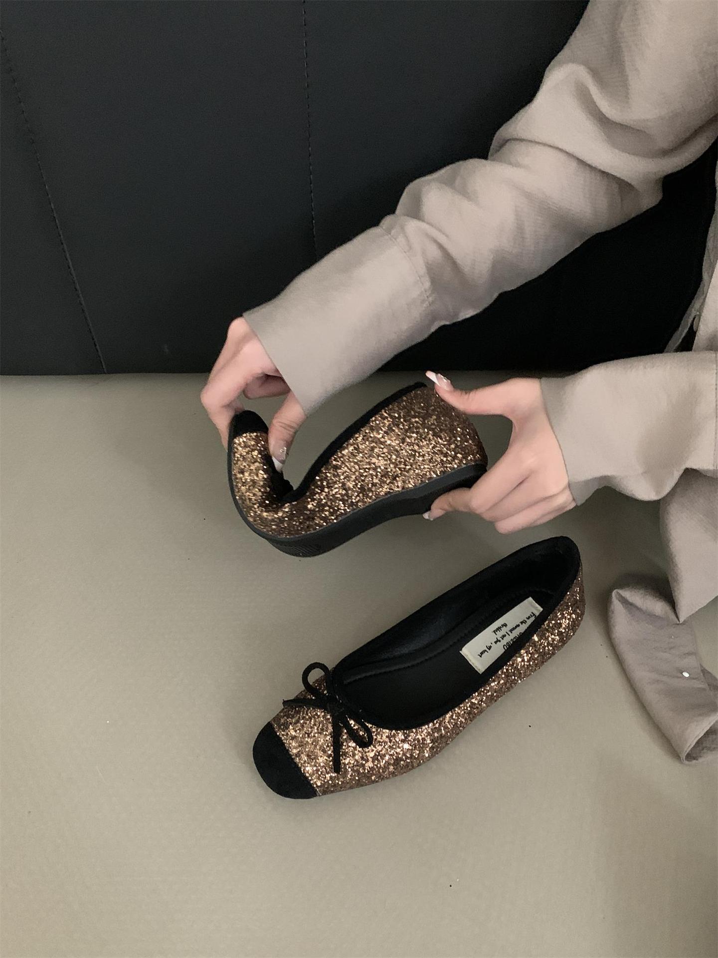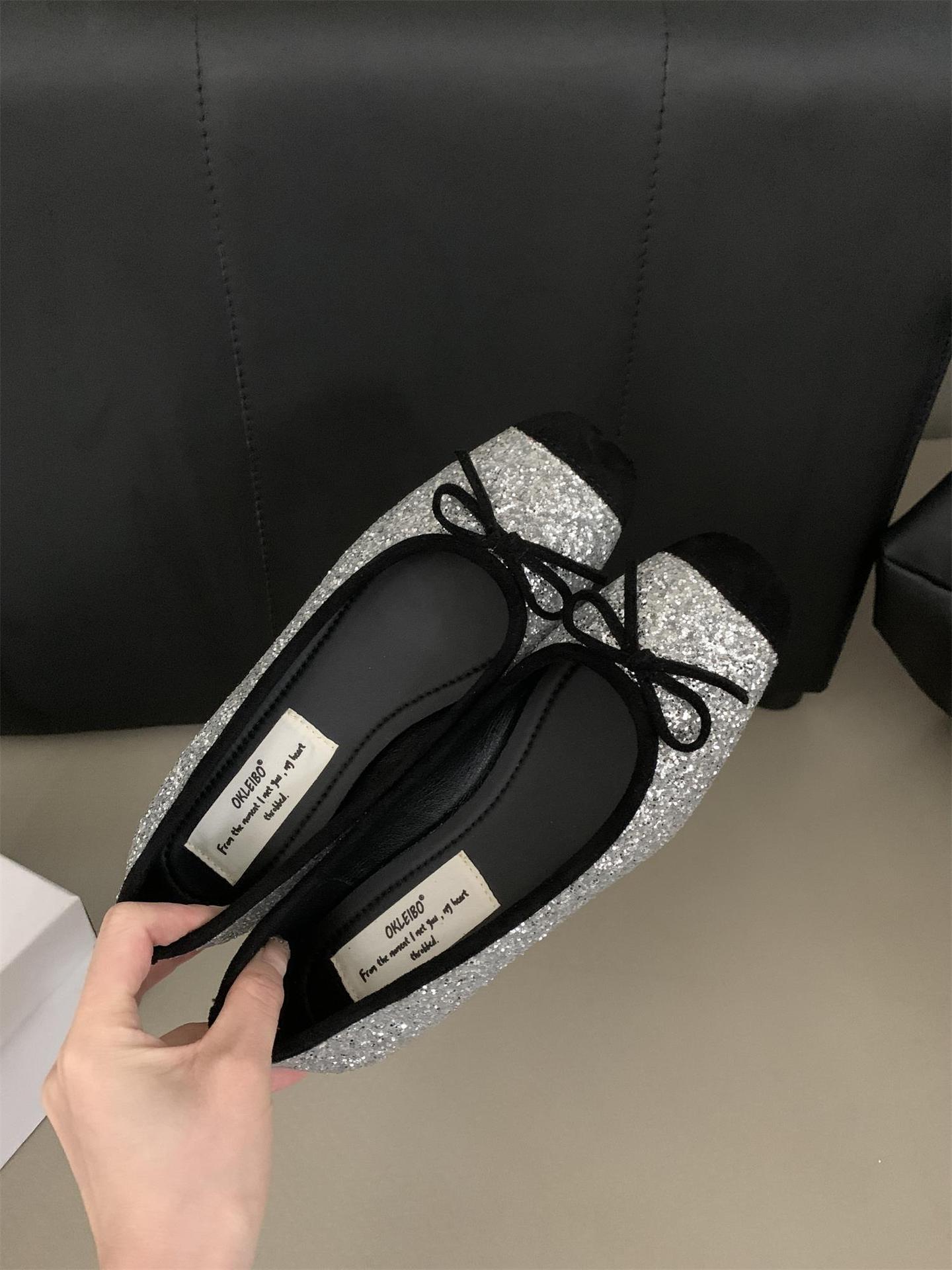 프렌치 스타일 반짝이 색상 배색 여성용 신발 2025 신상 리본 키높이 발레 슈즈 이브닝 웨딩 슈즈스토어 가기