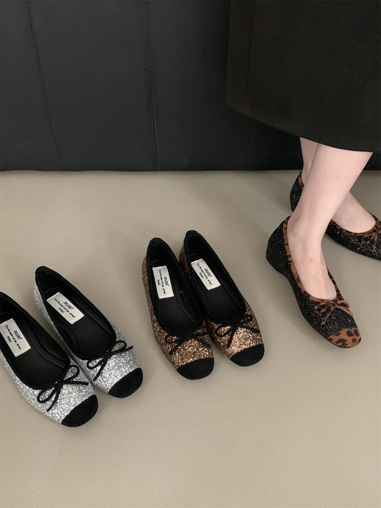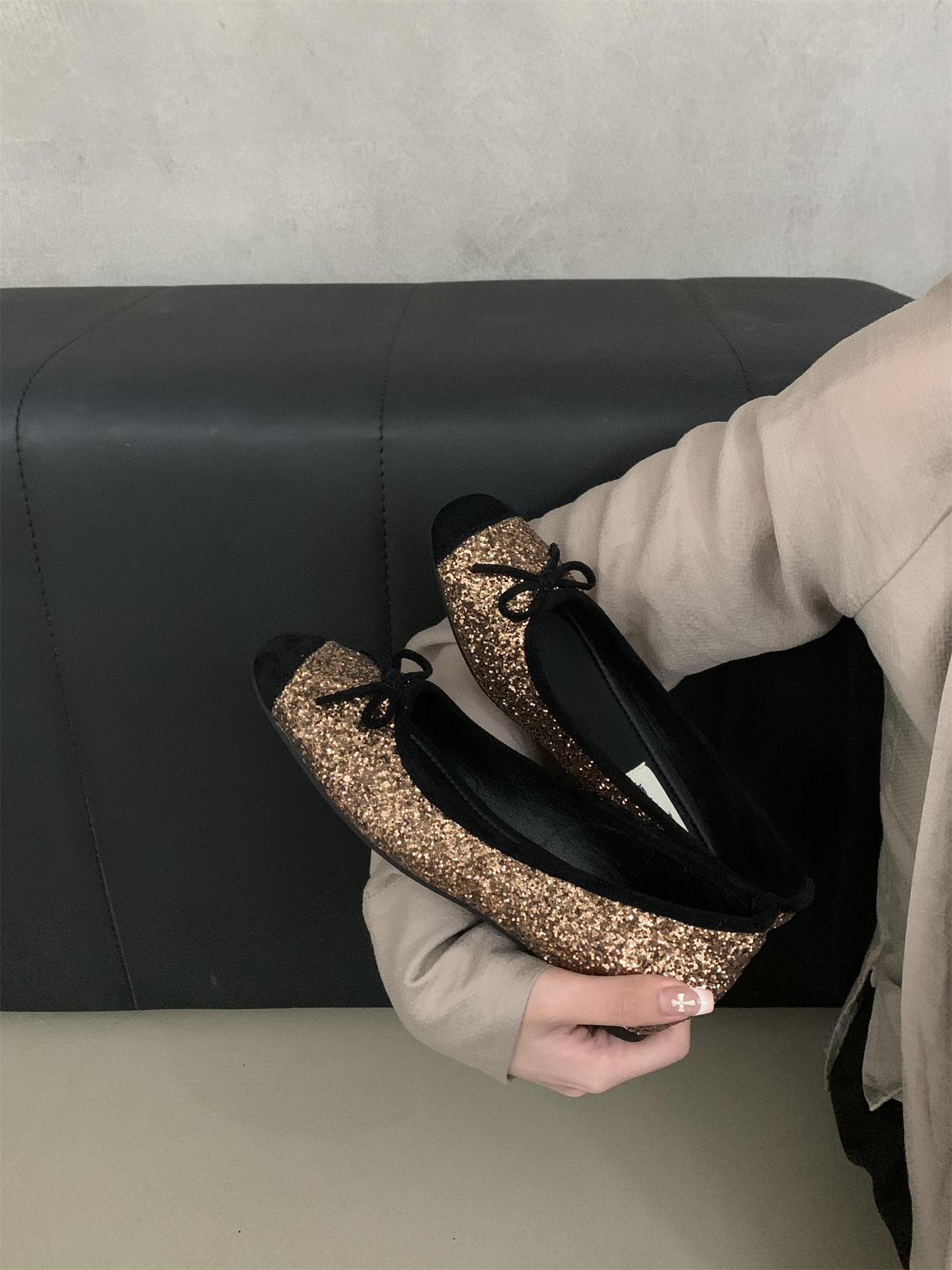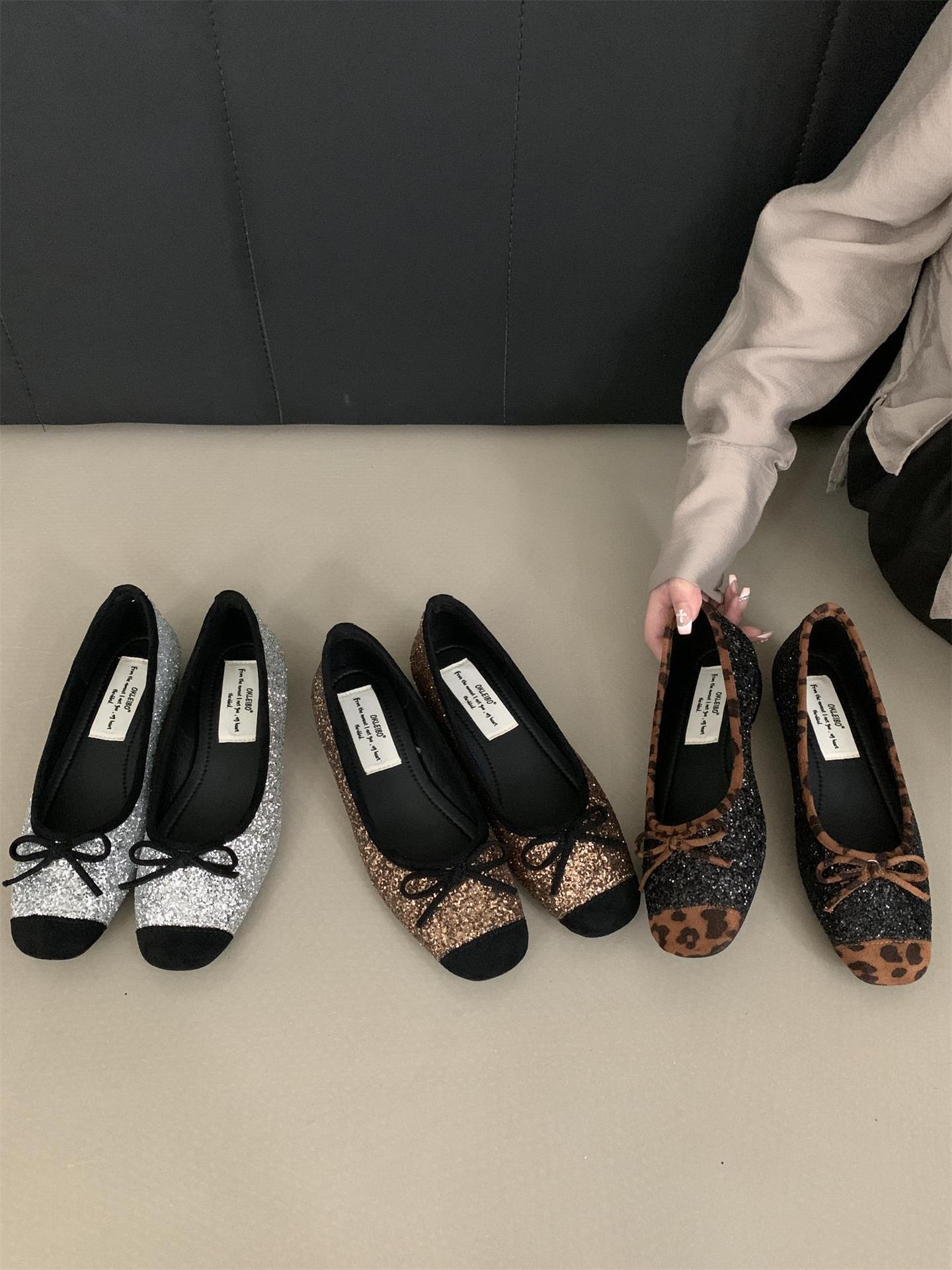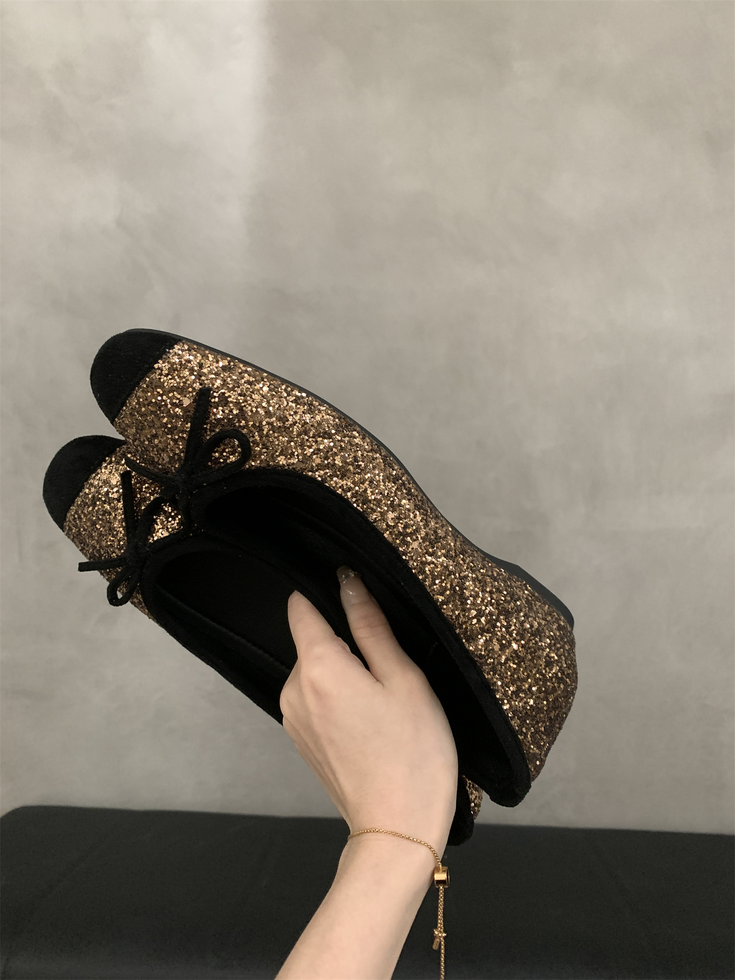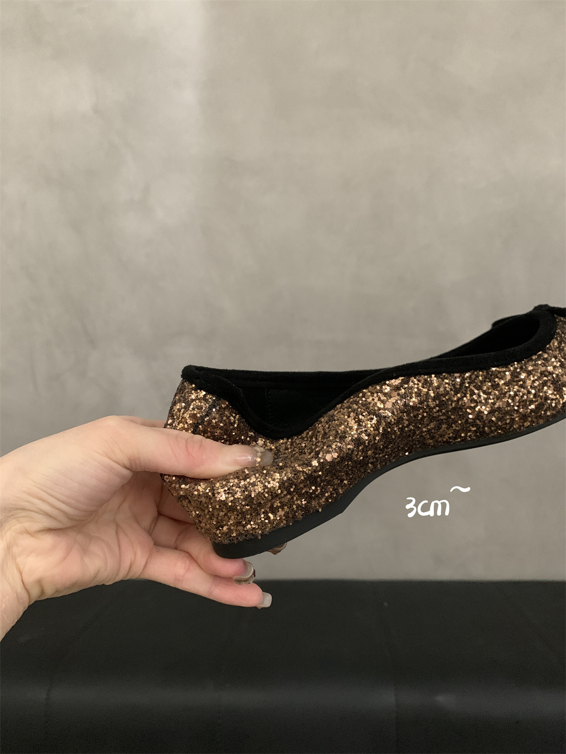 프렌치 스타일 반짝이 색상 배색 여성용 신발 2025 신상 리본 키높이 발레 슈즈 이브닝 웨딩 슈즈스토어 가기