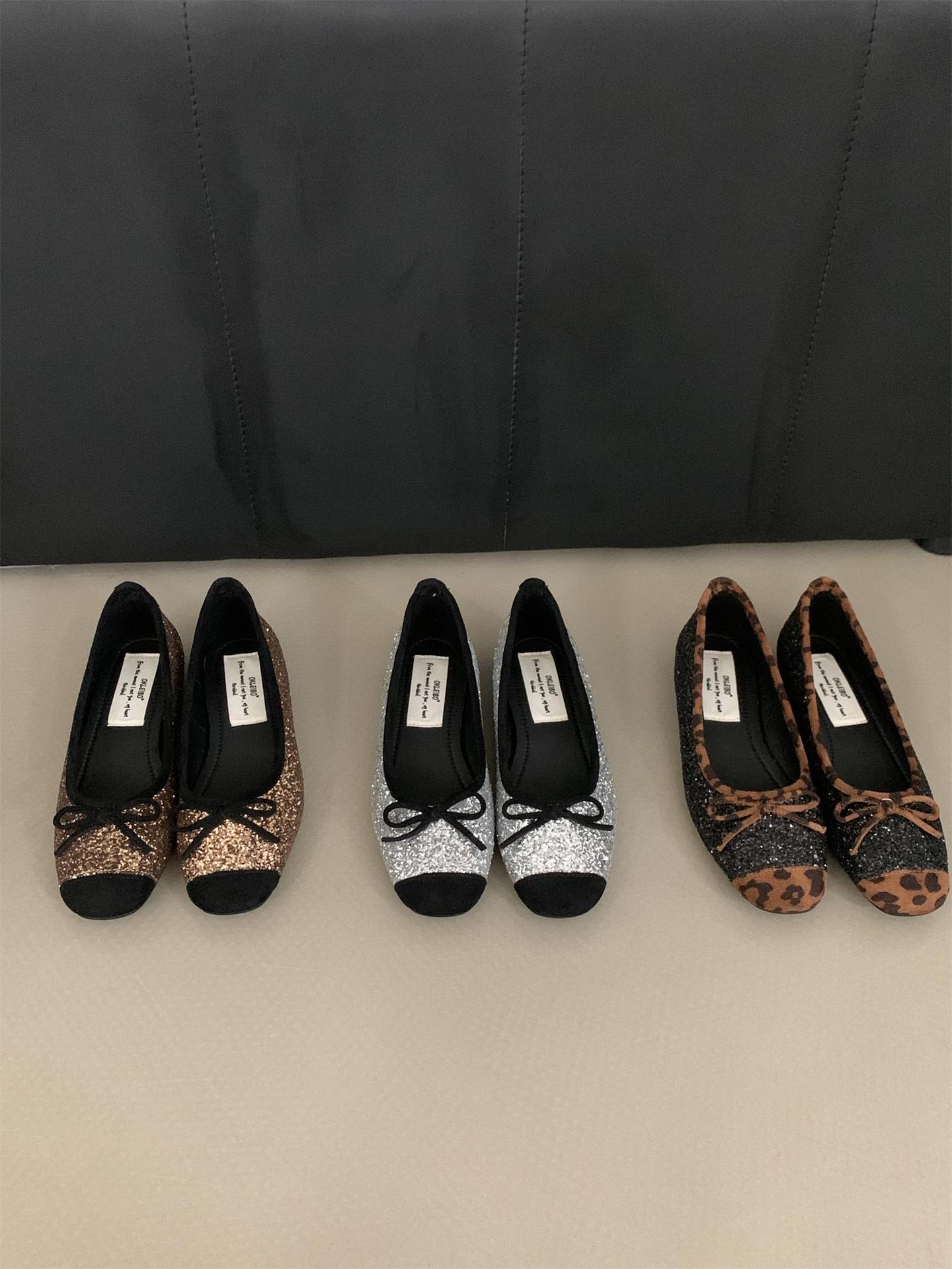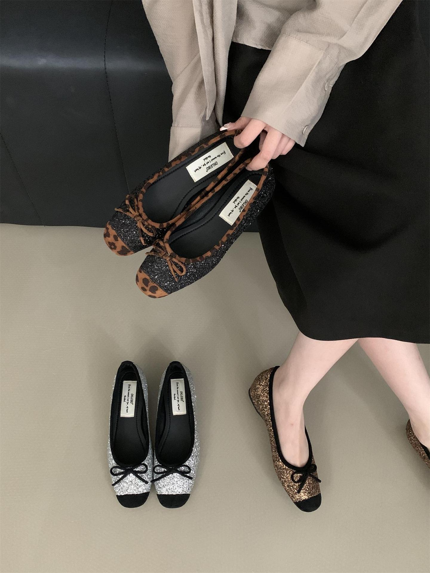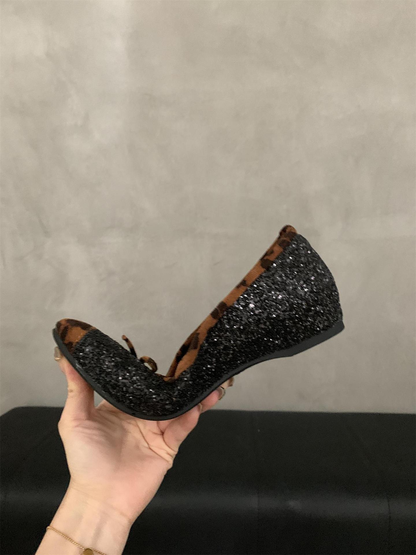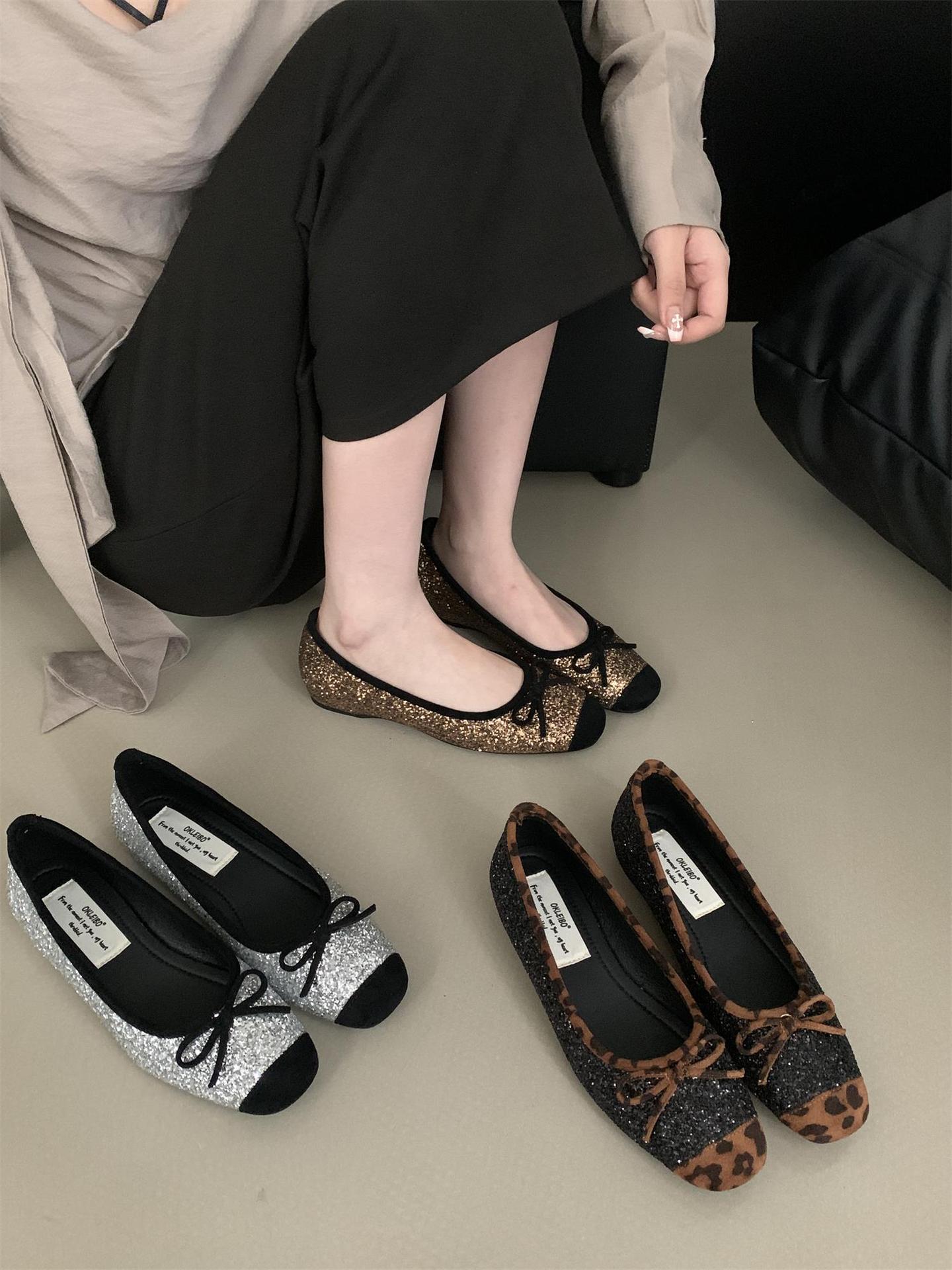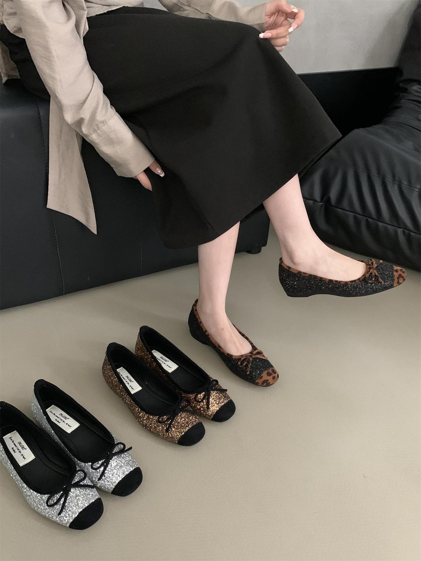 프렌치 스타일 반짝이 색상 배색 여성용 신발 2025 신상 리본 키높이 발레 슈즈 이브닝 웨딩 슈즈스토어 가기