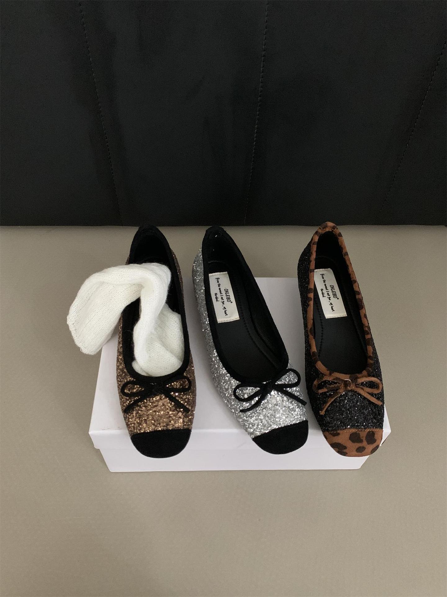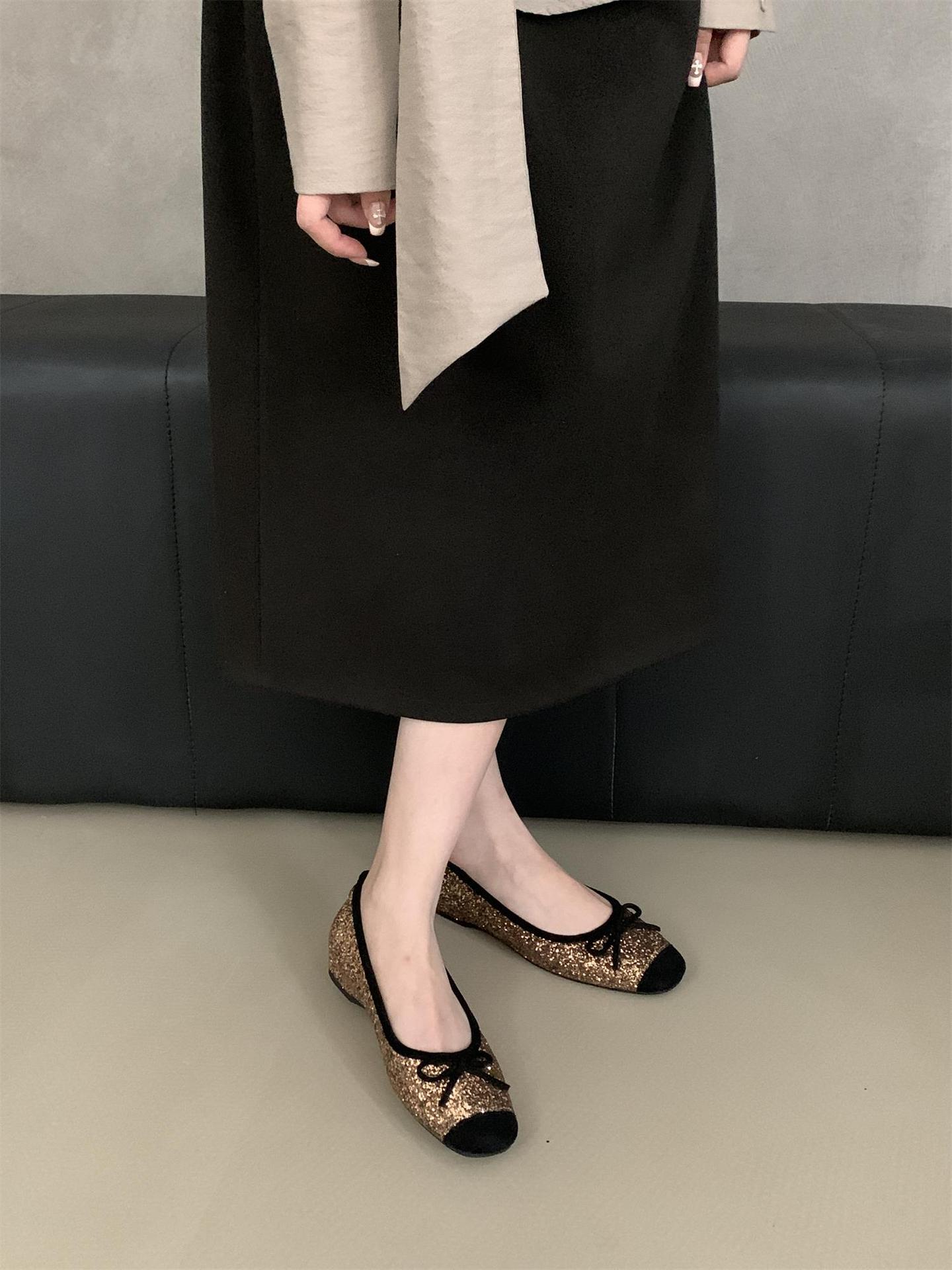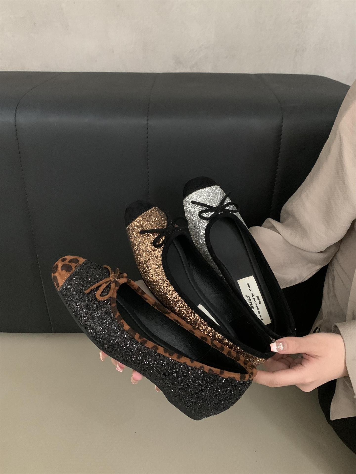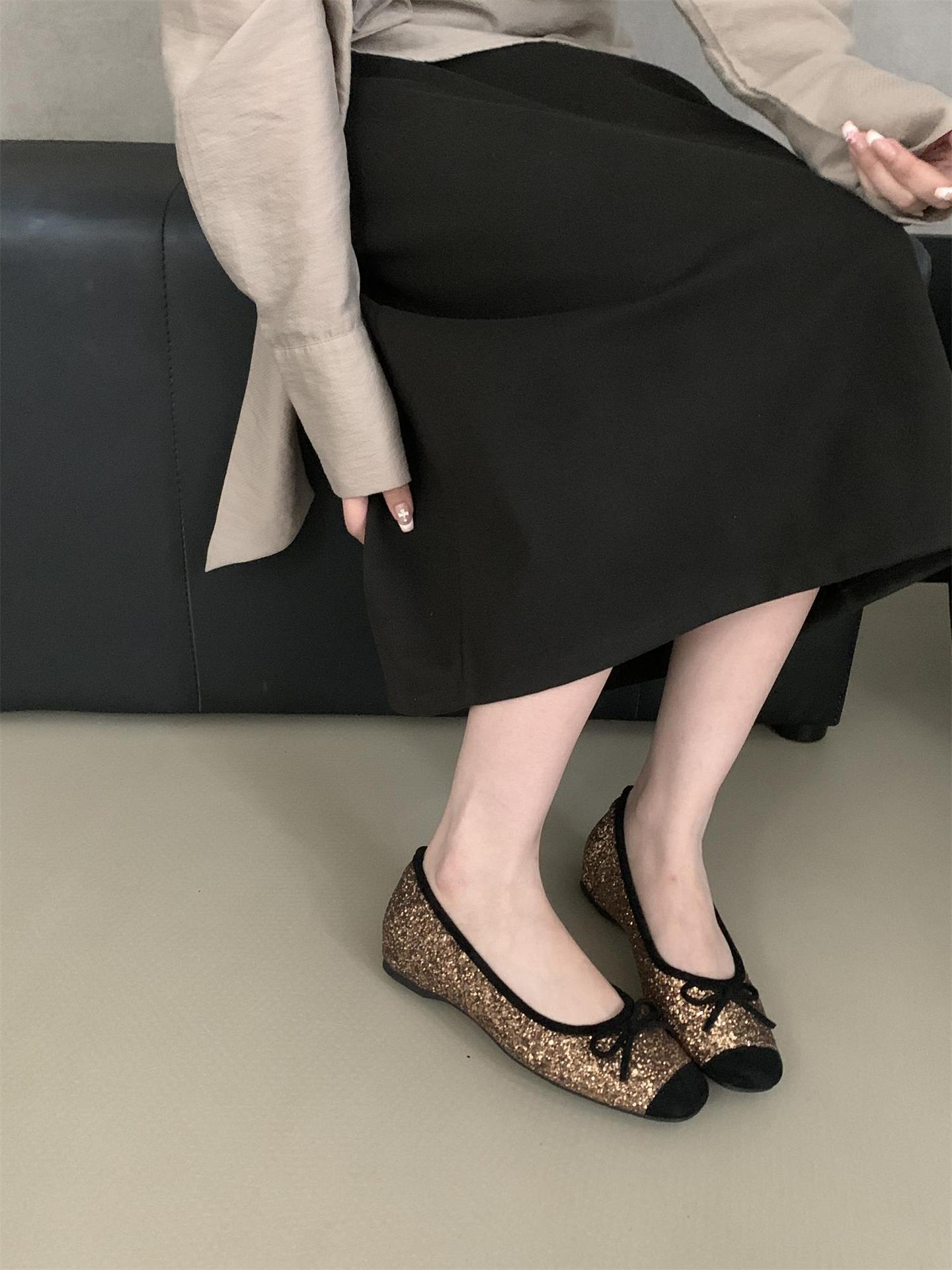 프렌치 스타일 반짝이 색상 배색 여성용 신발 2025 신상 리본 키높이 발레 슈즈 이브닝 웨딩 슈즈스토어 가기