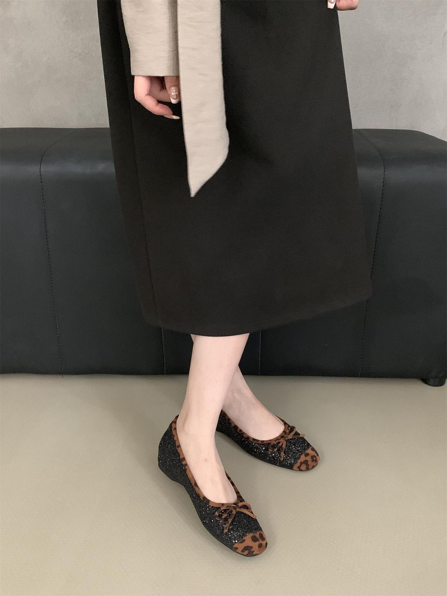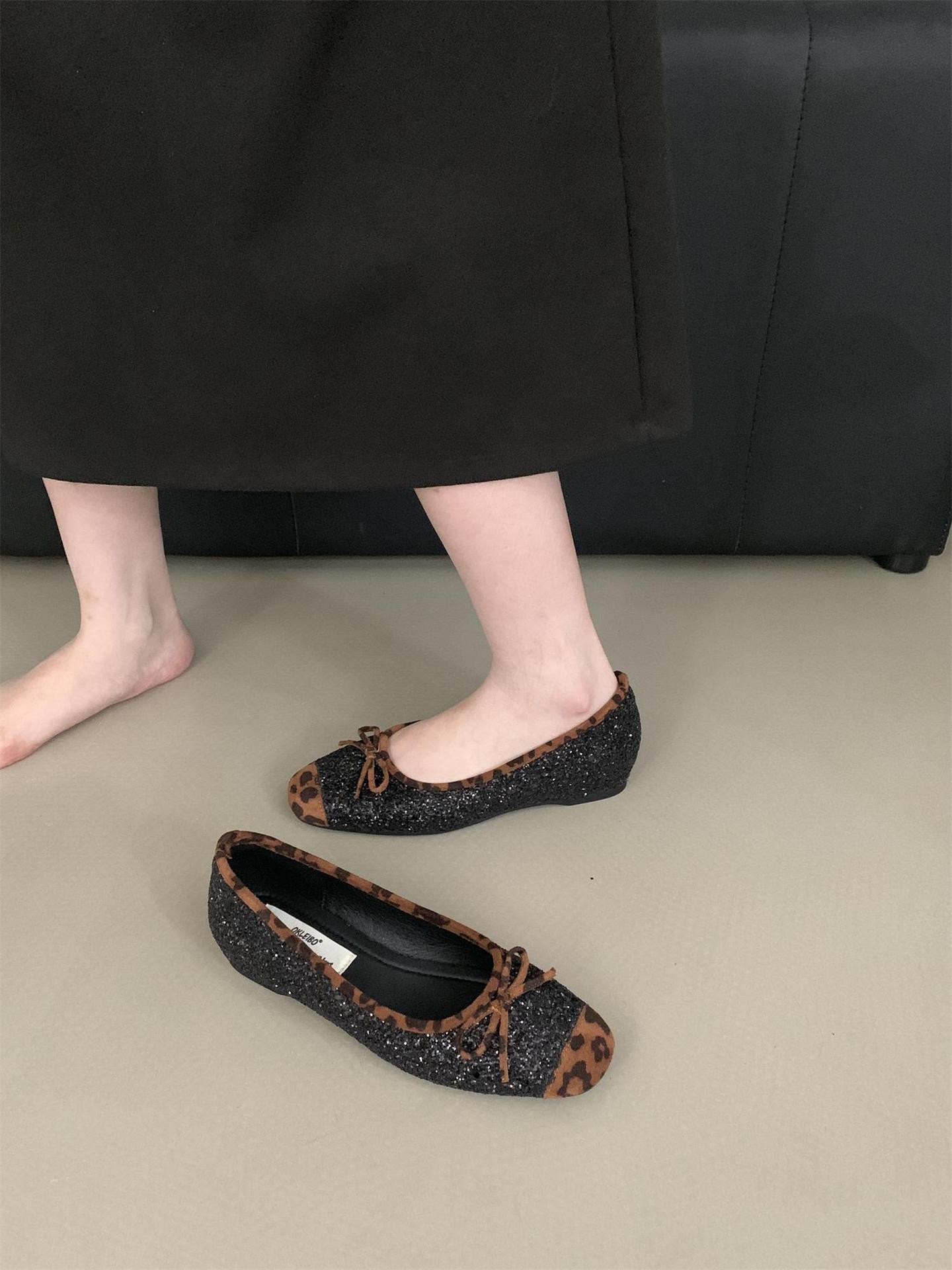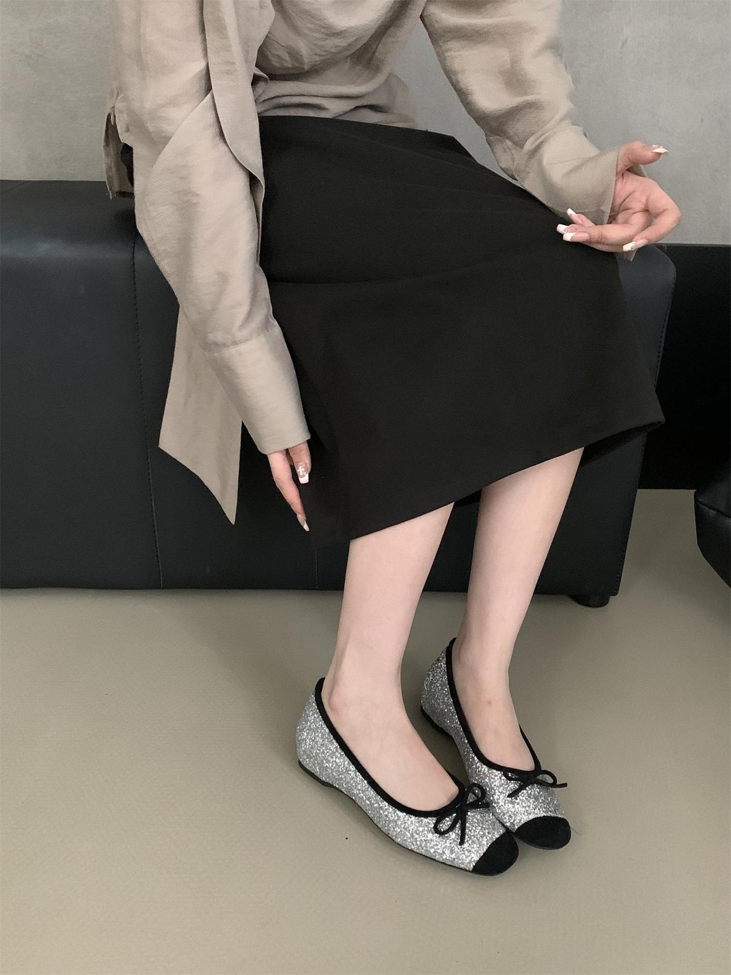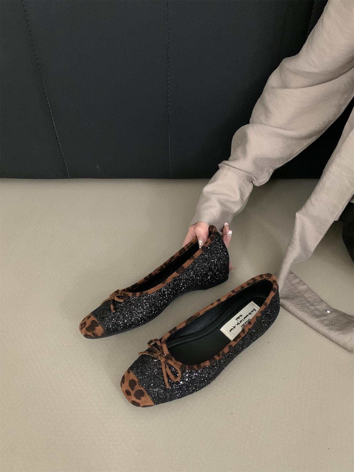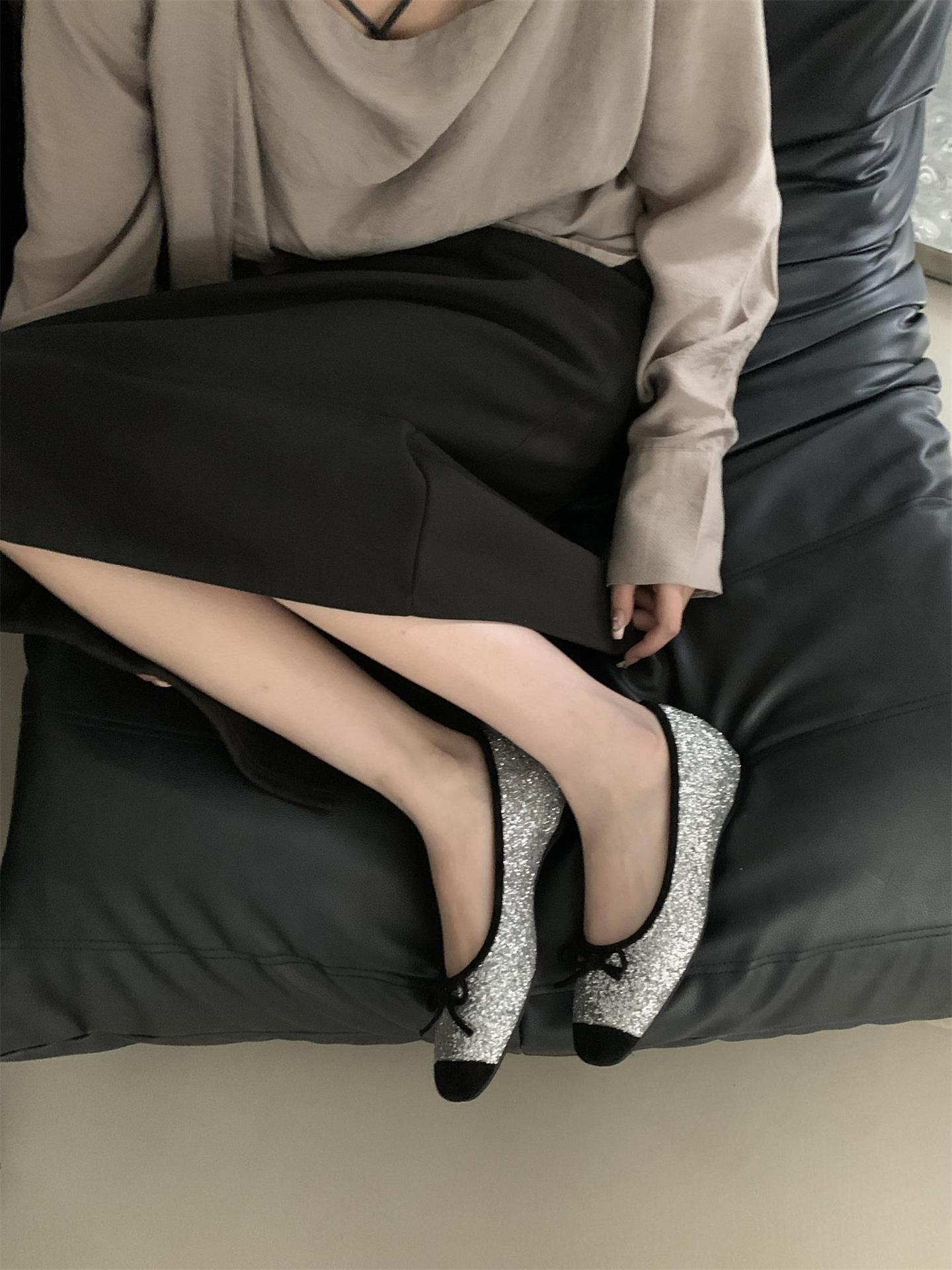 프렌치 스타일 반짝이 색상 배색 여성용 신발 2025 신상 리본 키높이 발레 슈즈 이브닝 웨딩 슈즈스토어 가기