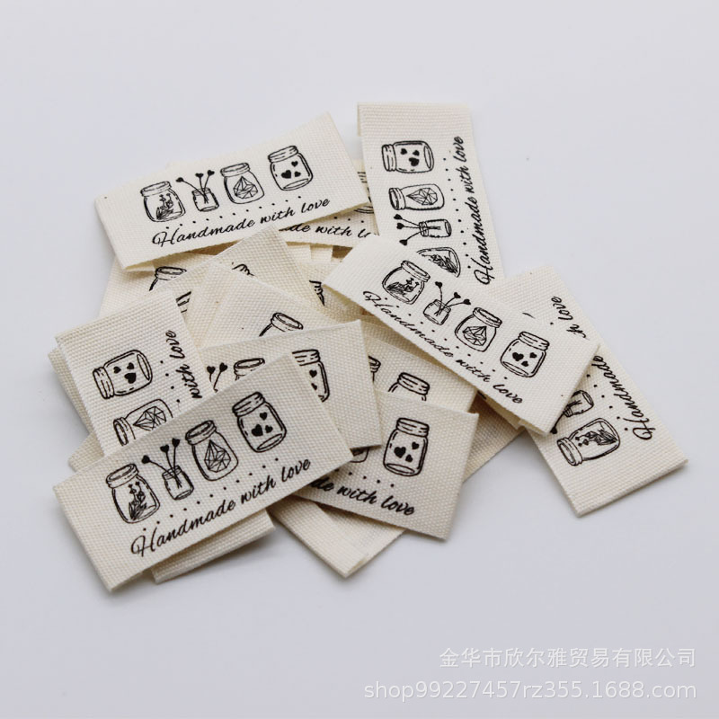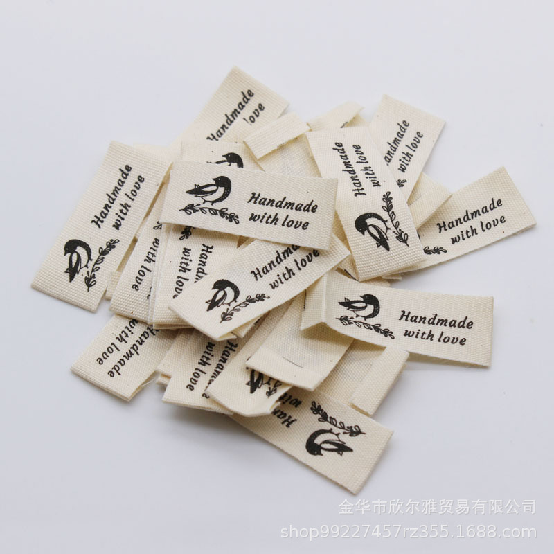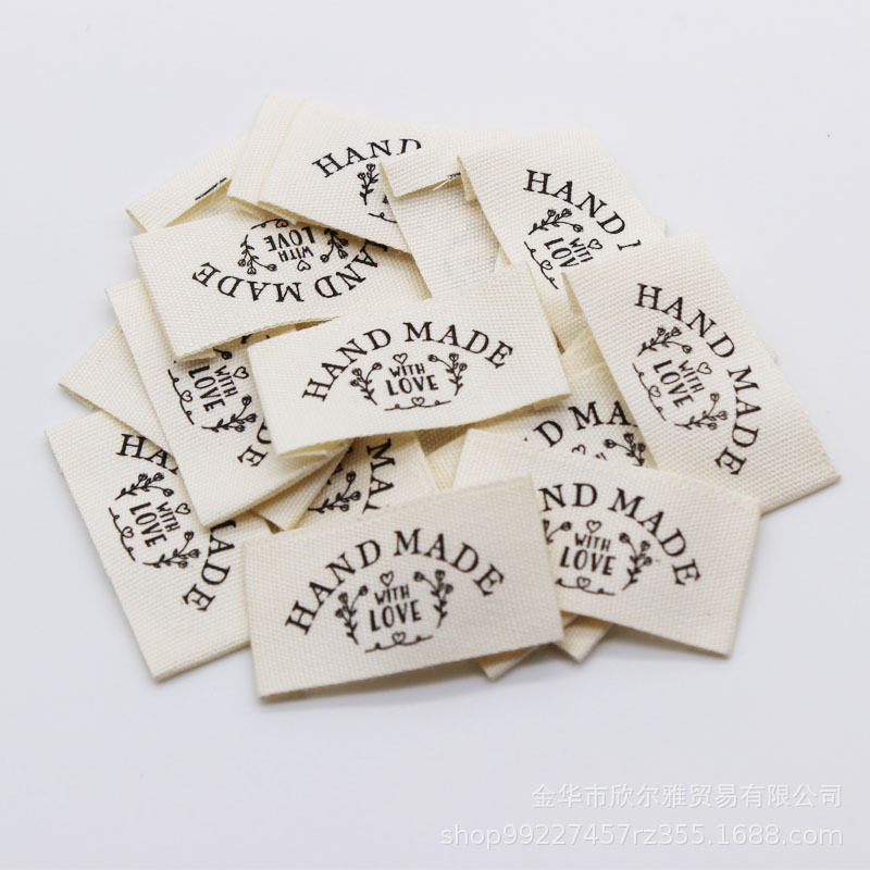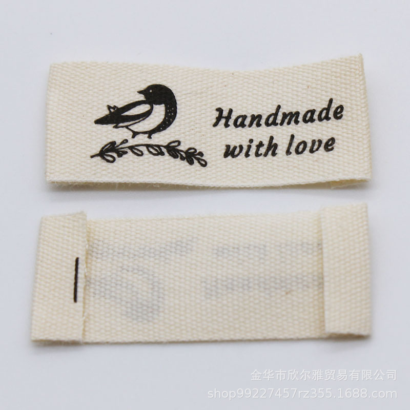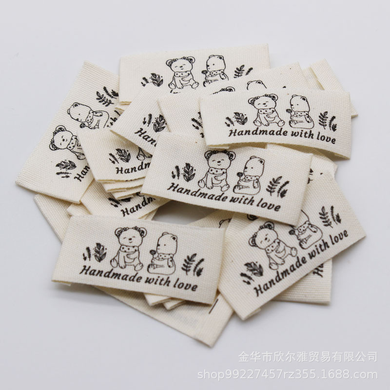 handmade本白纯棉印标现货柔软棉带领标商标童装手工品玩具标签