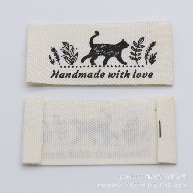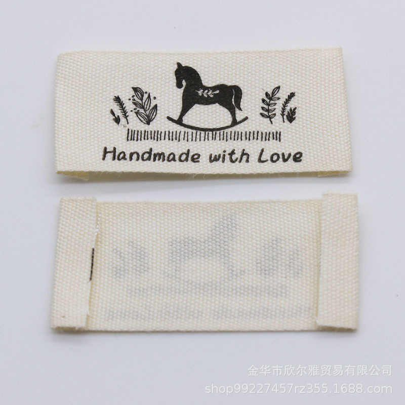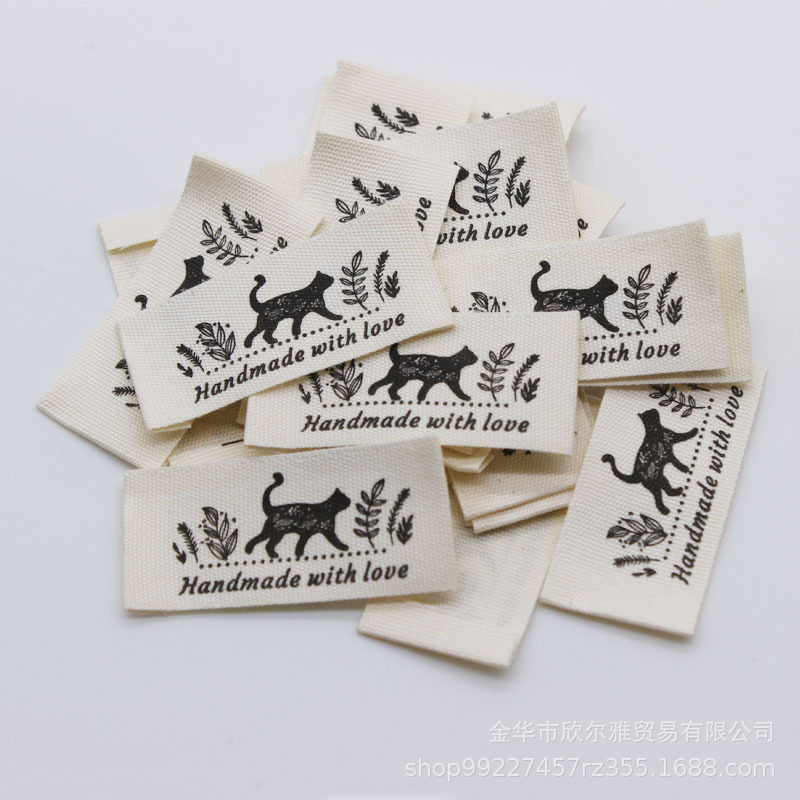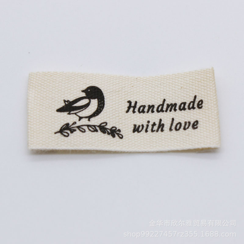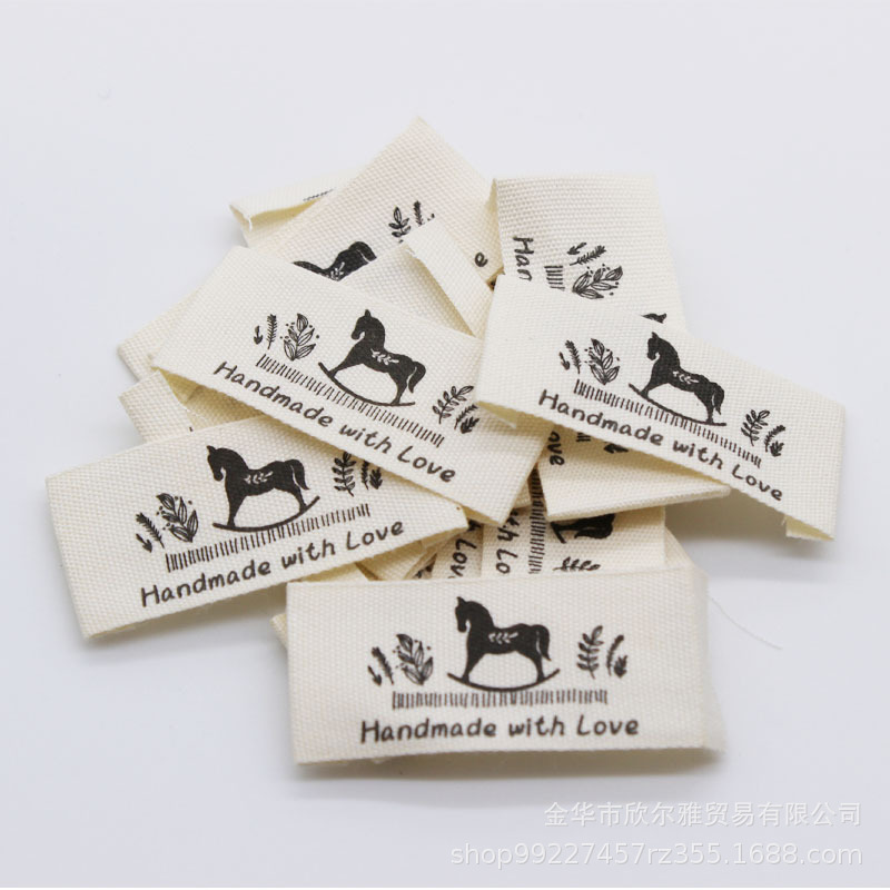 handmade本白纯棉印标现货柔软棉带领标商标童装手工品玩具标签
