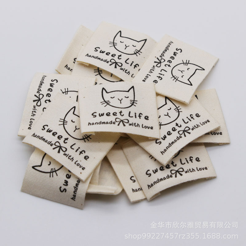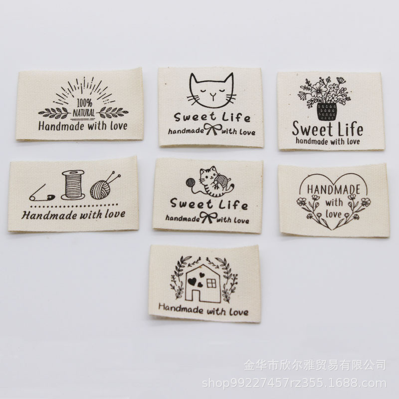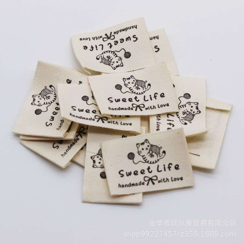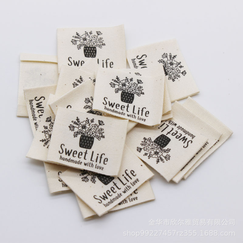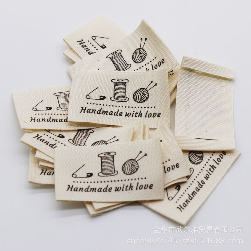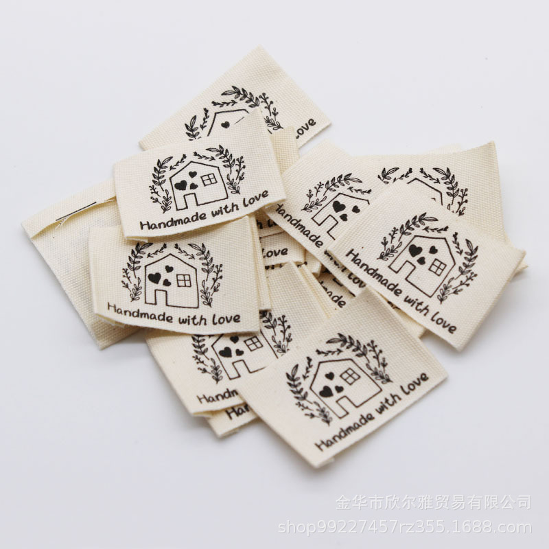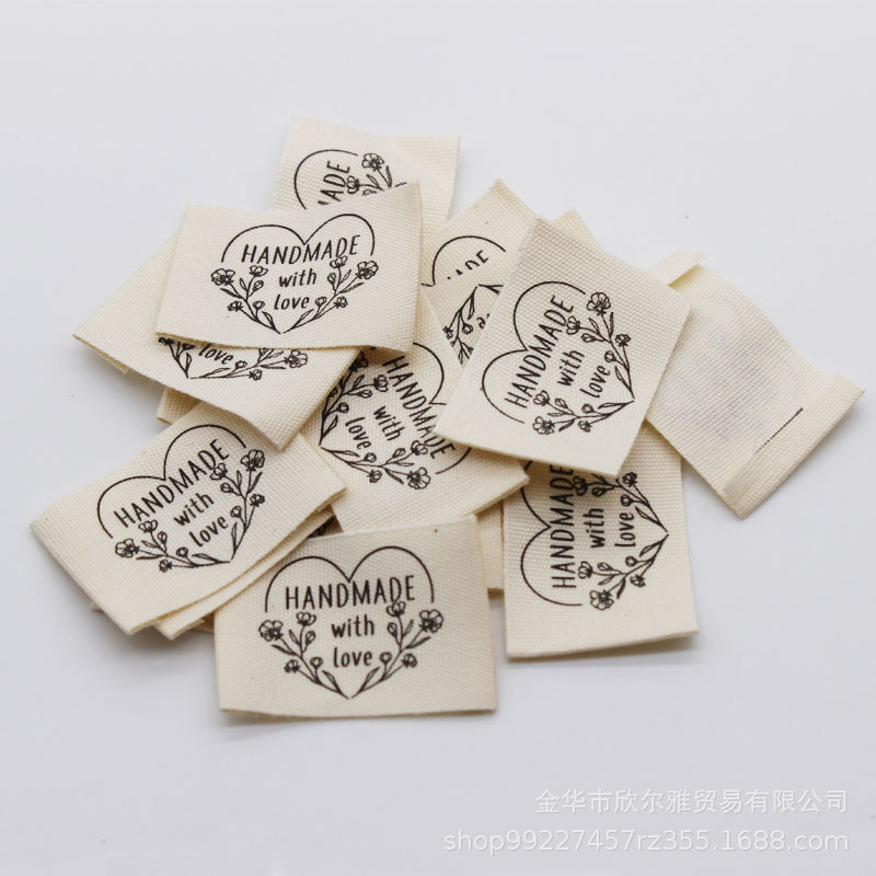 DIY 수제 천 라벨 의류 칼라 라벨 상표로이 흰색면을 재고 수제 면직물 라벨 인쇄 레이블