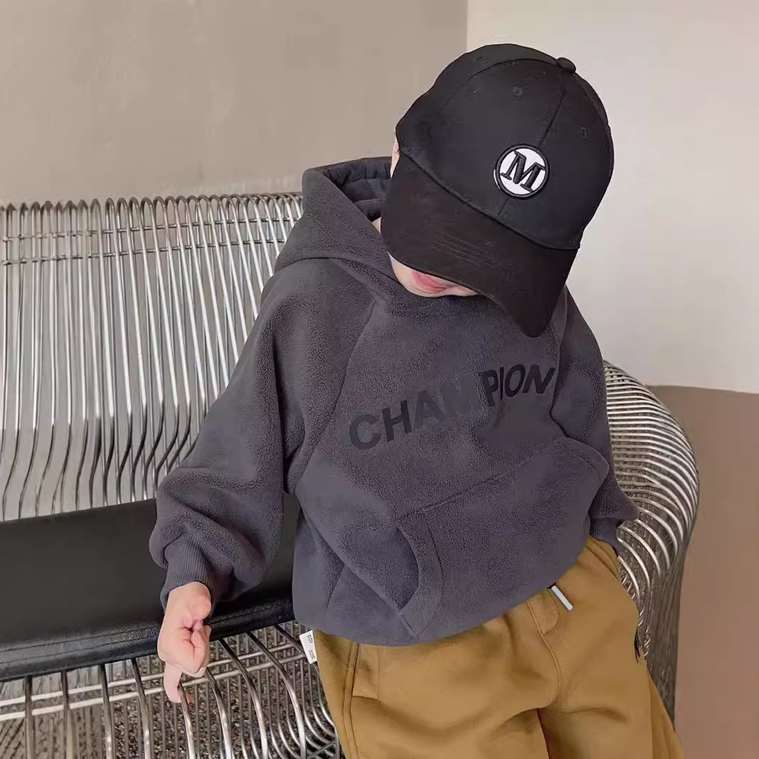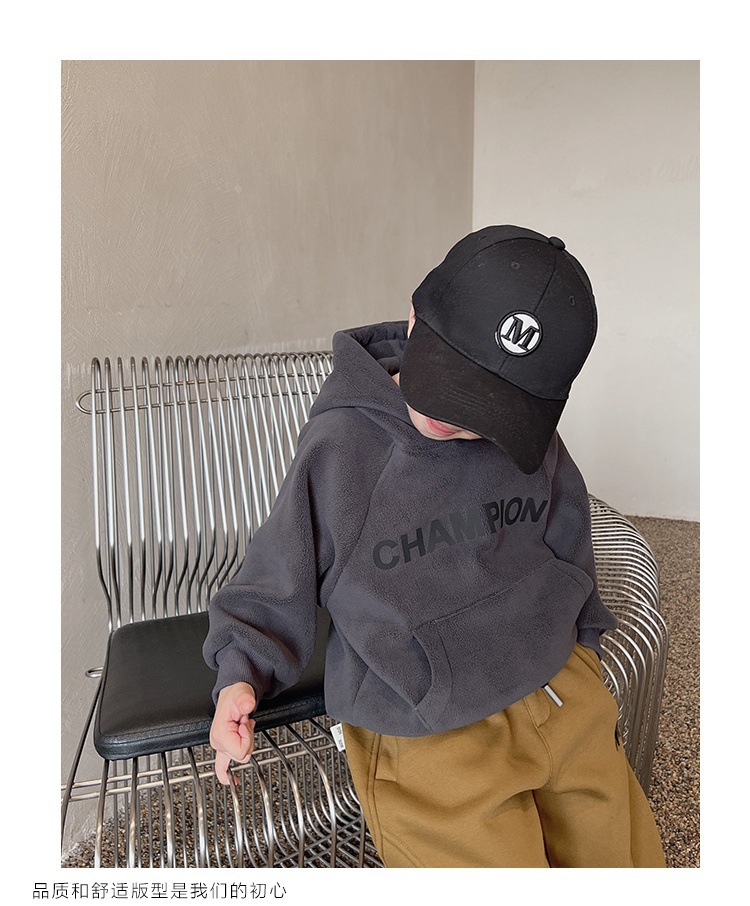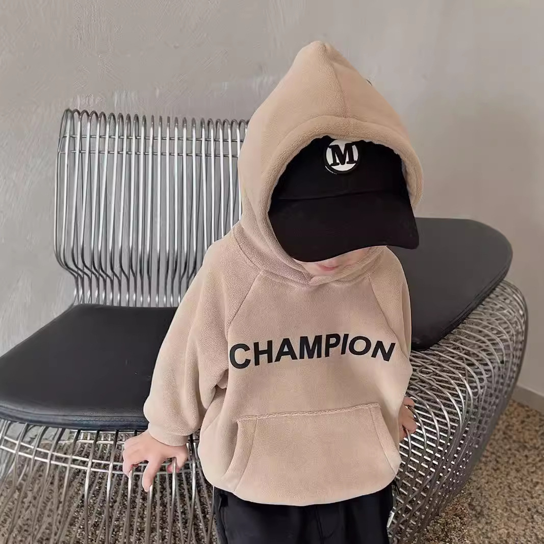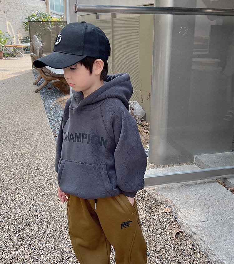 어린이 한국식 후드 오스트리아 그레인 벨벳 스웨트 셔츠 소년 가을과 겨울 기모 따뜻한 어린이 귀여운 서양식 후드