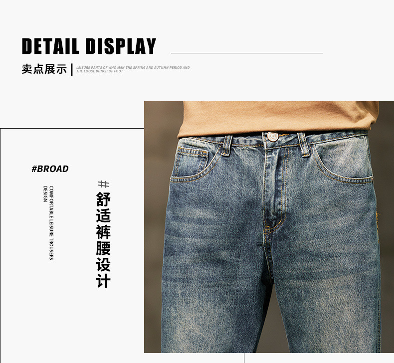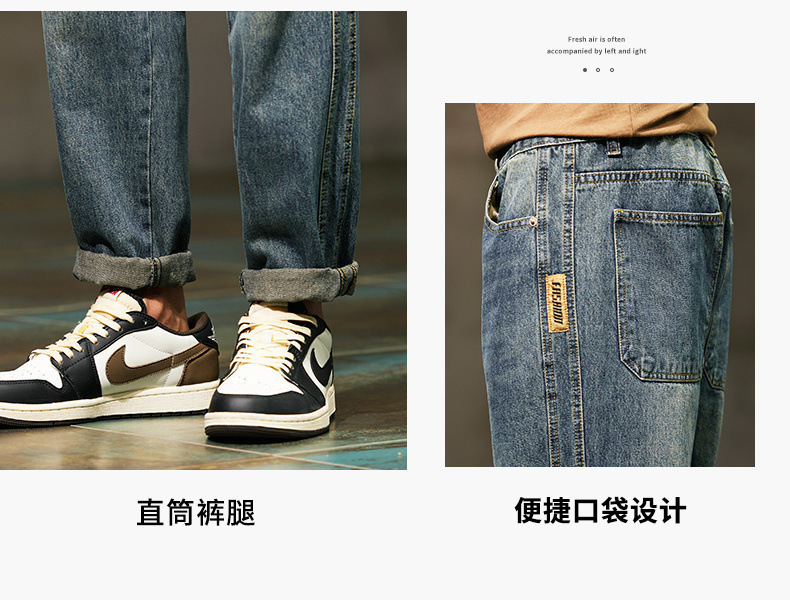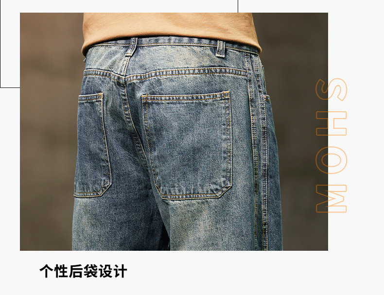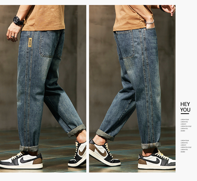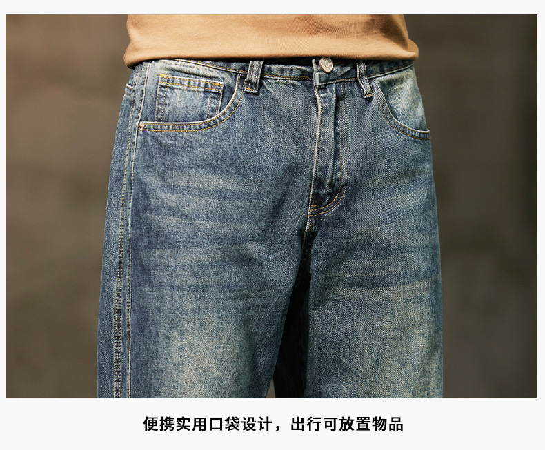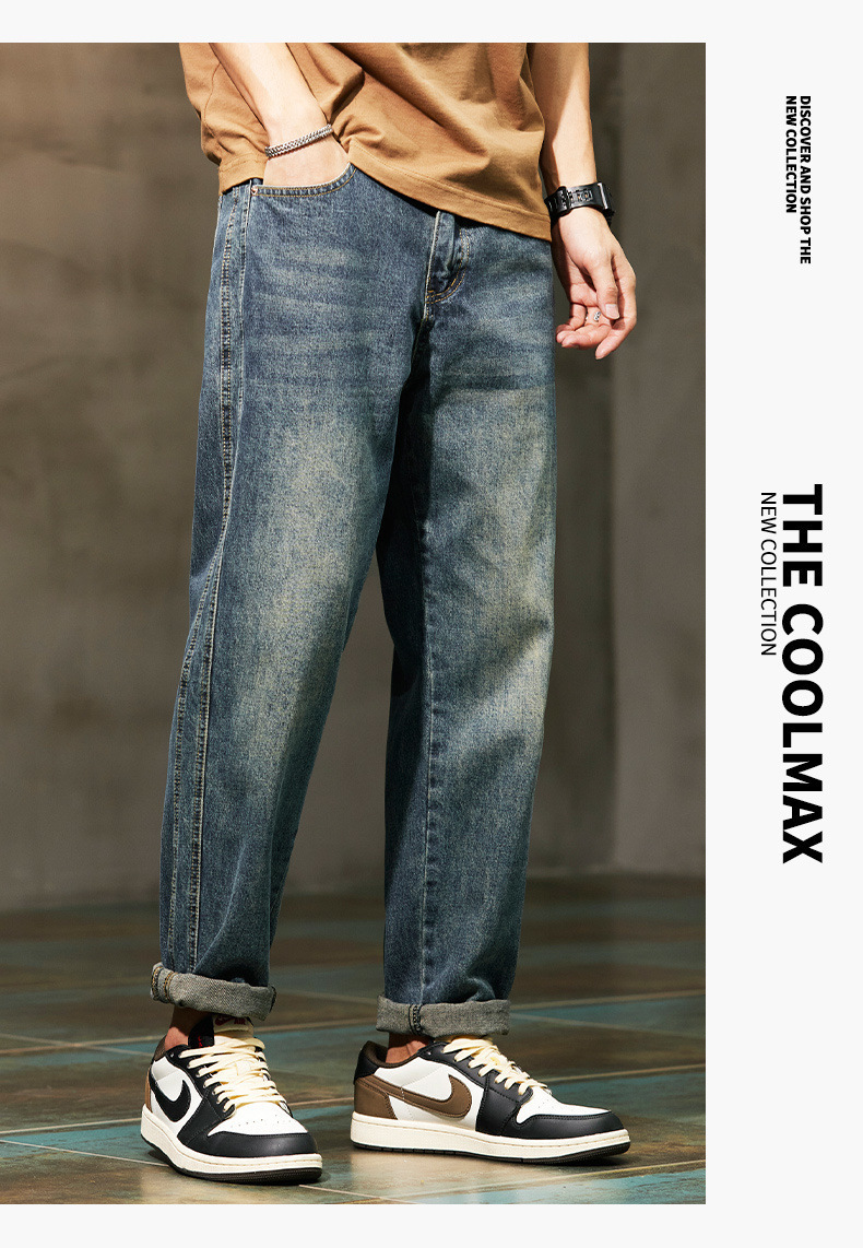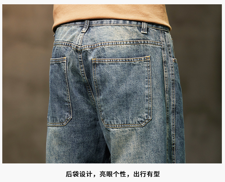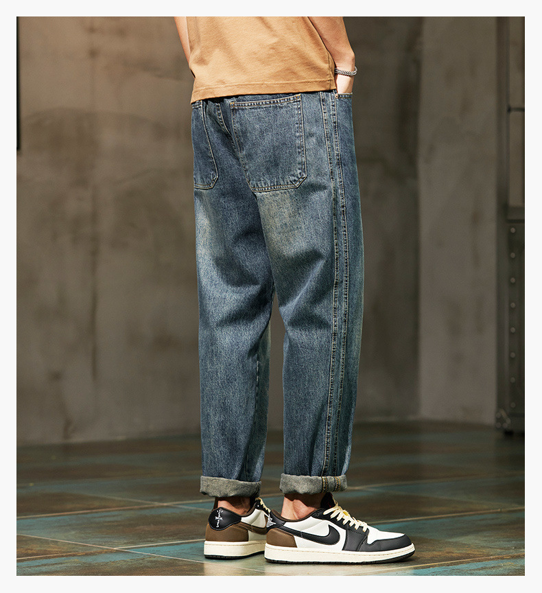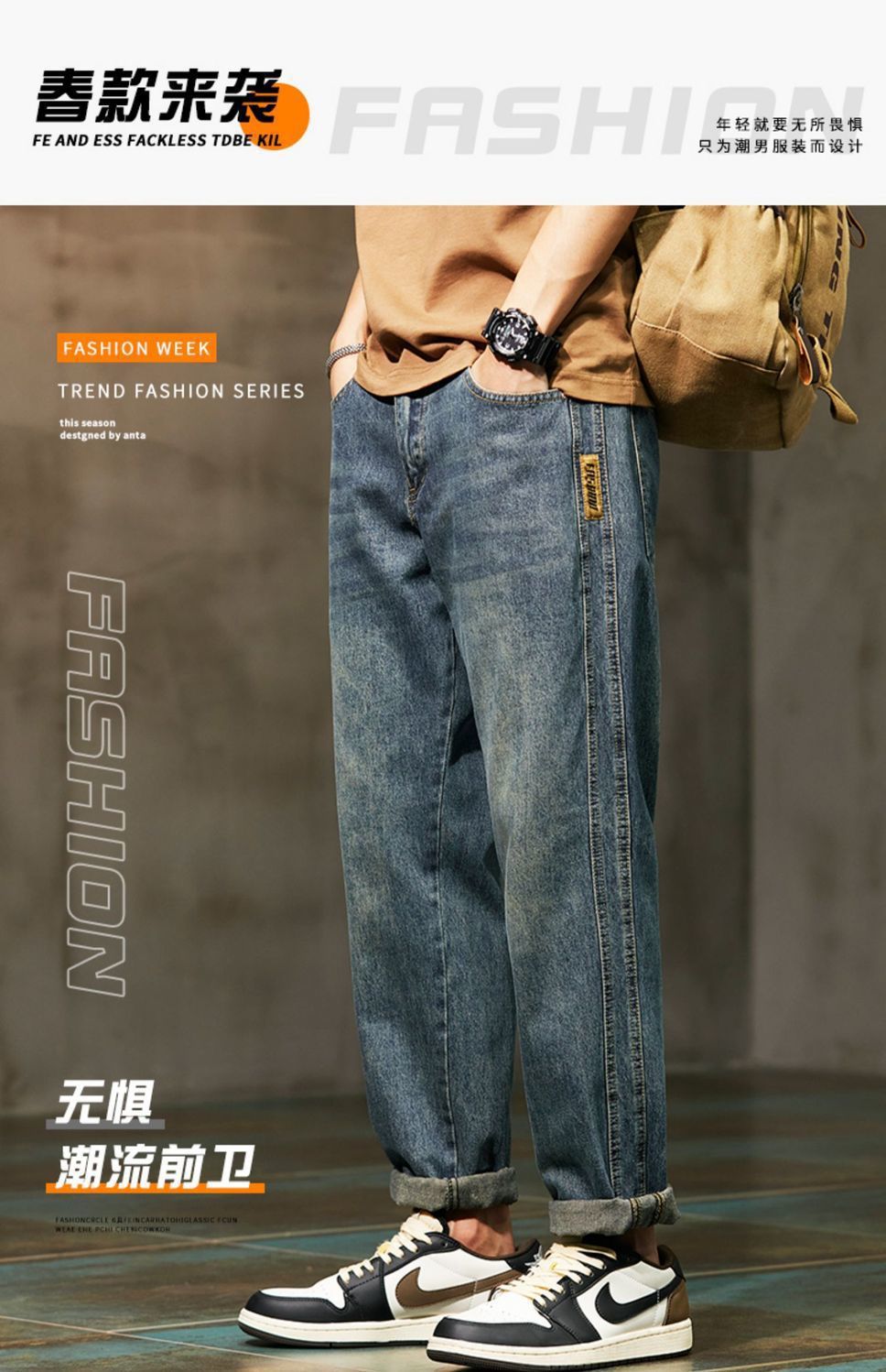 아메리칸 스타일 레트로 테이퍼 진 청바지 남성 봄과 가을 트렌디 브랜드 루즈 스트레이트 바지 봄 새로운 캐주얼 바지스토어 가기