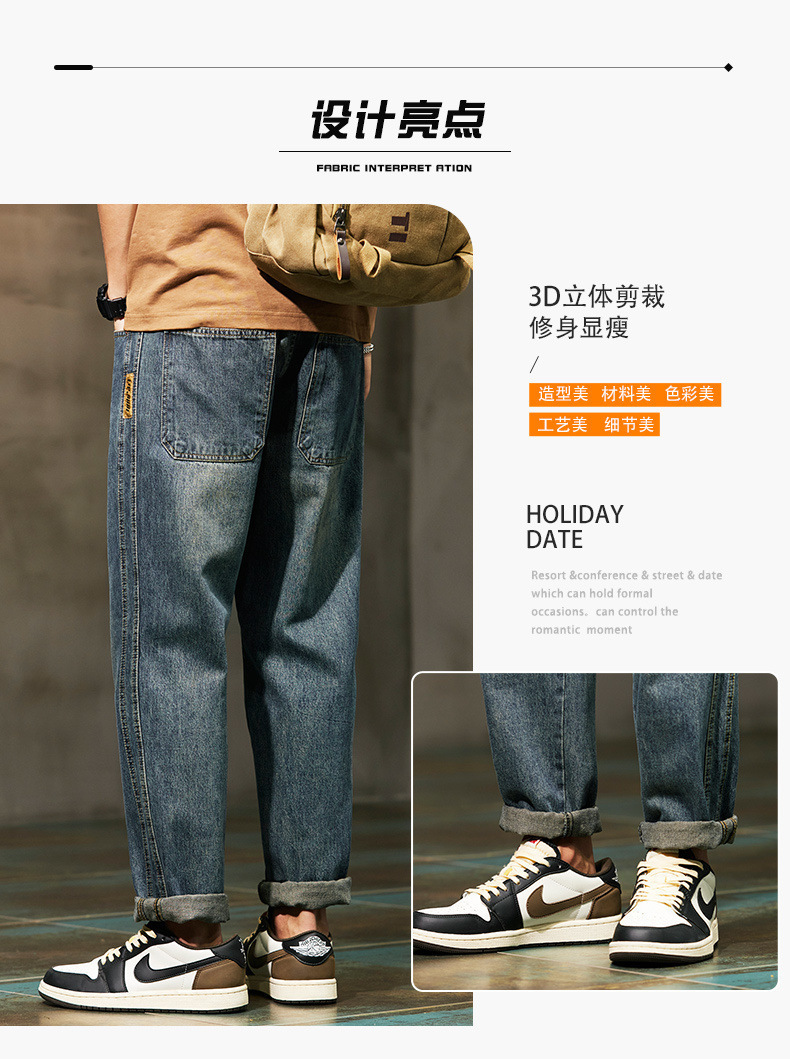 아메리칸 스타일 레트로 테이퍼 진 청바지 남성 봄과 가을 트렌디 브랜드 루즈 스트레이트 바지 봄 새로운 캐주얼 바지