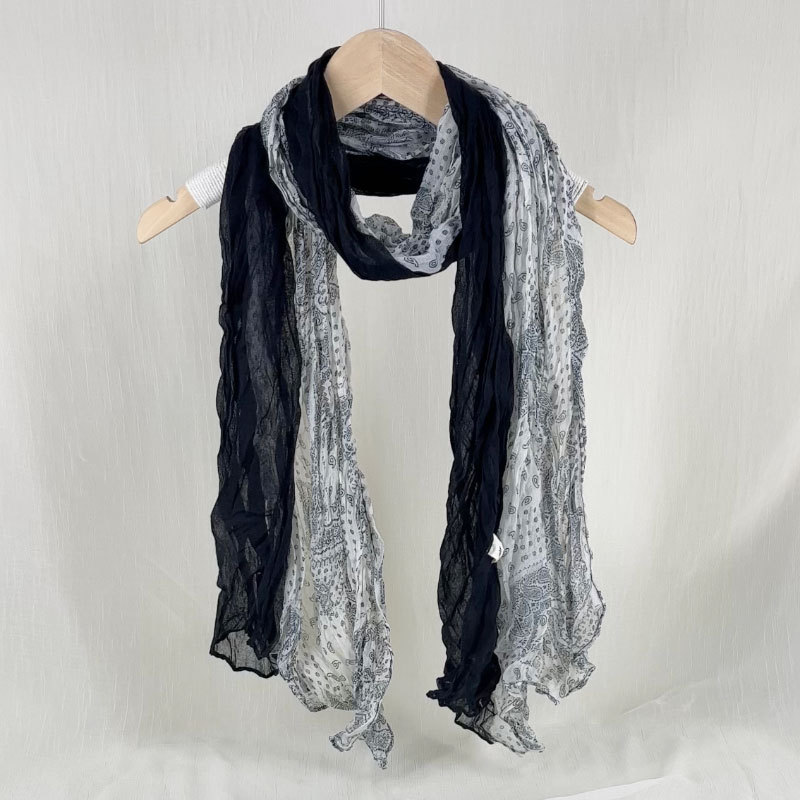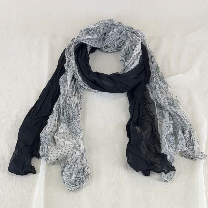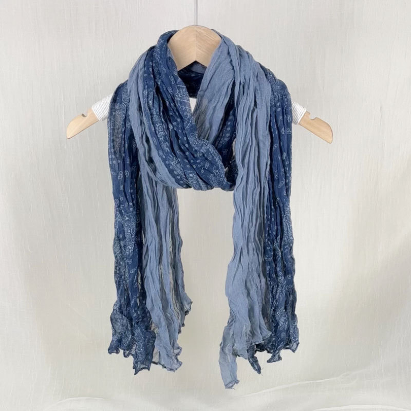 대외 무역 봄과 가을 모리 예술적 스카프 여자 올매치 주름 단색 캐슈 꽃 바느질 얇은 구겨진 면화와 리넨 스카프